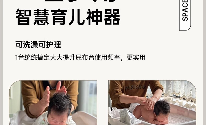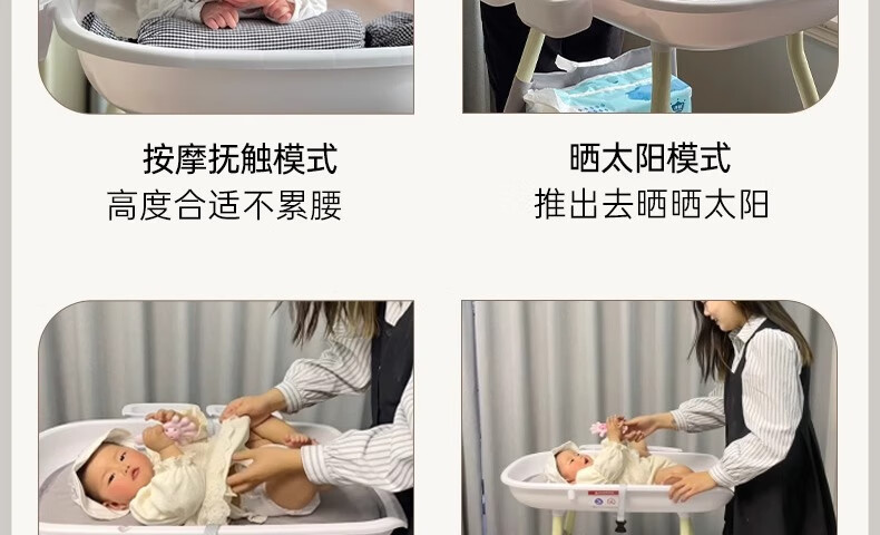 DEARVADER Diaper Table Baby Care Table Newborn Diaper Changing Massage Touching Table Bath Multifunctional Removable Morandi White Basic Model