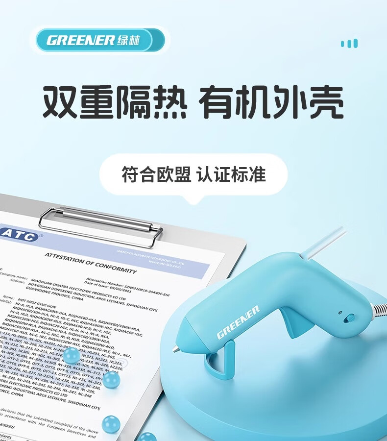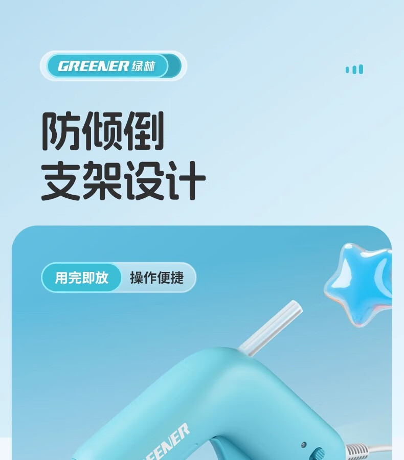 GREENER Children's DIY Hot Melt Glue Gun Kindergarten Special Household Small Hot Glue Stick 7mm Handmade 40W Lemon Pomelo Yellow Glue Gun + 20 Extended Glue Sticks