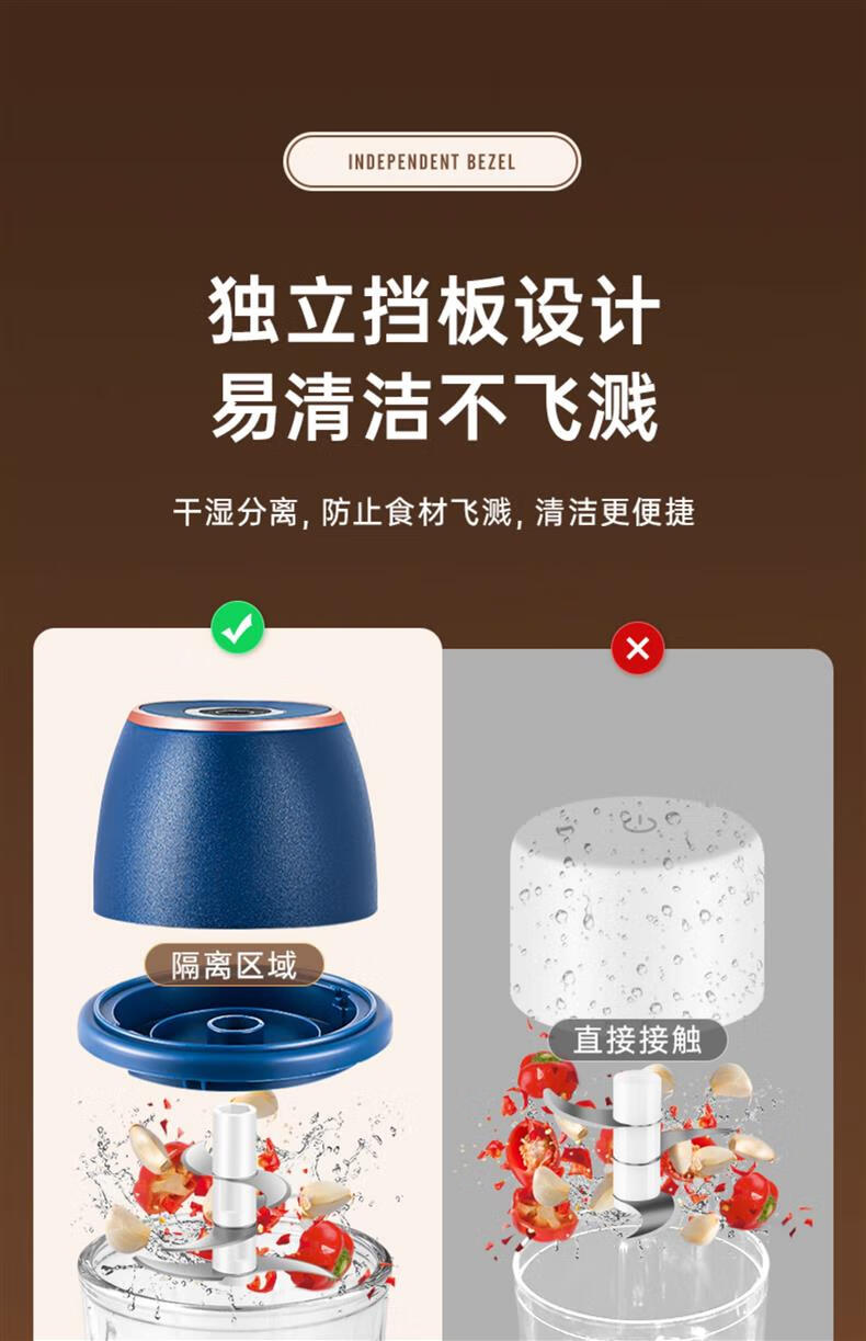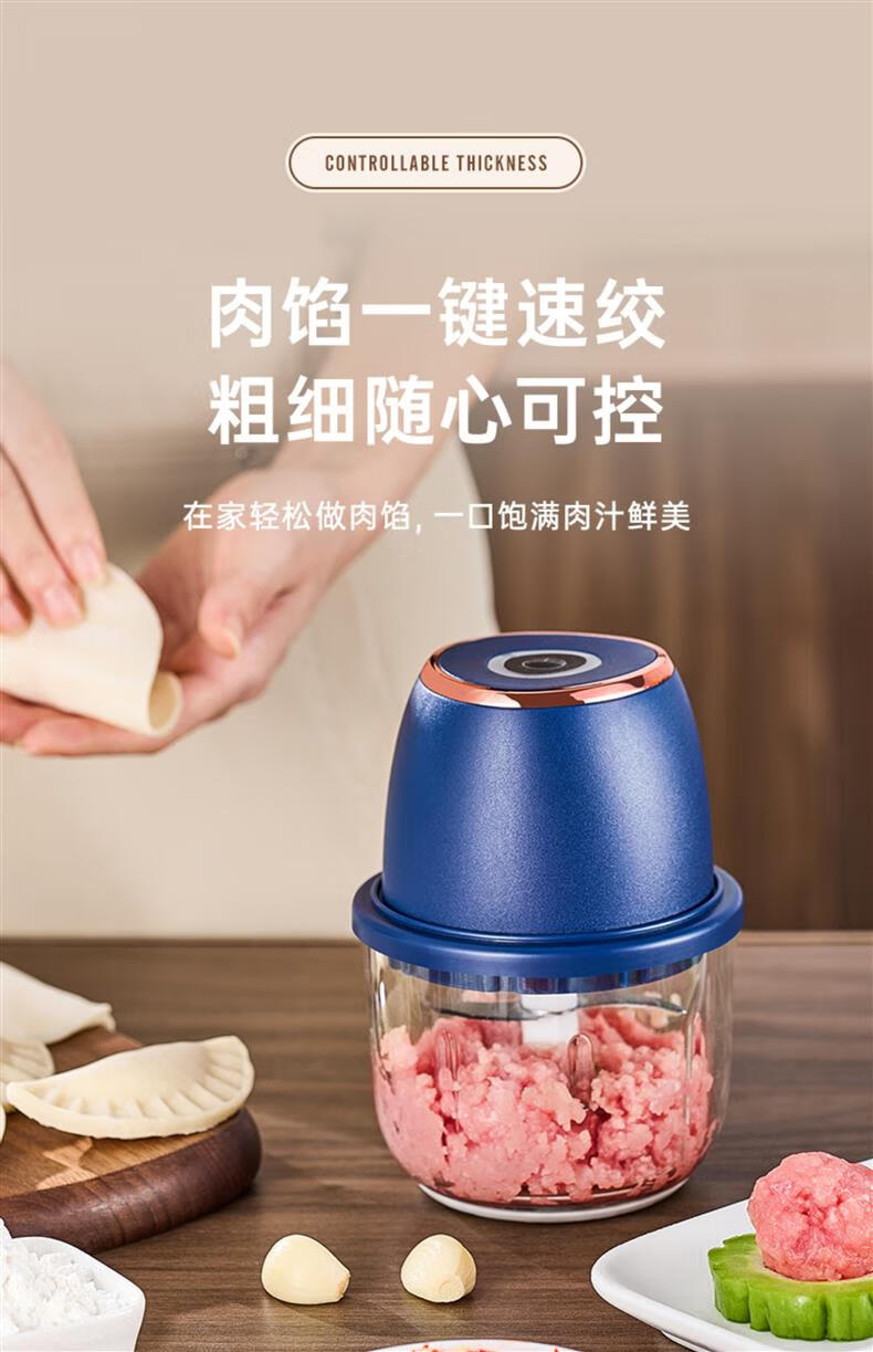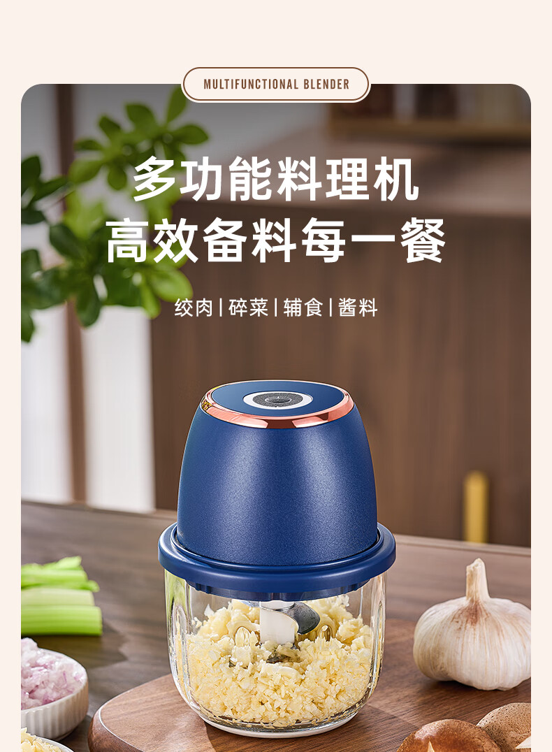 ZOZX German garlic artifact electric garlic masher garlic masher garlic masher multifunctional meat grinder small grinder 350ml dark blue with gold glass 6-leaf knife