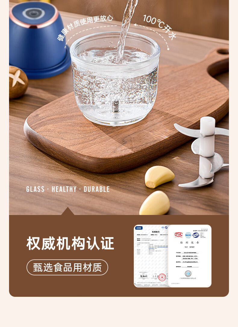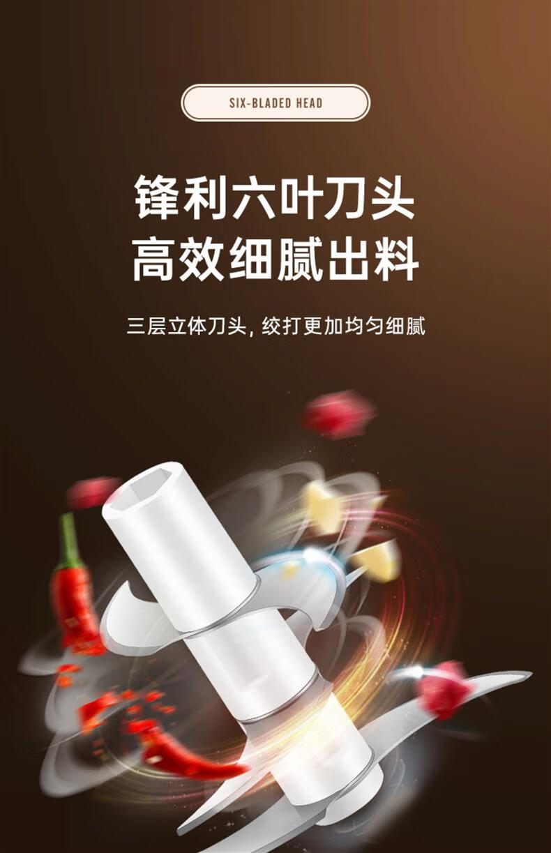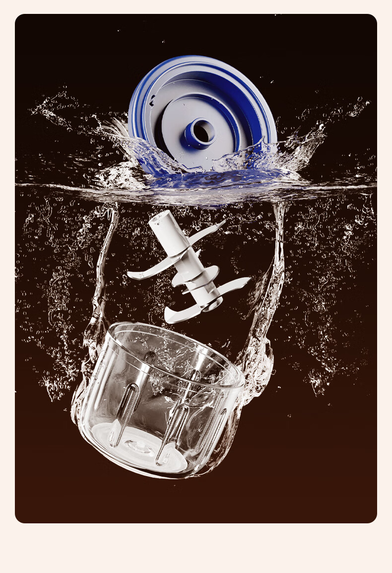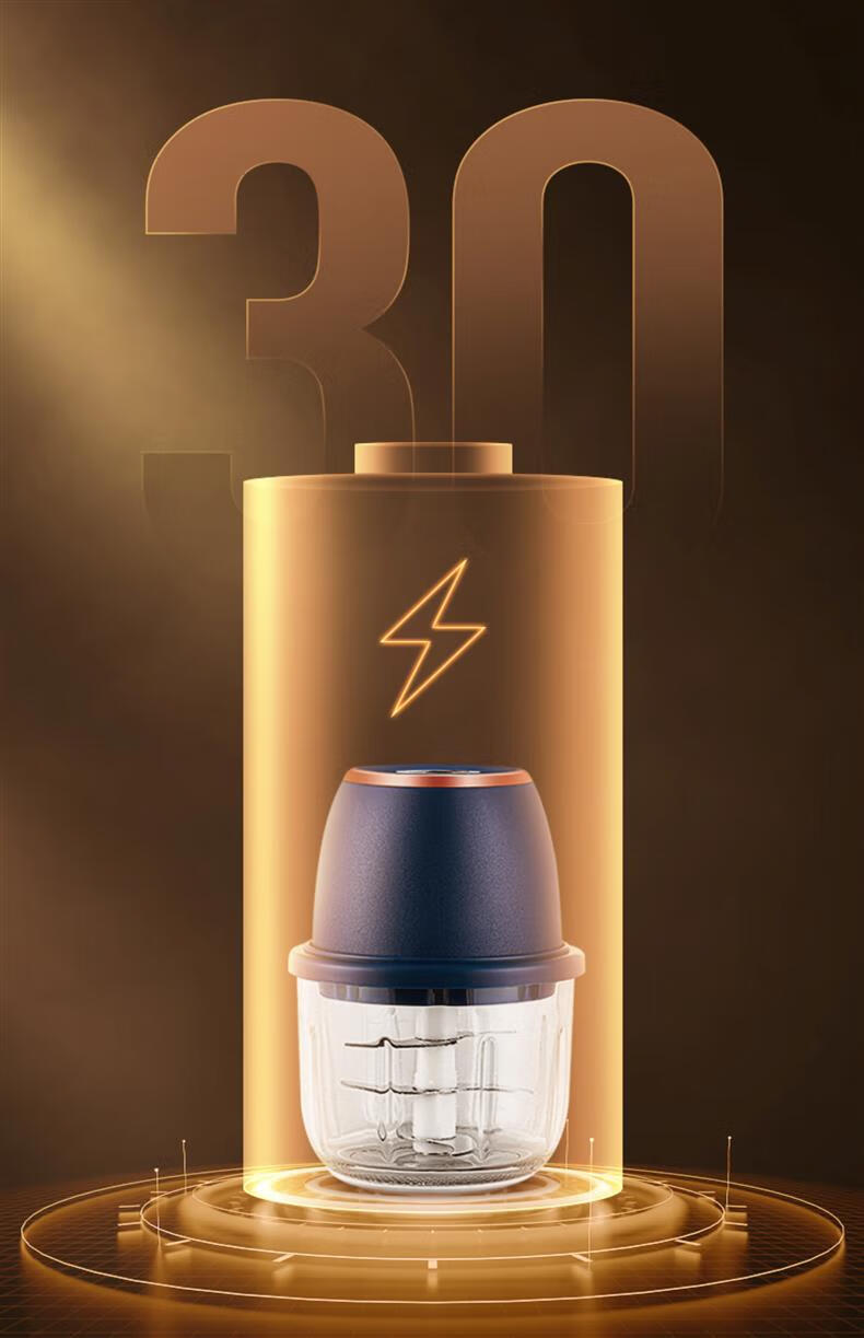 ZOZX German garlic artifact electric garlic masher garlic masher garlic masher multifunctional meat grinder small grinder 350ml dark blue with gold glass 6-leaf knife