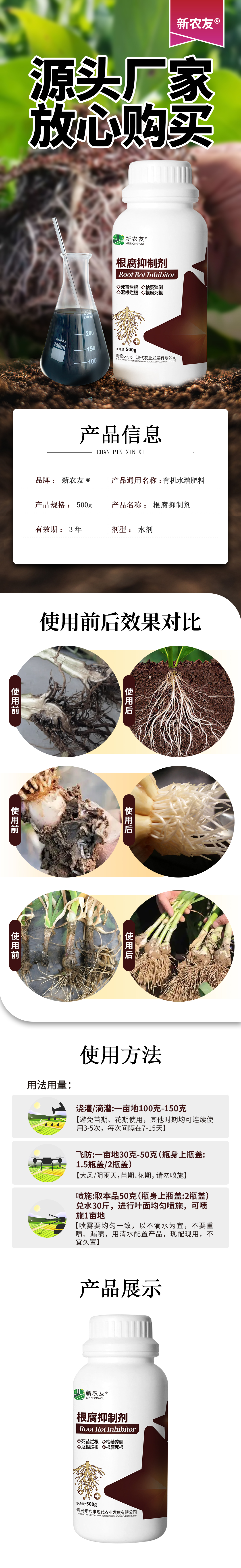 Root rot inhibitor nemesis crack root rot leaf purification soil sterilization root rot rapid root strengthening fertilizer 500g 2 bottles root rot inhibitor