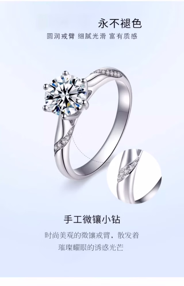 I Do platinum PT950 diamond ring 1 carat psychic six-claw cultivated diamond ring for proposal, engagement, wedding, gift for girlfriend, psychic six-claw 1 carat diamond size 15