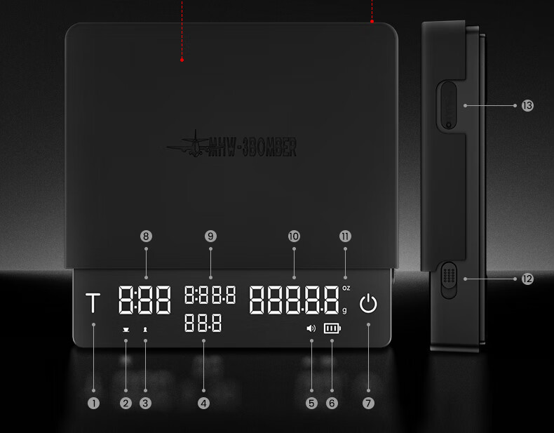 MHW-3BOMBER Bomber Little Rubik's Cube 30ProMax Coffee Electronic Scale Flow Rate Monitoring Weighing Timer Little Rubik's Cube 3.0 Set A-Black