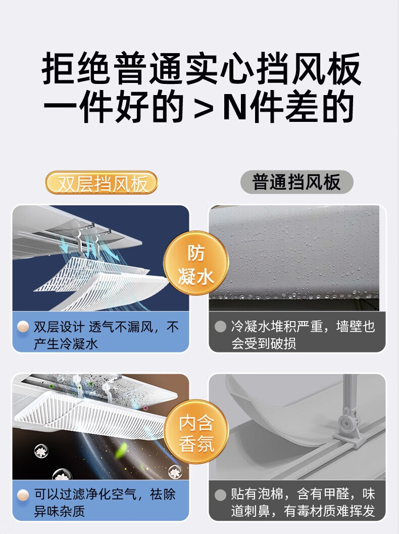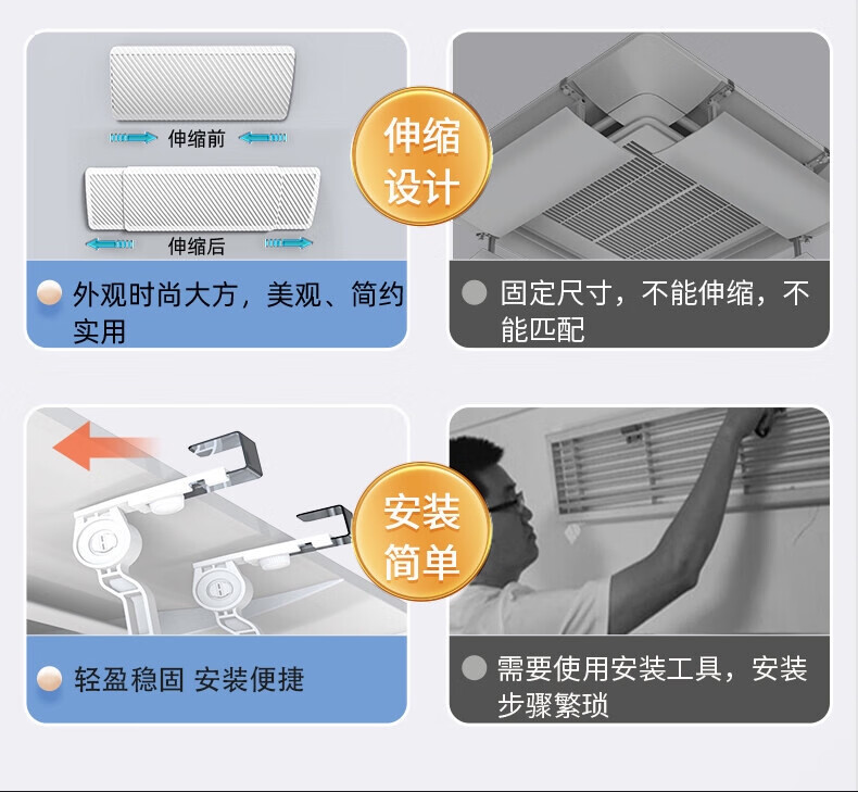 Pupan central air conditioning outlet windshield anti-direct blowing windshield guide air-conditioning office ceiling-mounted ceiling double-layer filter type-4 pieces 50-73 cm telescopic pick model condensation