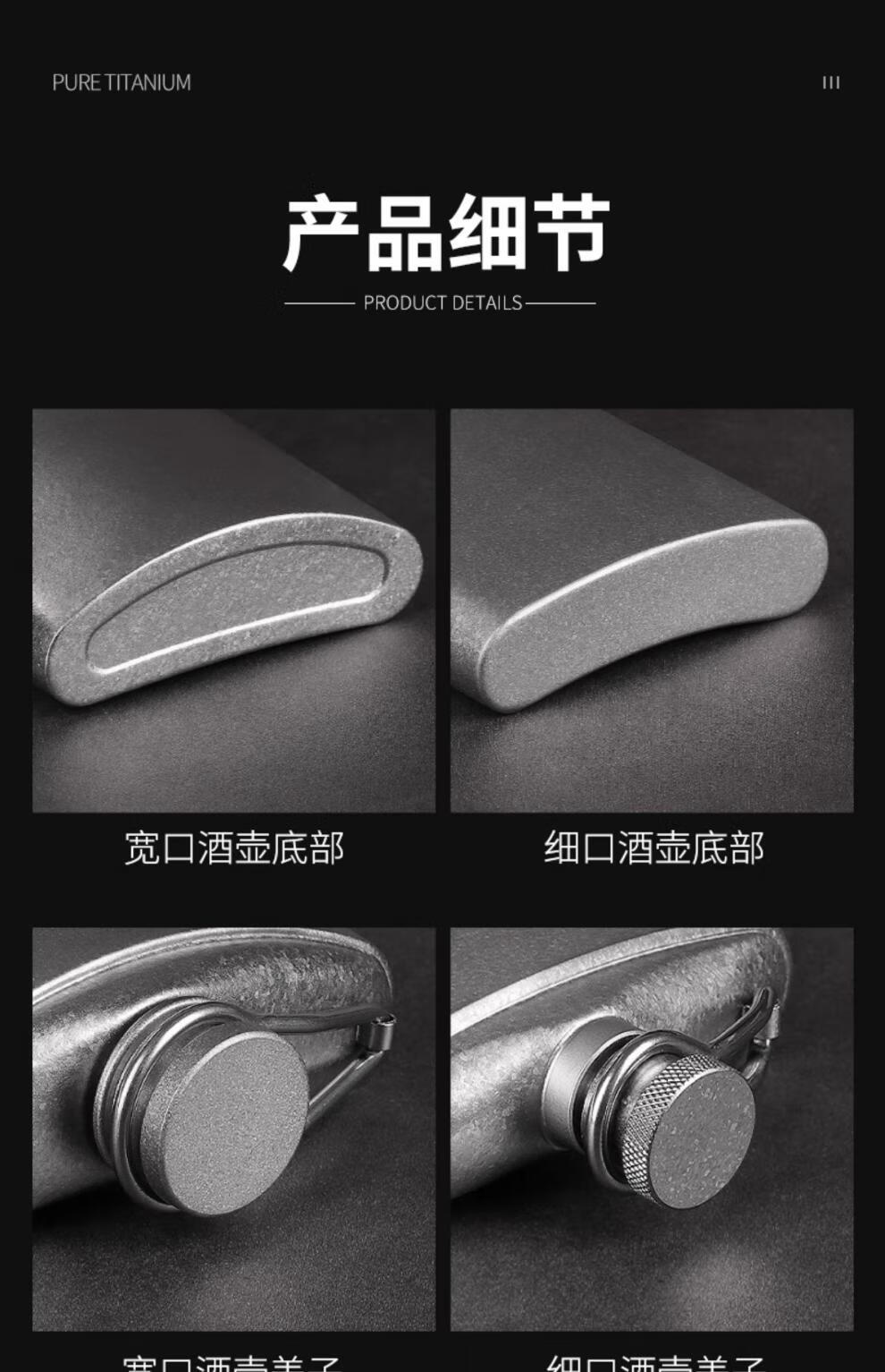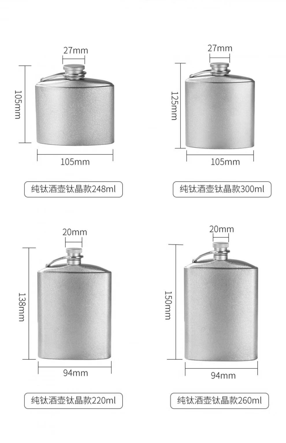 Lehongjun Japan imported pure titanium hip flask ultra-light portable outdoor travel camping high-end retro spirits liquor bottle pure titanium handle hip flask 2500ml