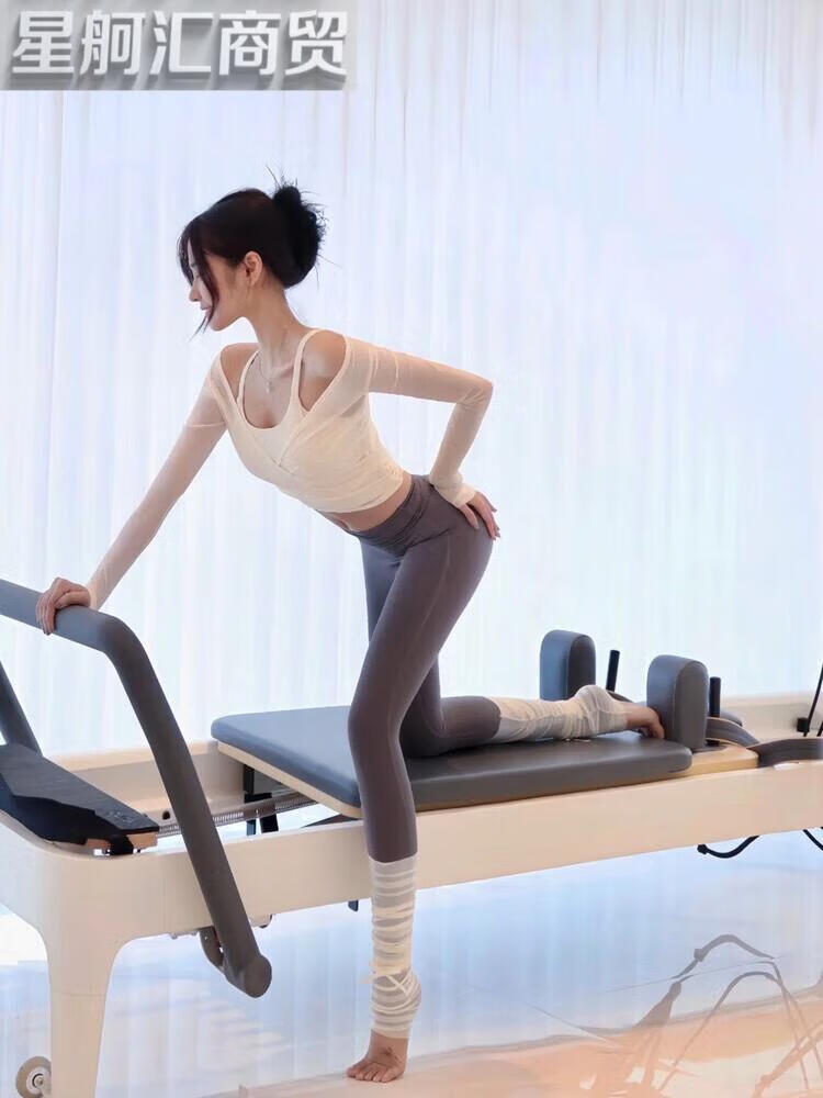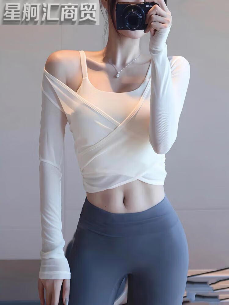 He Jiangong Yoga Suit Pilates Suit Three-piece Yoga Suit Internet celebrity sweet fitness three-piece mesh outer wear high milk white (bra) + milk white (long sleeves) + gray (pants) S (98Jin Jin is equal to less than 0.5 kg)