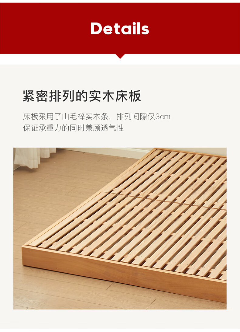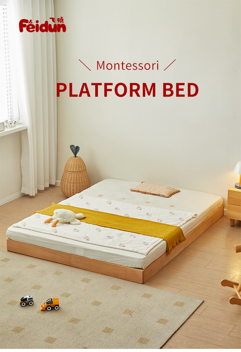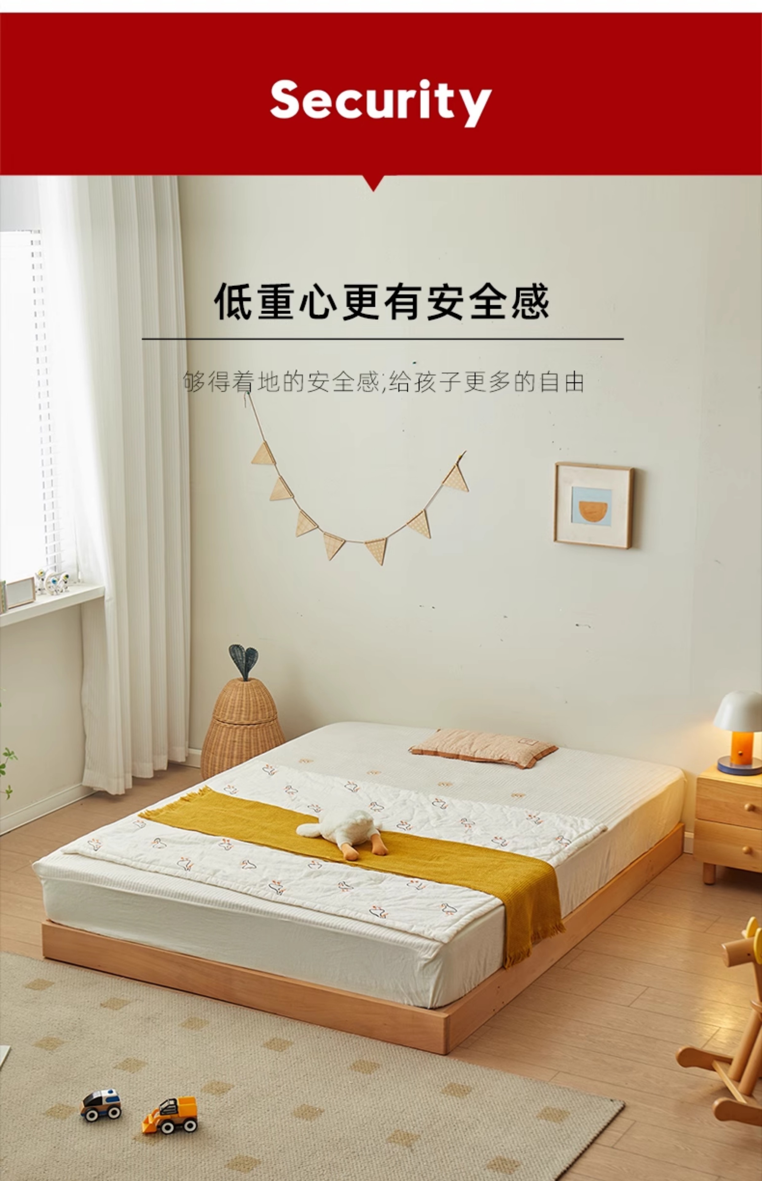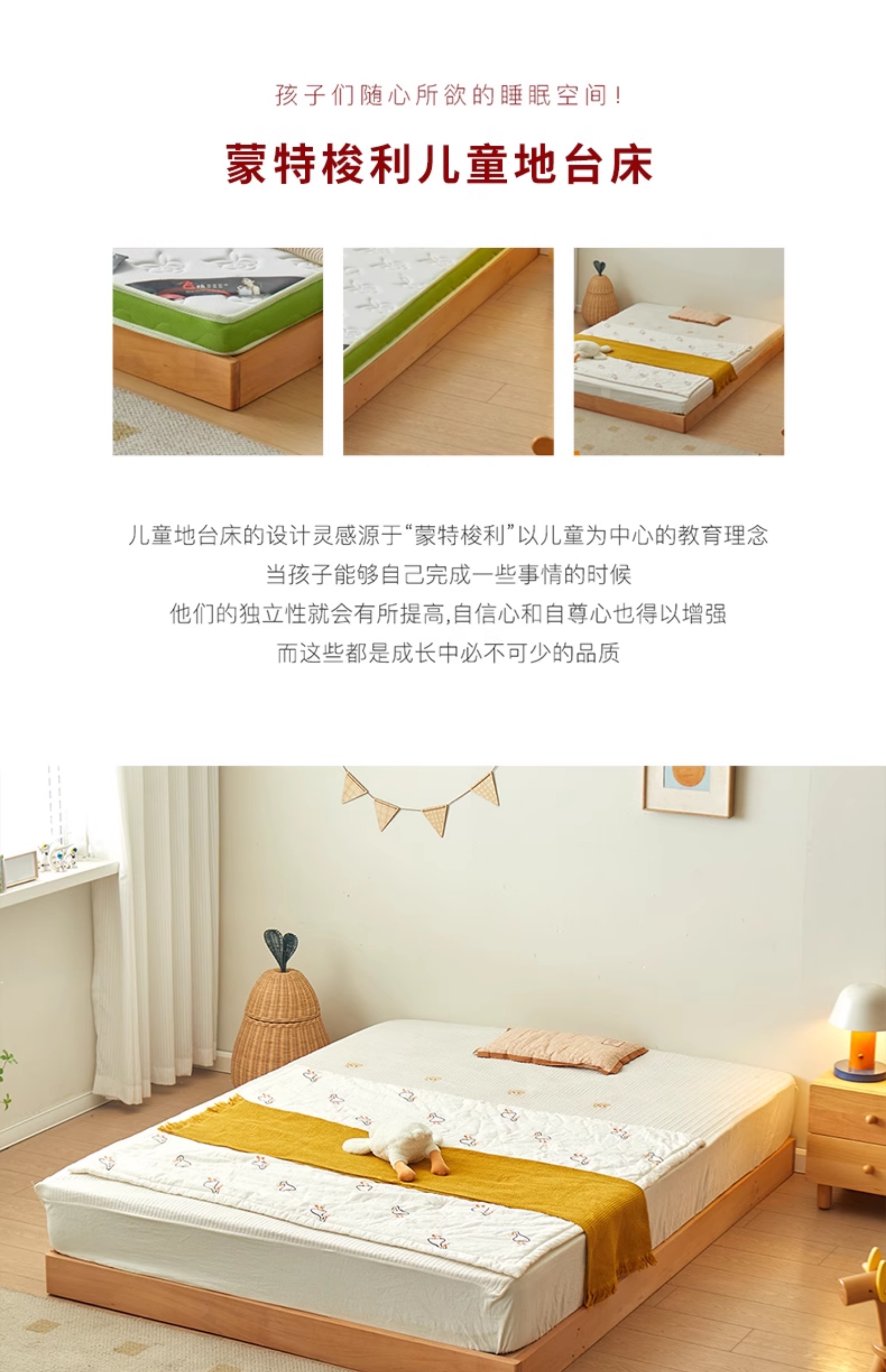 Montessori platform bed beech floor bed 1.2 solid wood without bedside tatami 1.5 single crib children's bed 100*200*25 free bed legs (self-assembled)