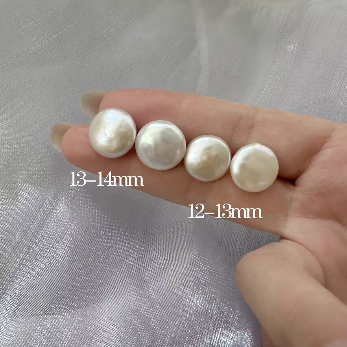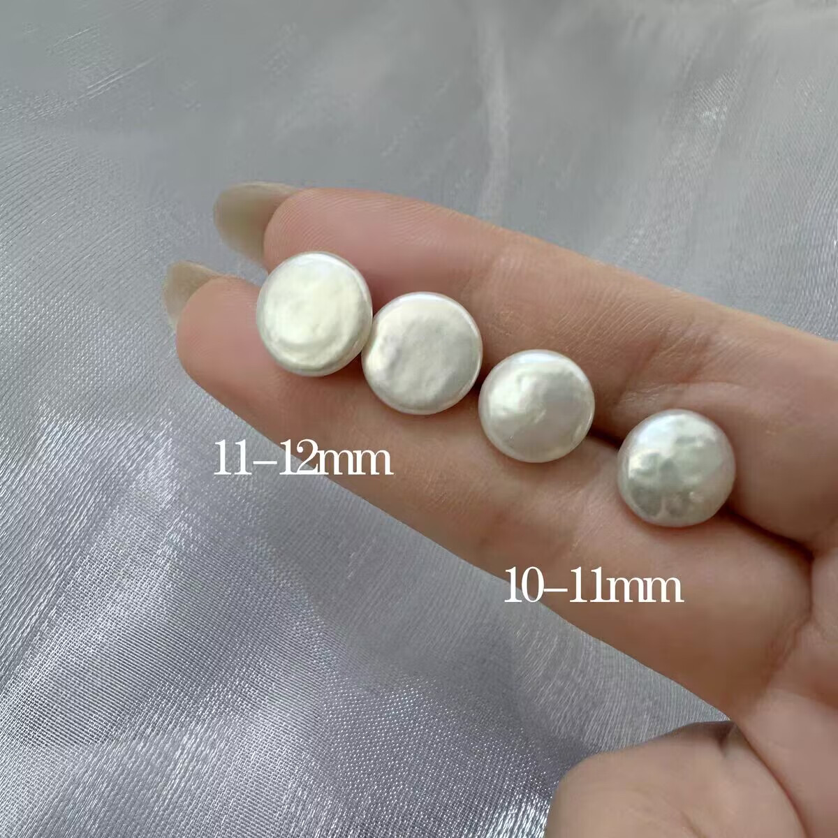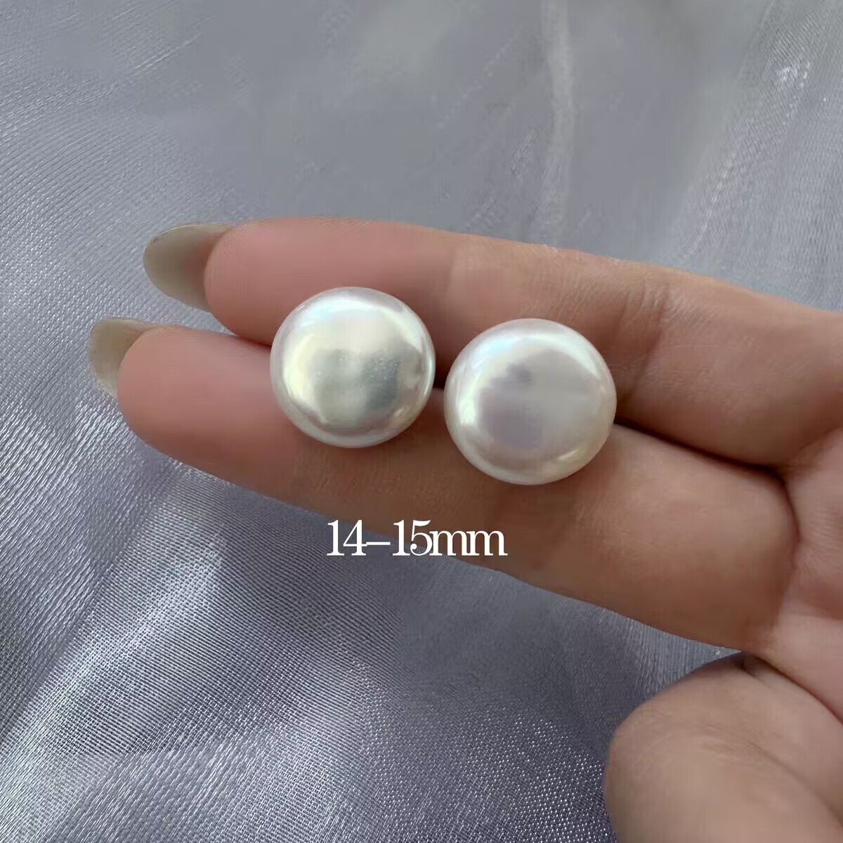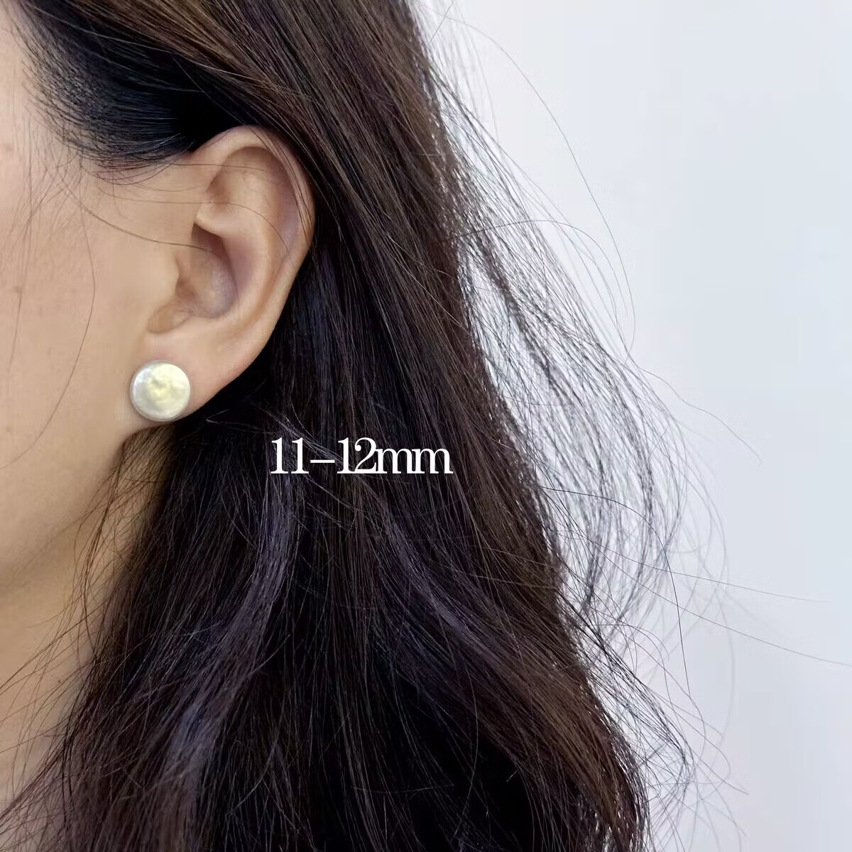 Baroque natural freshwater pearl button earrings for women S925 sterling silver silver needle 12-13mm spring and summer shaped earrings Freshwater button pearl earrings 13-14mm S925 sterling silver