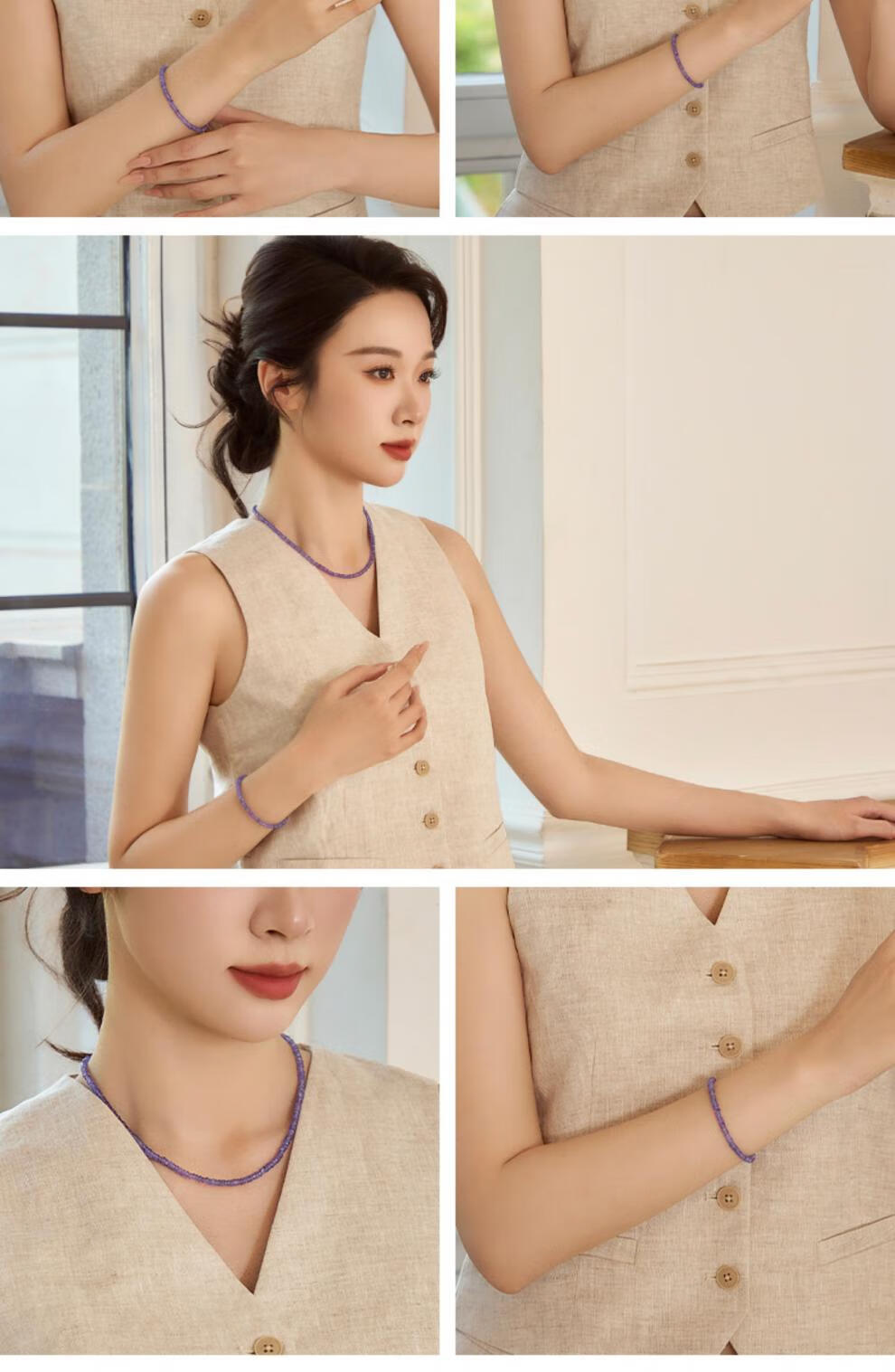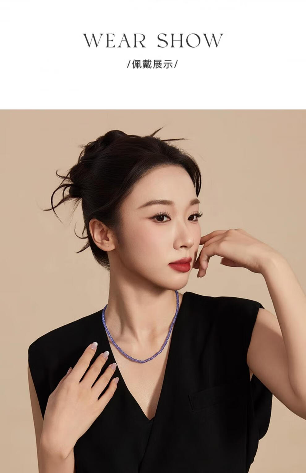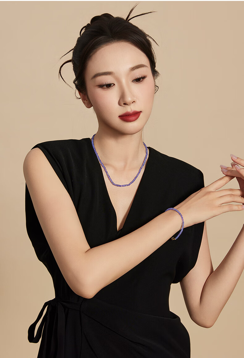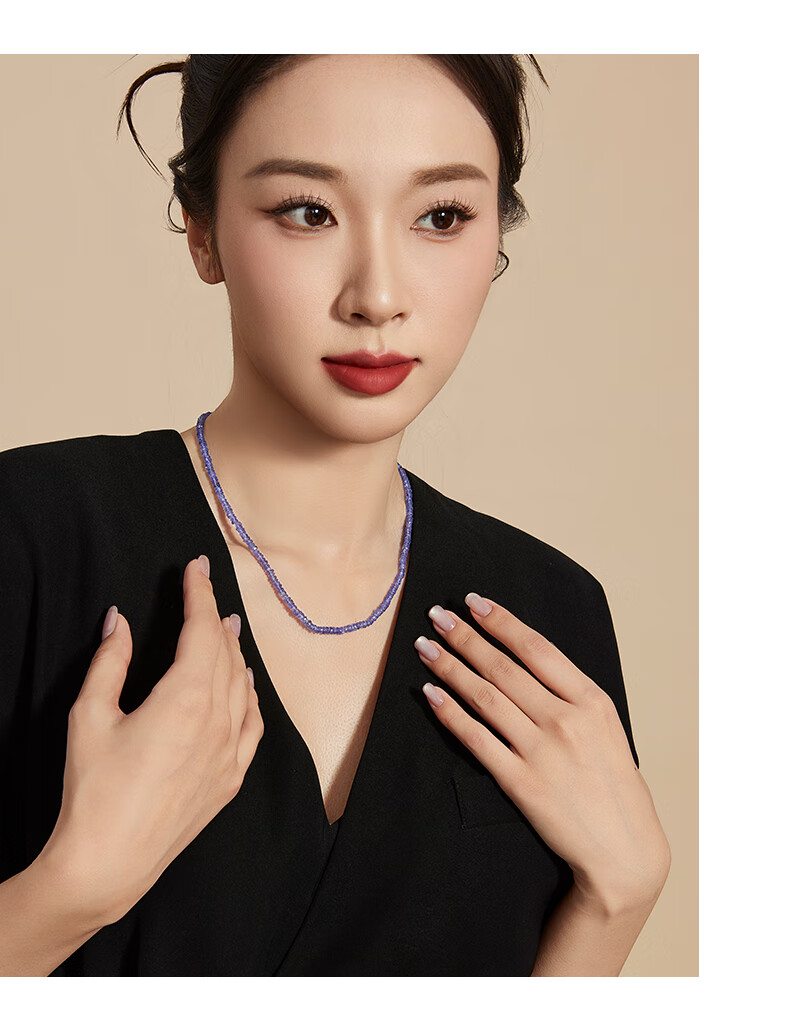 DL 1998 Fat Donglai same style tanzanite necklace jewelry Ziqi Donglai necklace 18K gold faceted clavicle necklace 3-4mm 42cm