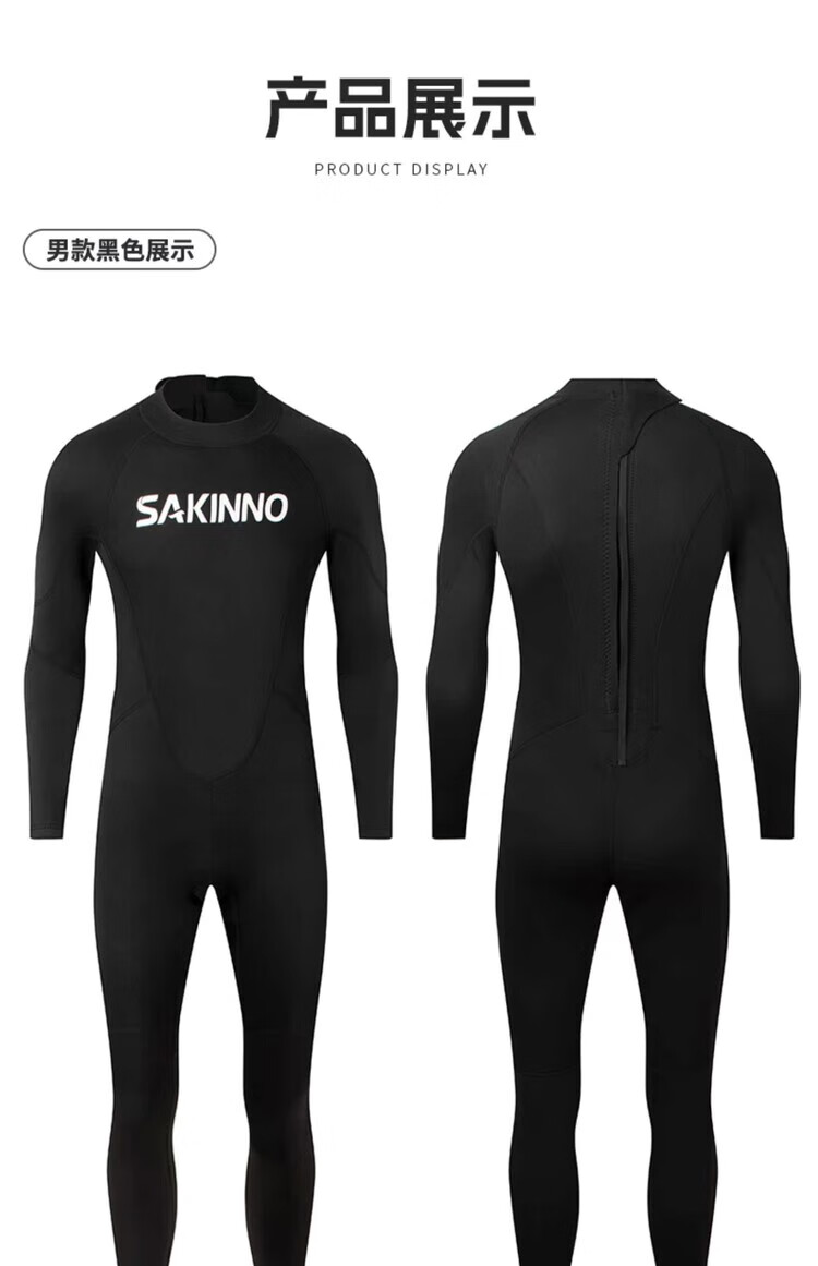 Snorkeling swimsuit sun protection quick-drying professional diving suit couple one-piece long-sleeved jellyfish suit men and women warm wet suit 2MM 2MM men's black one-piece M reference (58-66 kg)