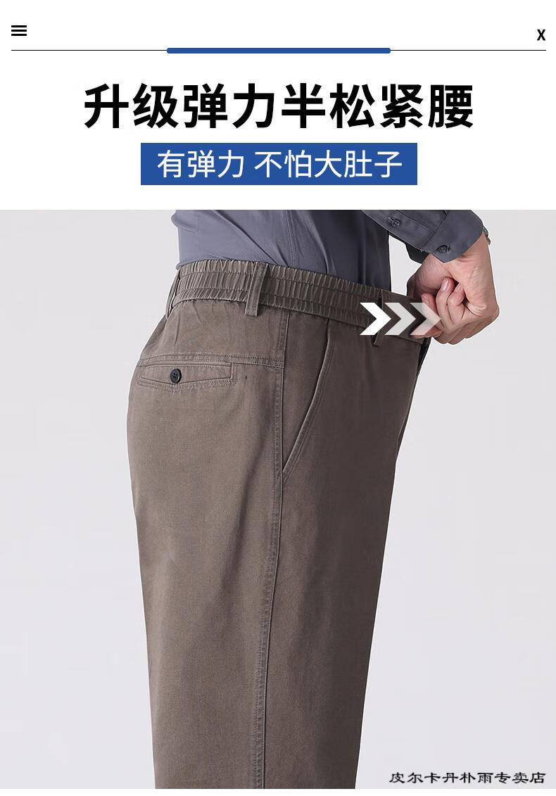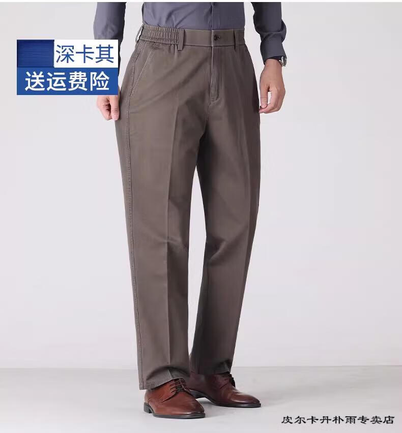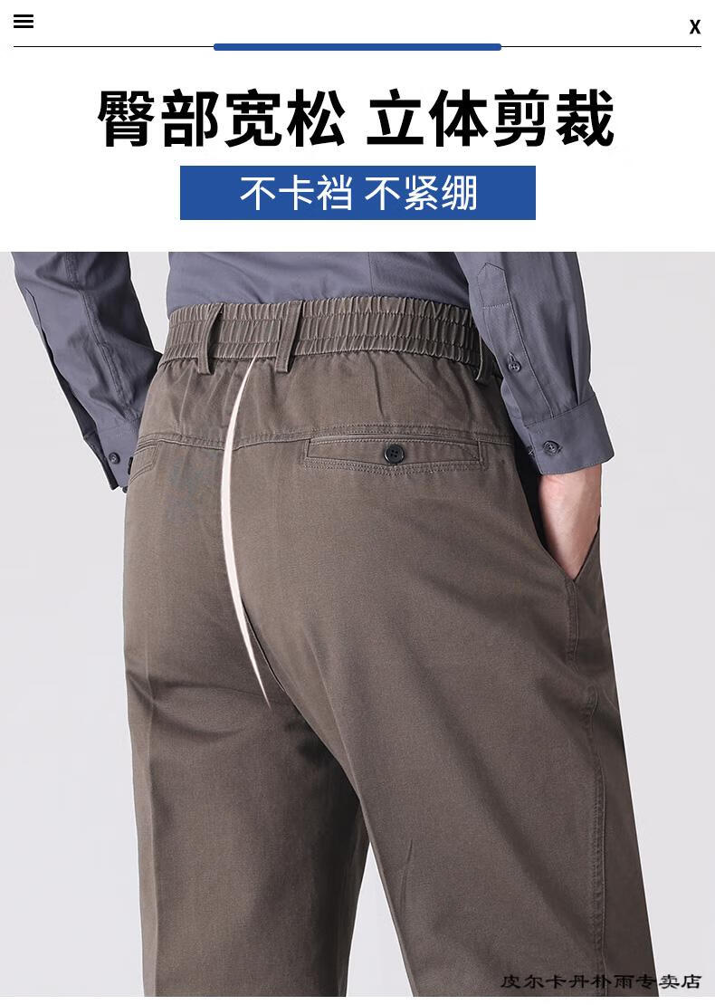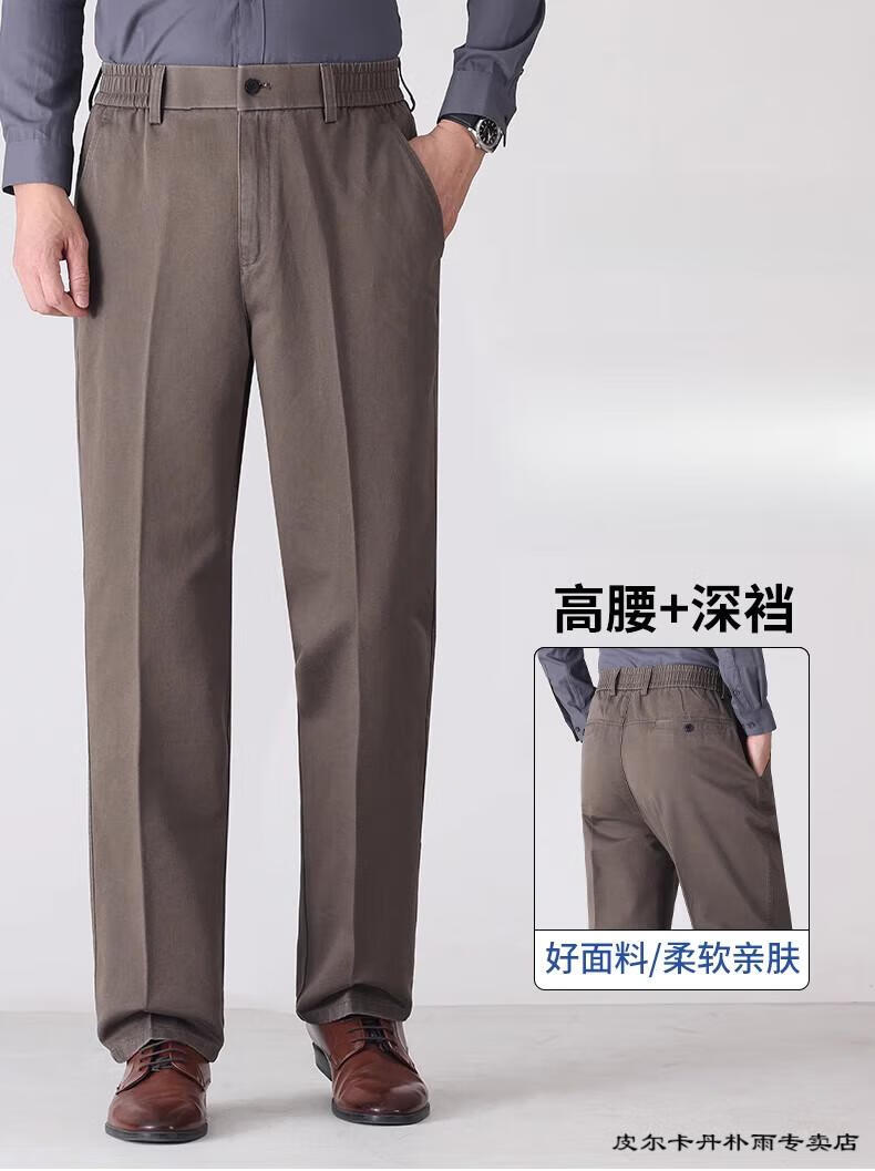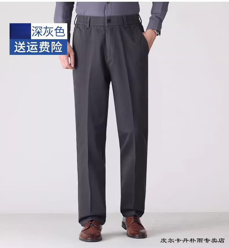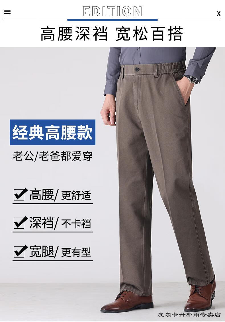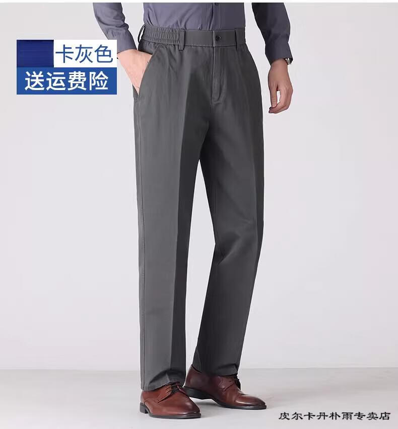 Pierre Cardin pure cotton casual pants men's spring and autumn business trousers high waist deep crotch middle-aged and elderly dad's loose solid color trousers card gray spring and autumn 4XL