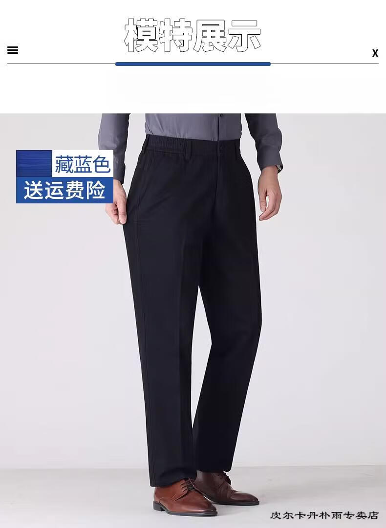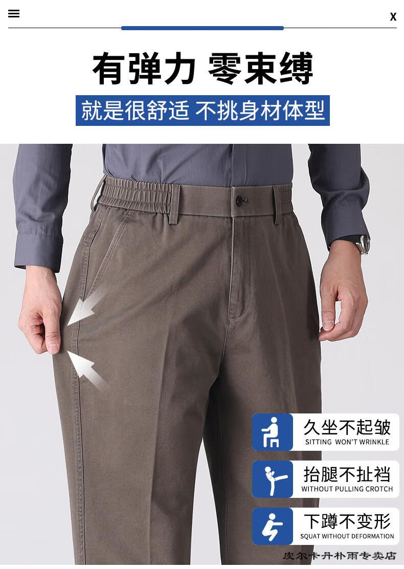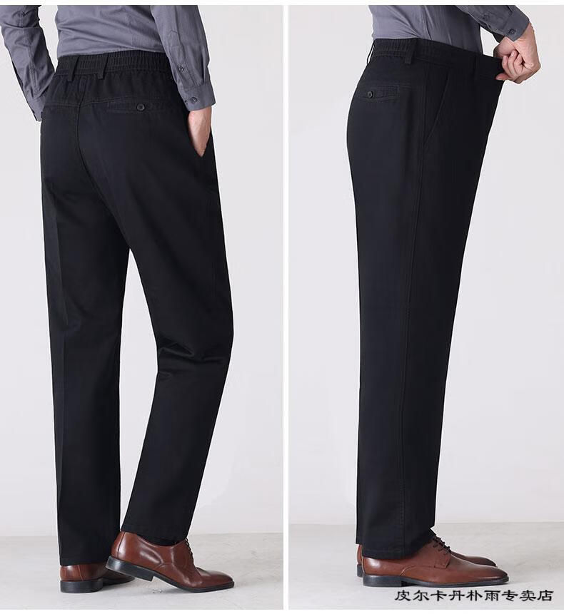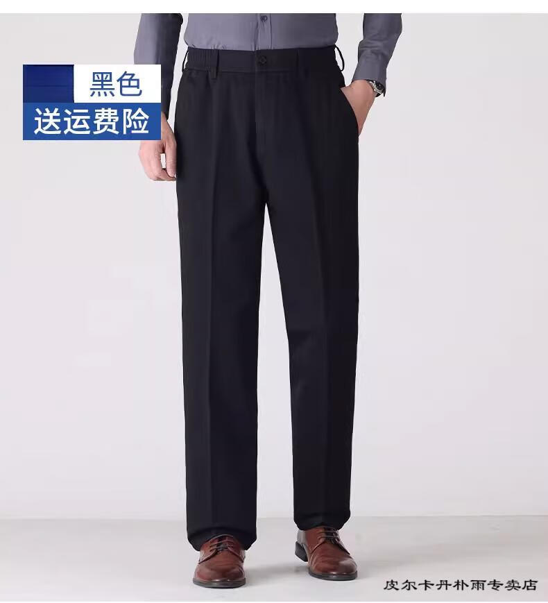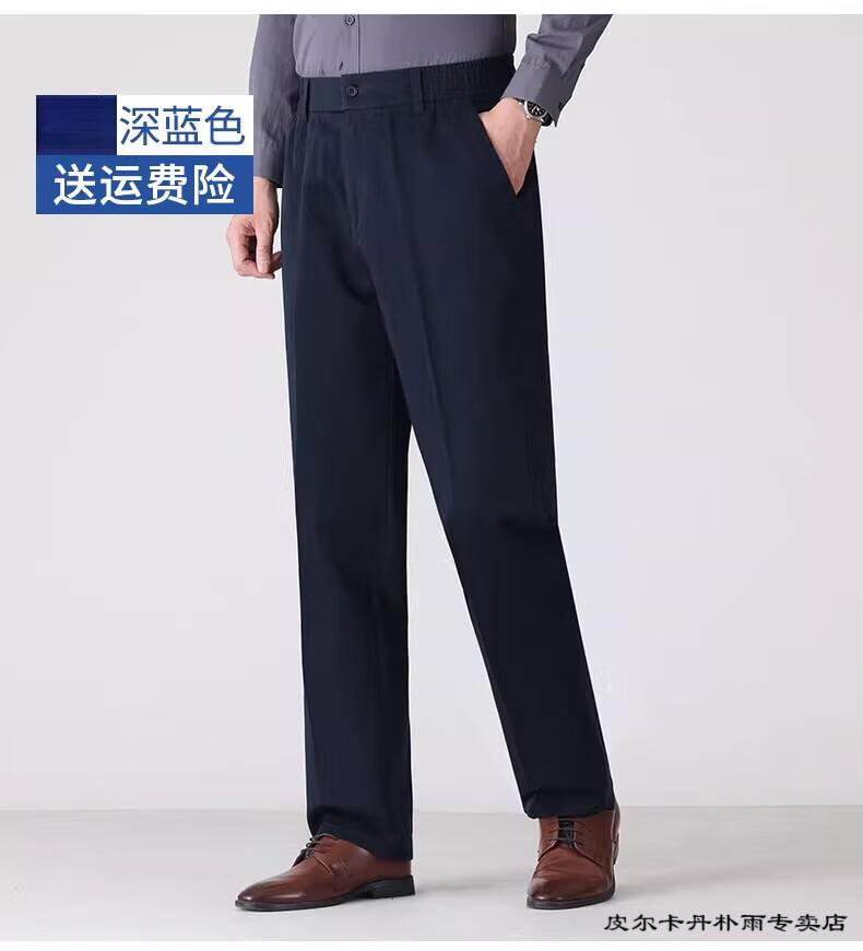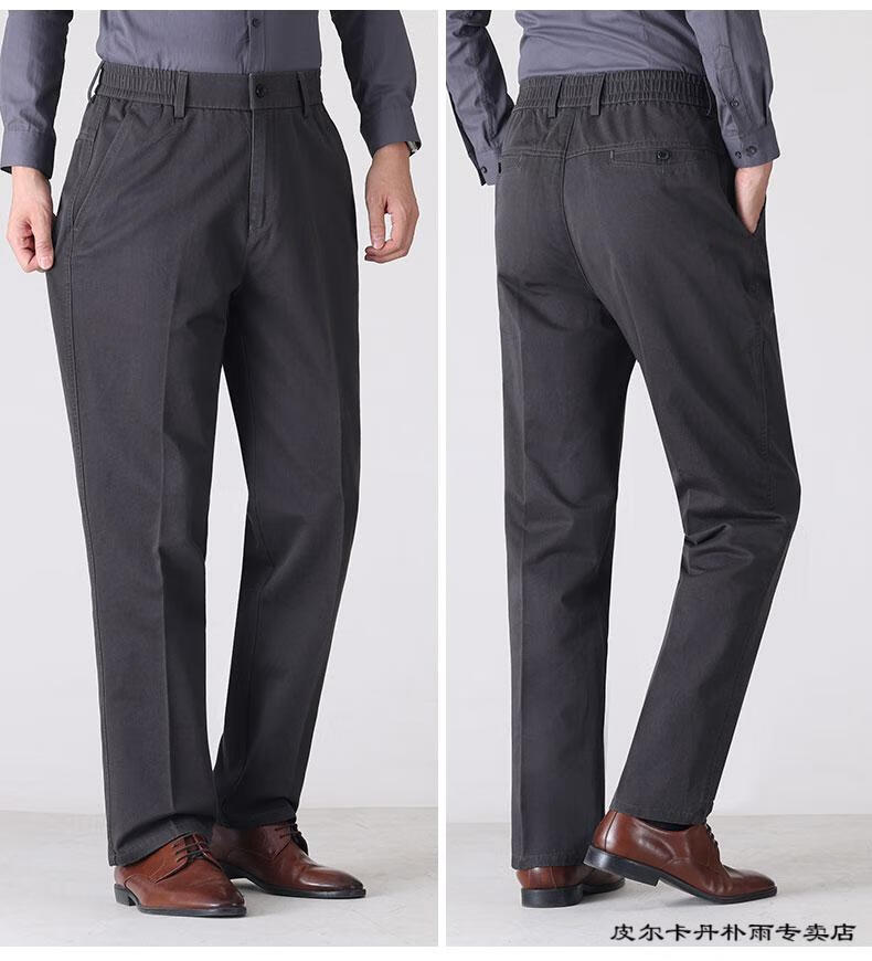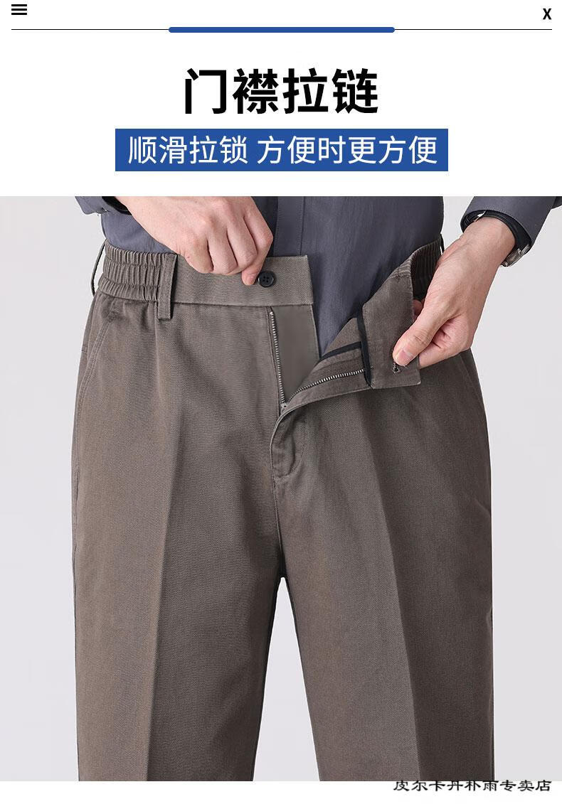 Pierre Cardin pure cotton casual pants men's spring and autumn business trousers high waist deep crotch middle-aged and elderly dad's loose solid color trousers card gray spring and autumn 4XL