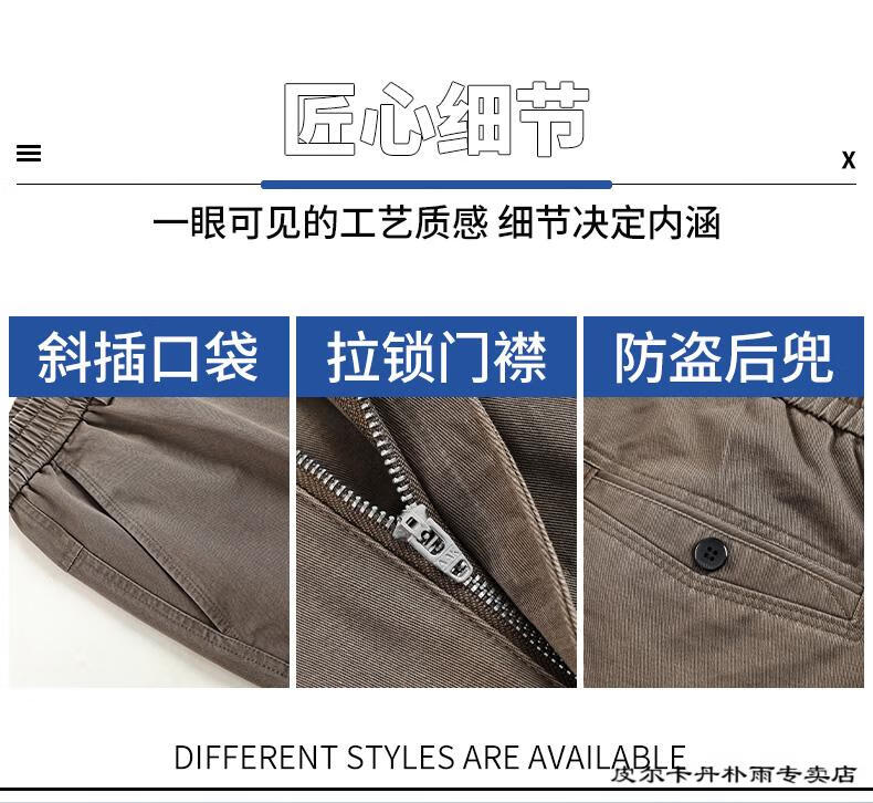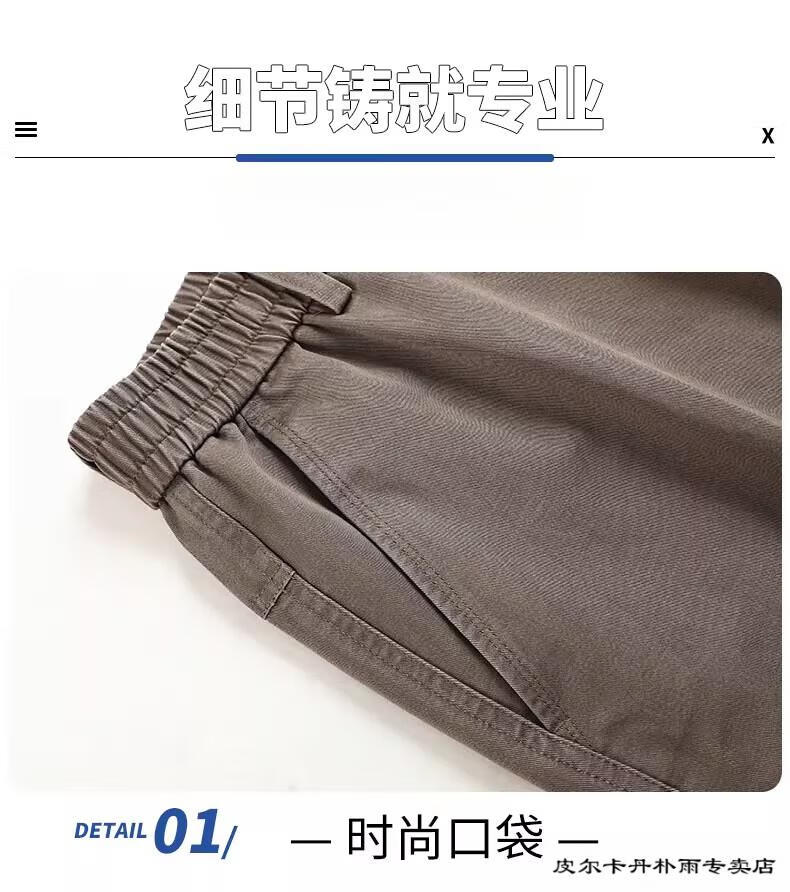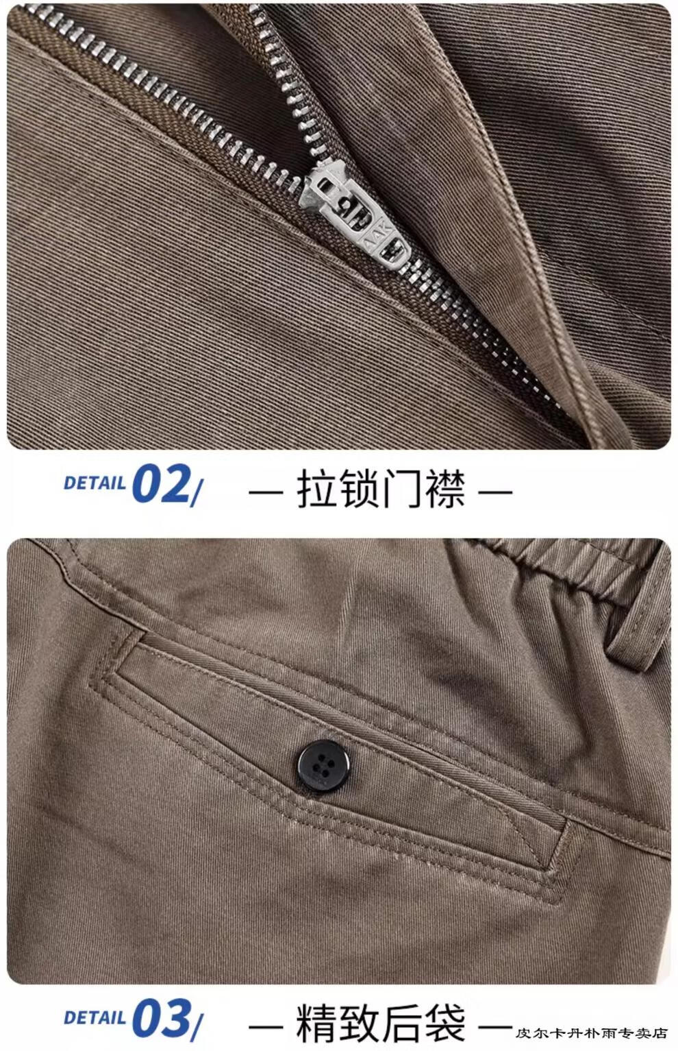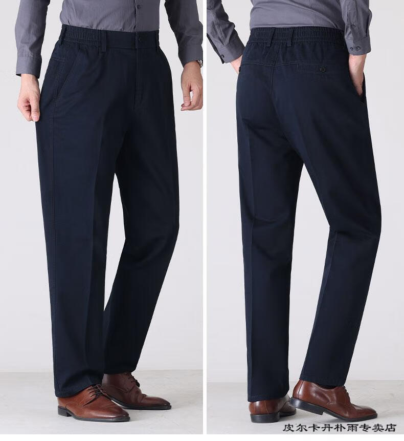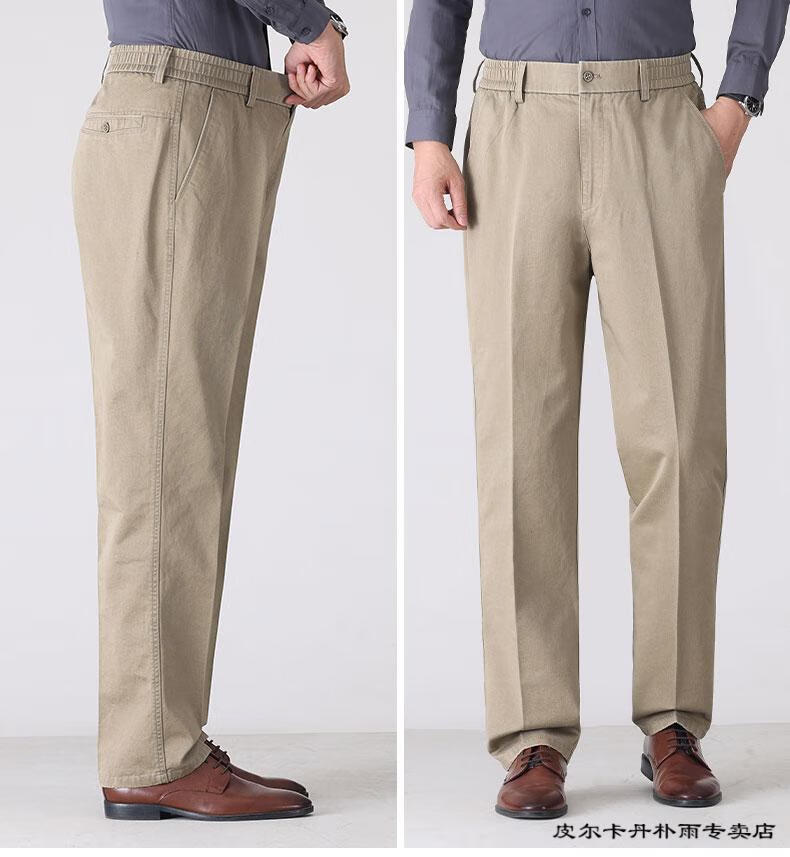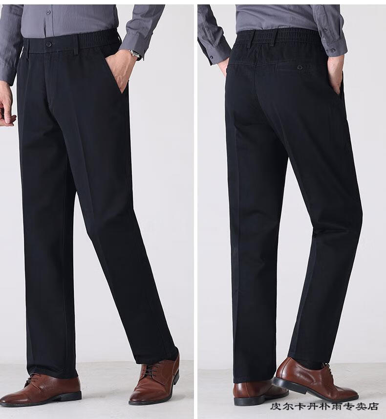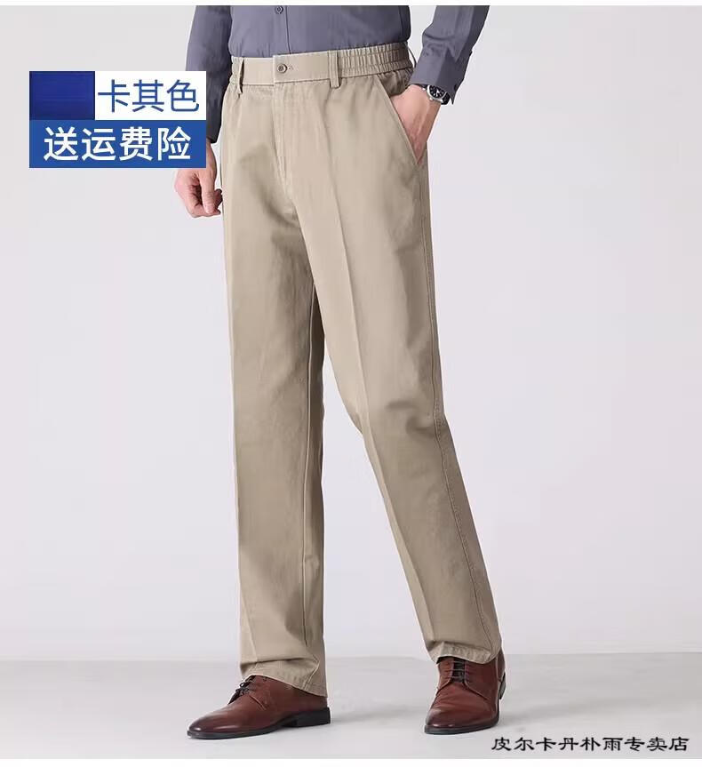 Pierre Cardin pure cotton casual pants men's spring and autumn business trousers high waist deep crotch middle-aged and elderly dad's loose solid color trousers card gray spring and autumn 4XL