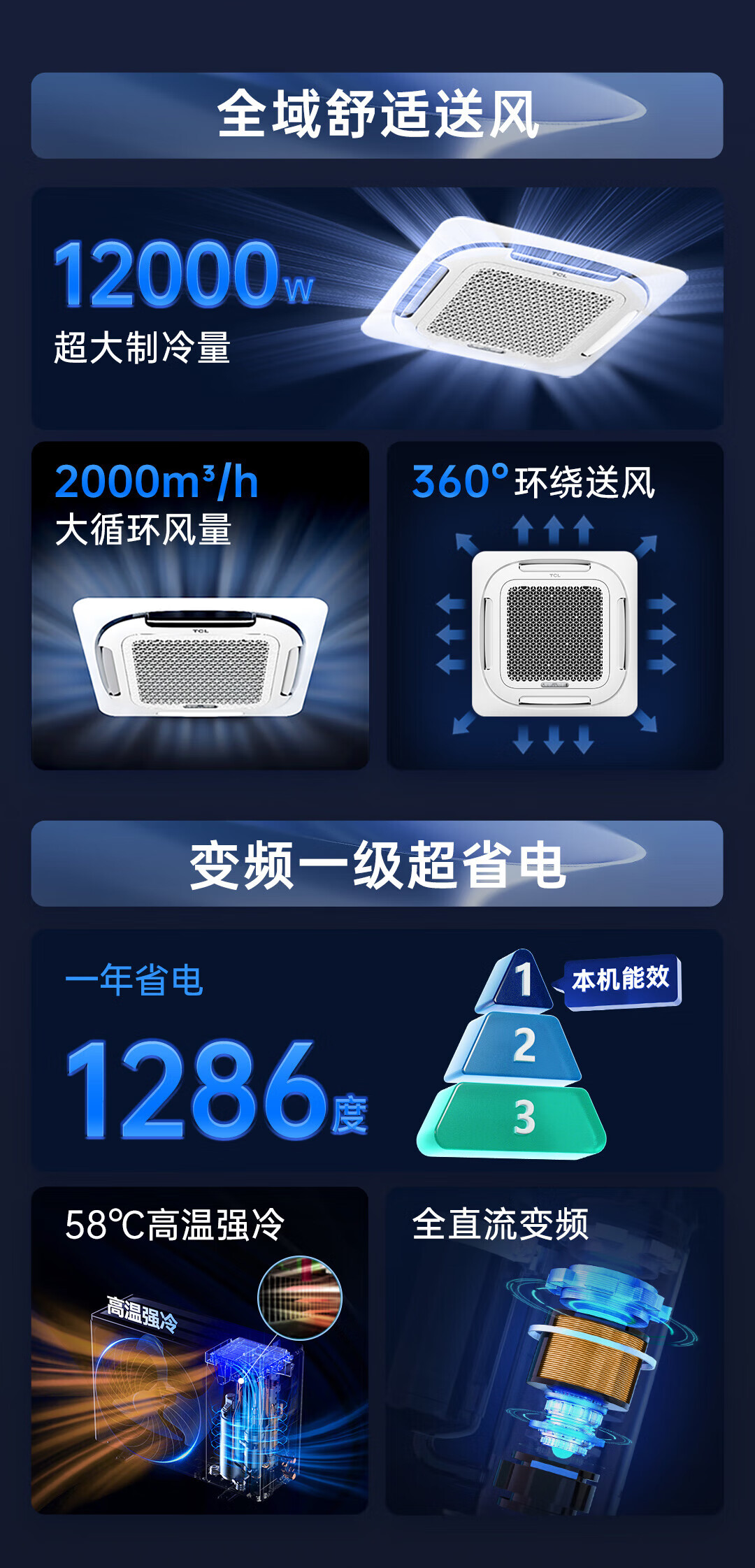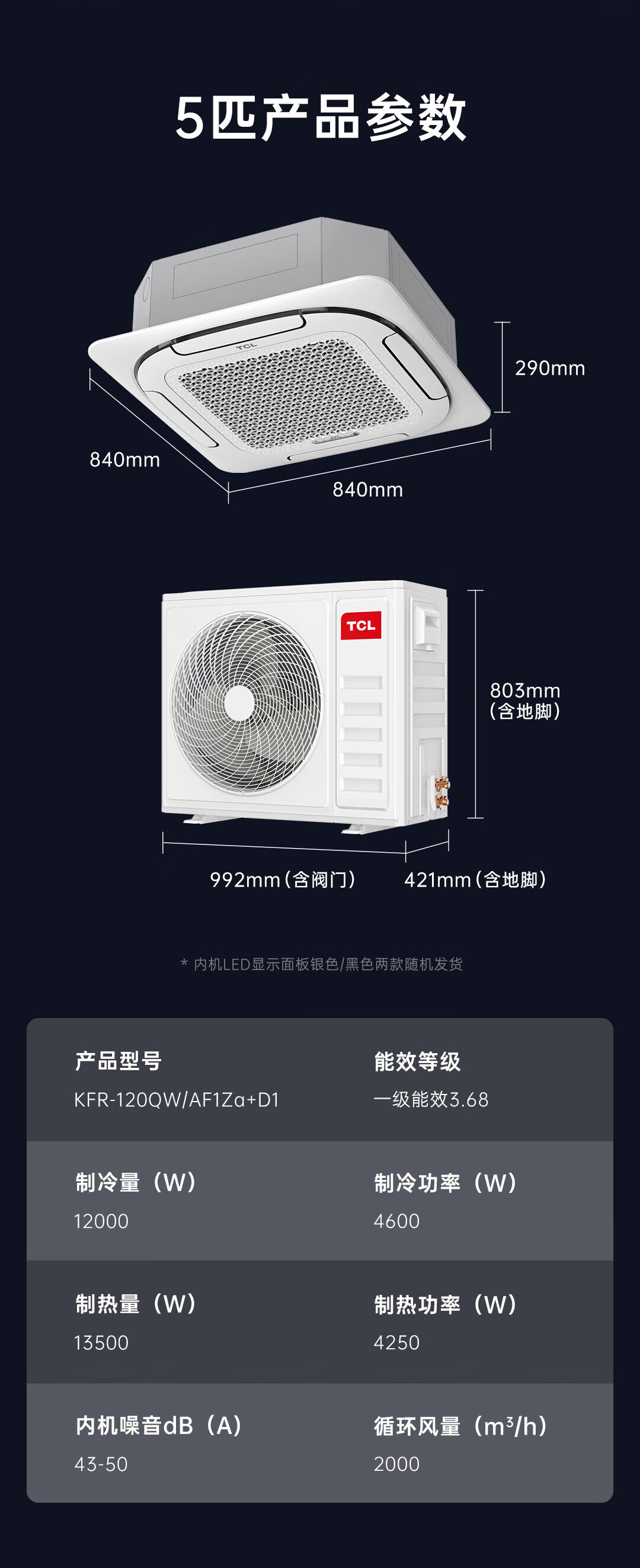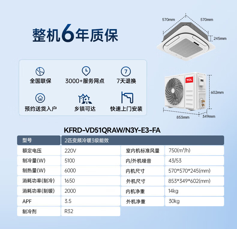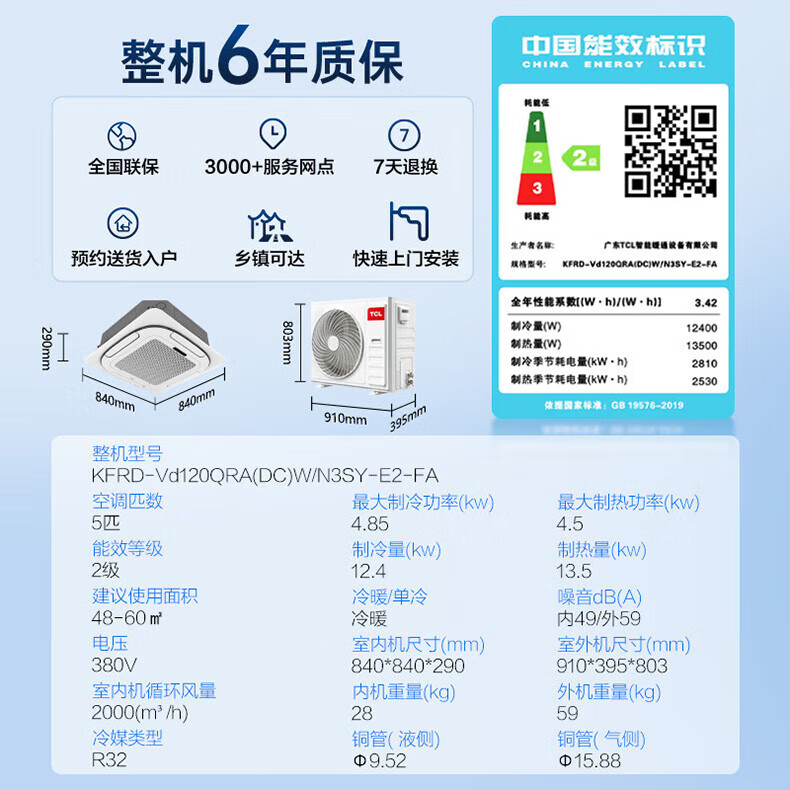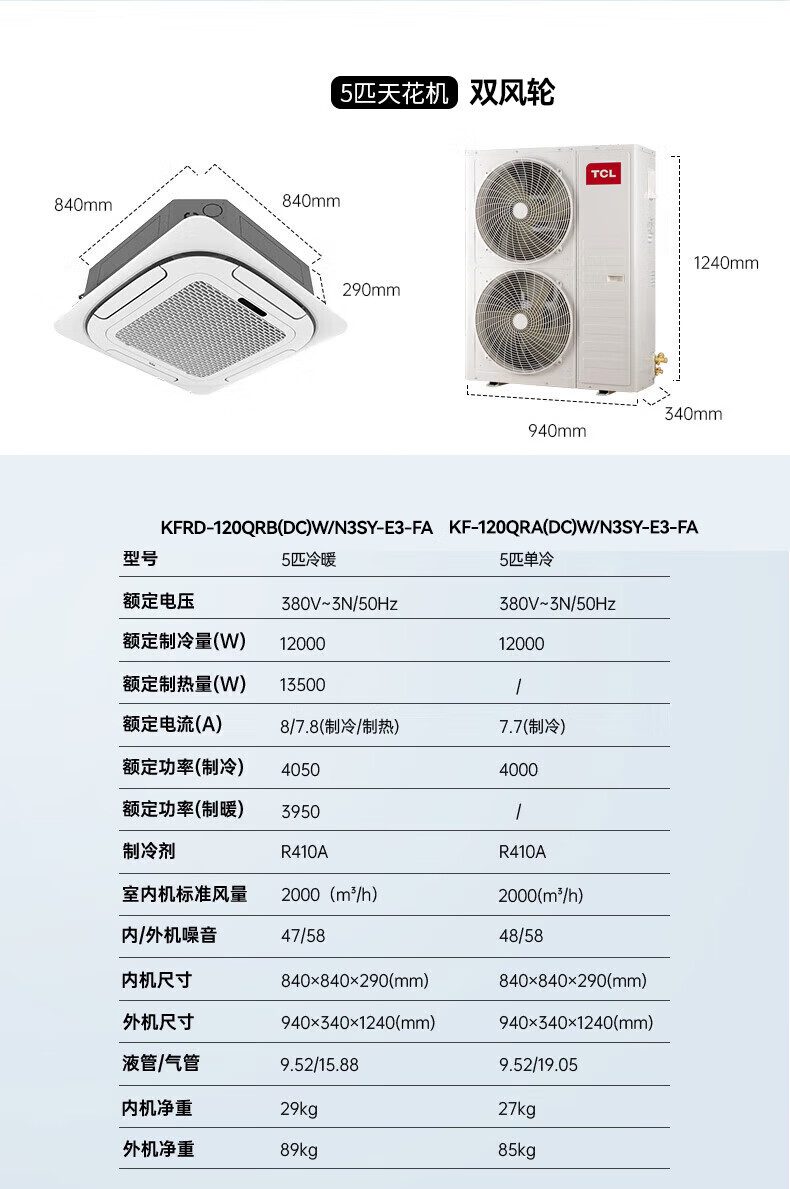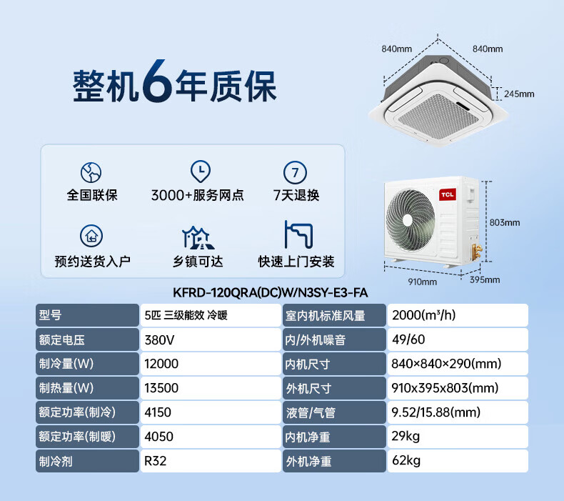 TCL central air-conditioning ceiling unit frequency conversion secondary energy efficiency embedded ceiling air conditioner one-to-one well unit shop hotel office factory ceiling commercial air conditioner 5 HP secondary energy efficiency single cooling 380V frequency conversion