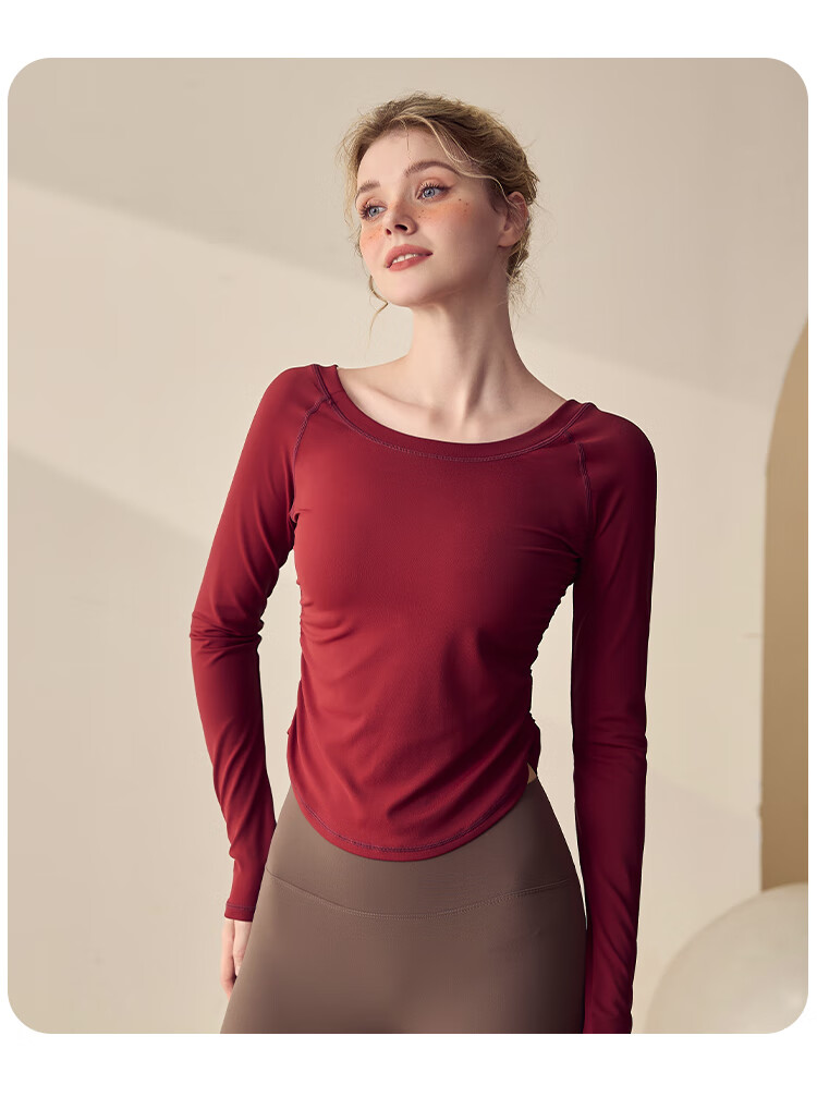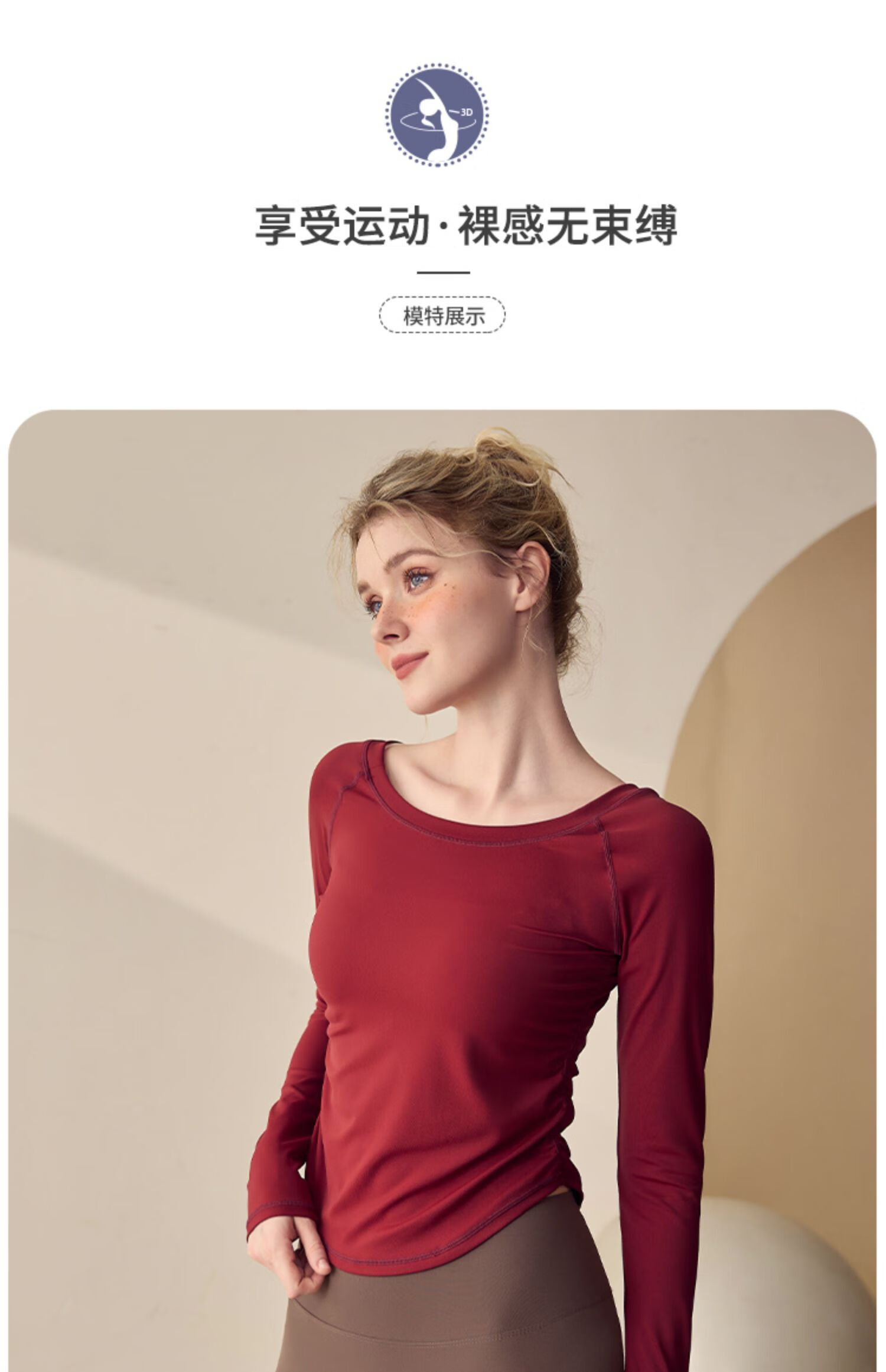 LULULMCCTN long-sleeved yoga clothes for women, running sports tops, slim fit, Pilates training t-shirt, quick-drying fitness clothes, red S