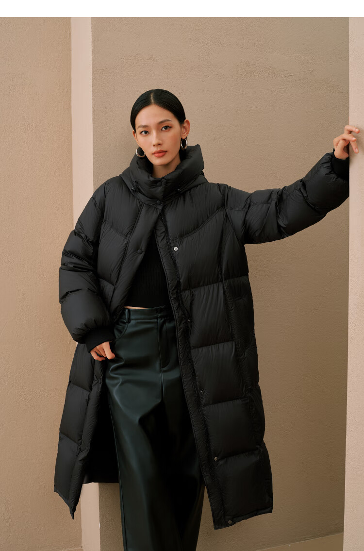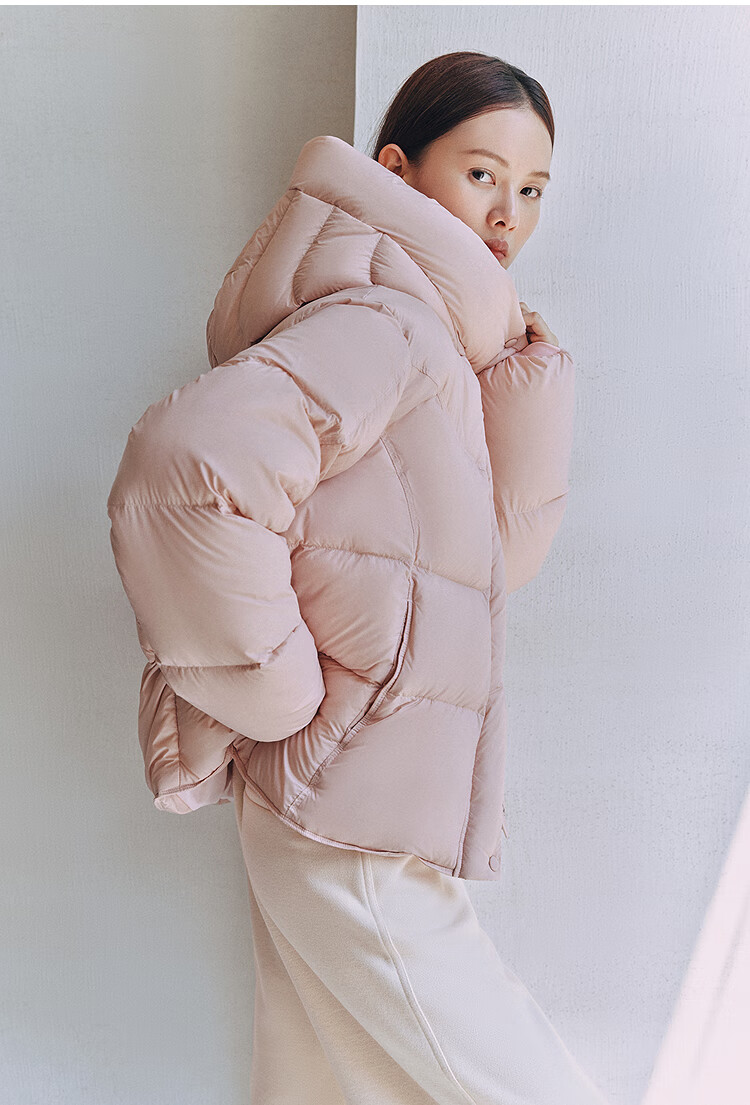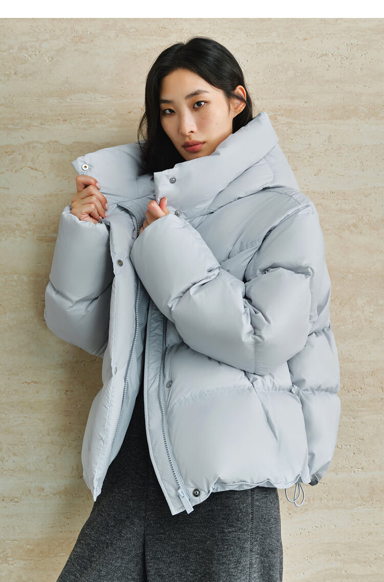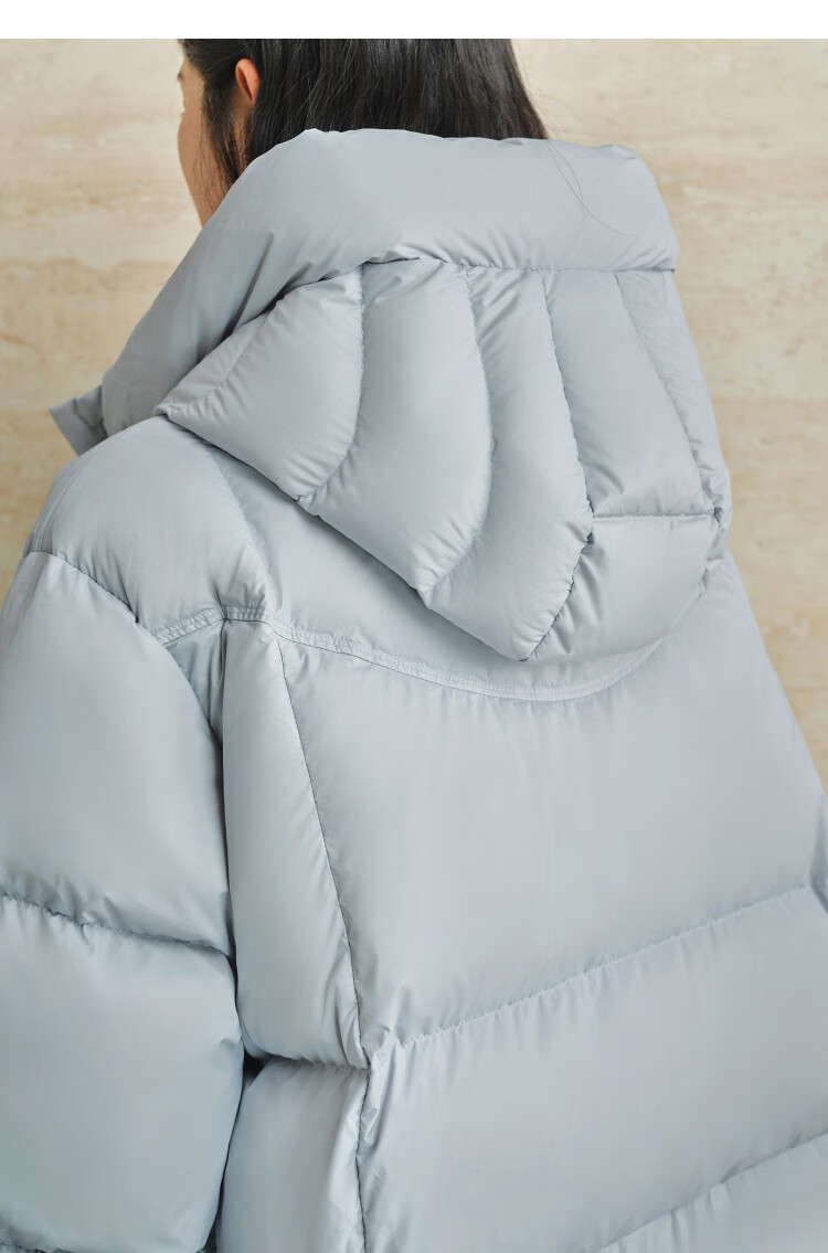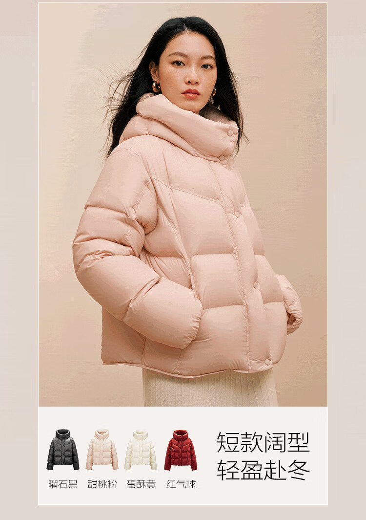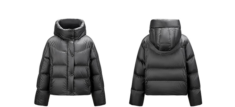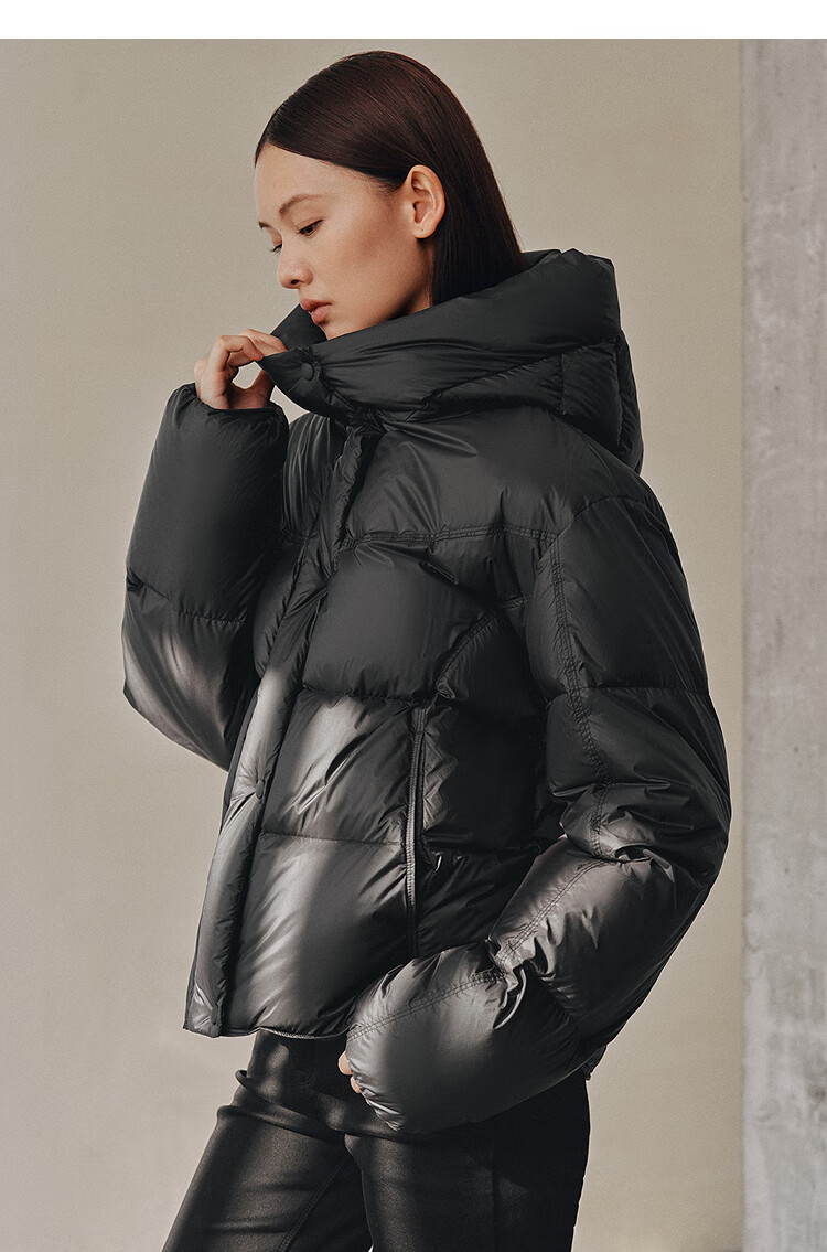 太平鸟【热气球】女装连帽泡芙花苞长羽绒服冬保暖外套 曜石黑【短款】 M