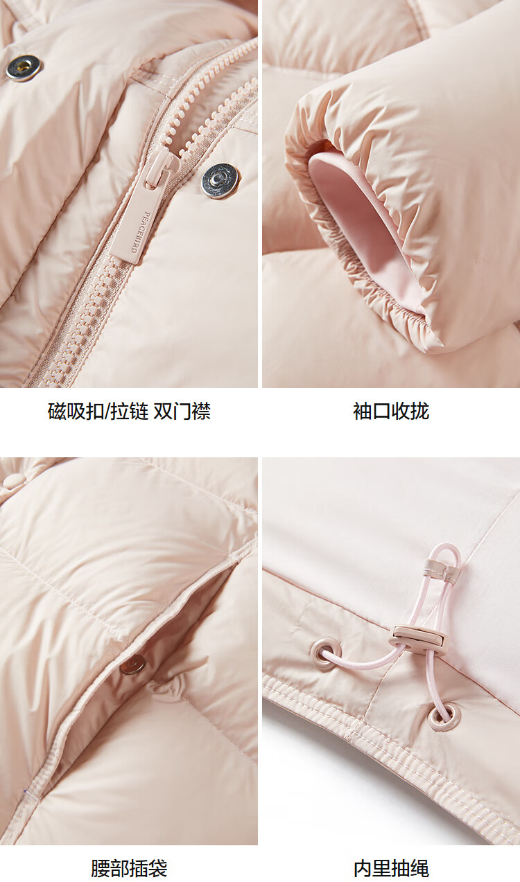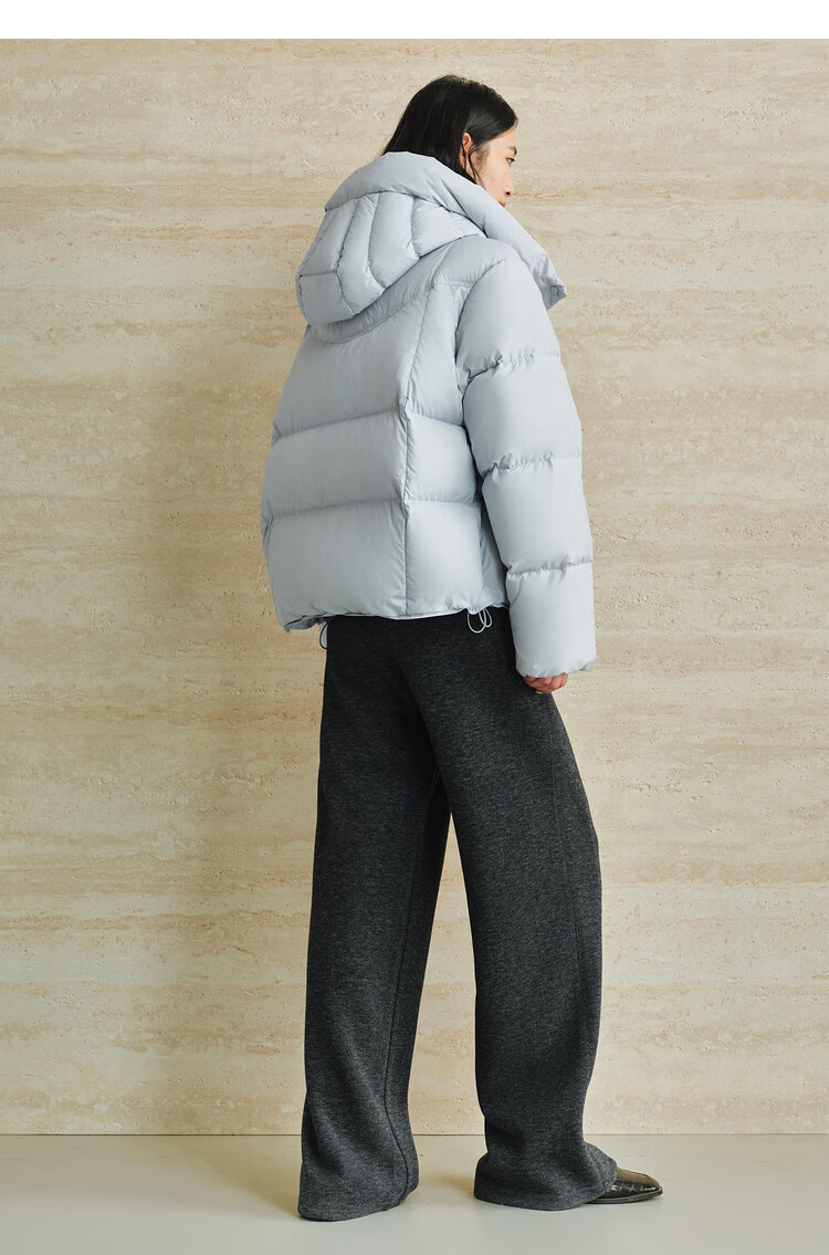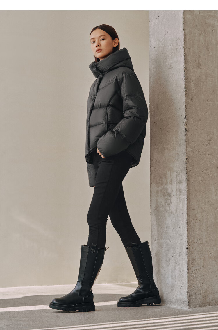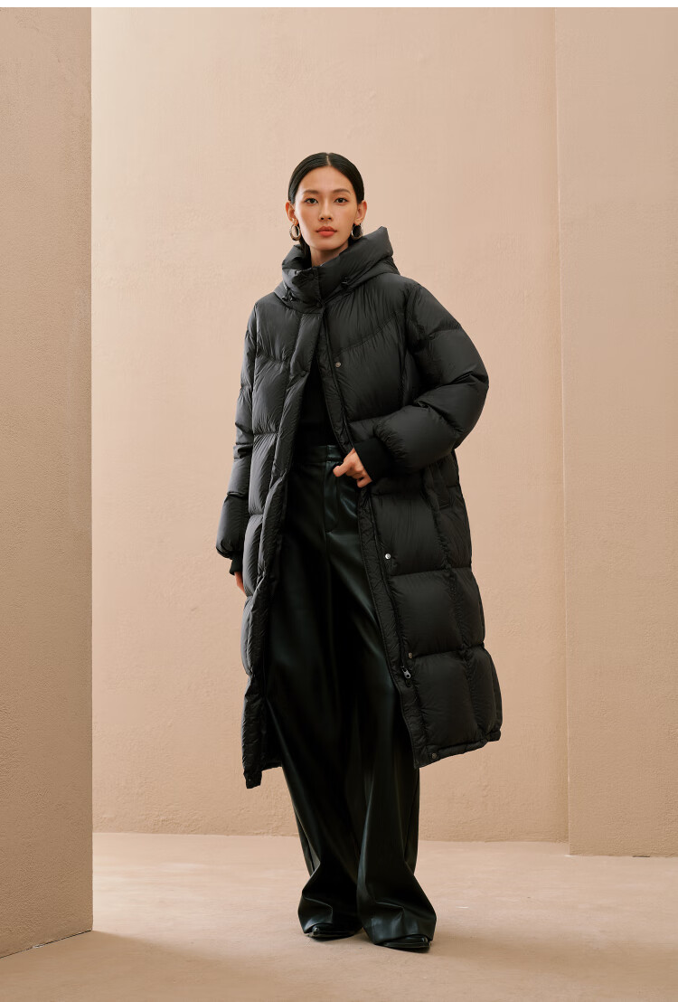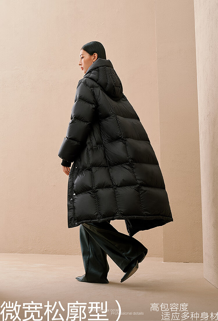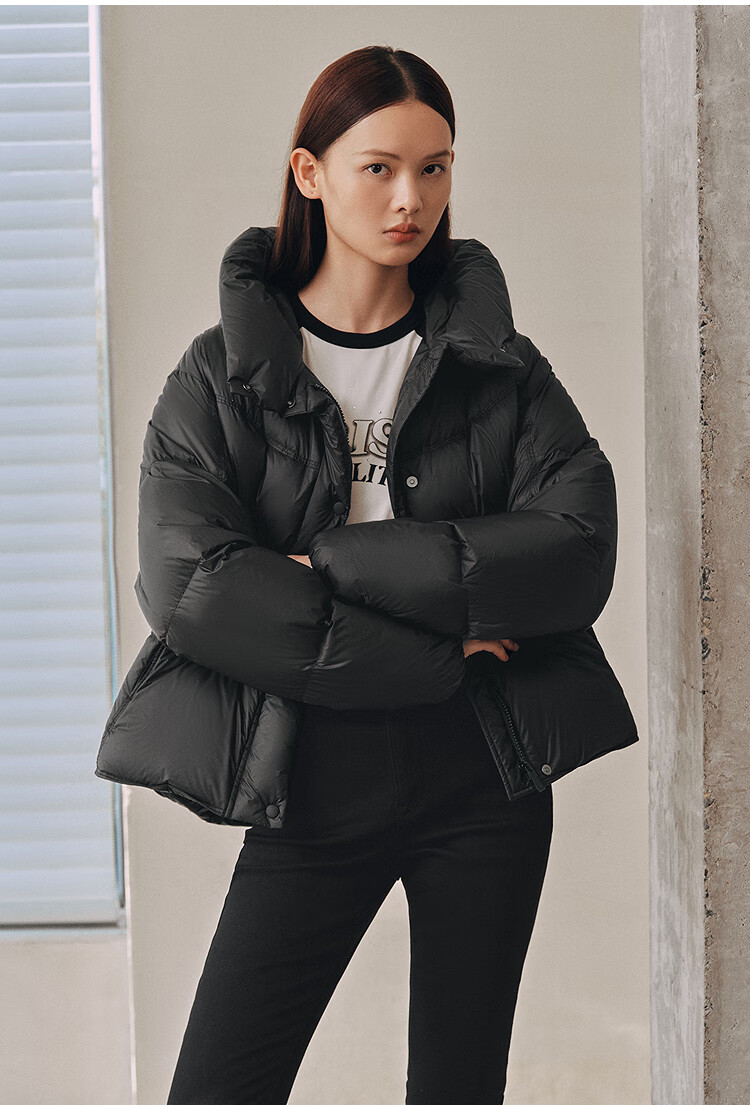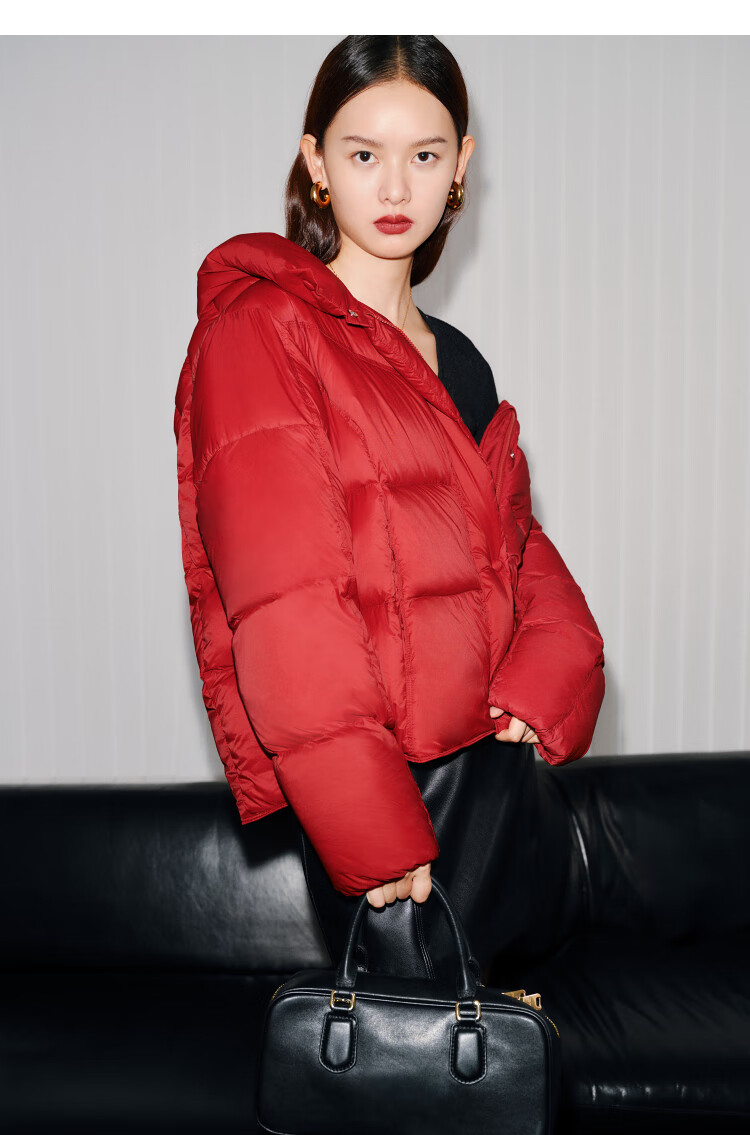 太平鸟【热气球】女装连帽泡芙花苞长羽绒服冬保暖外套 曜石黑【短款】 M