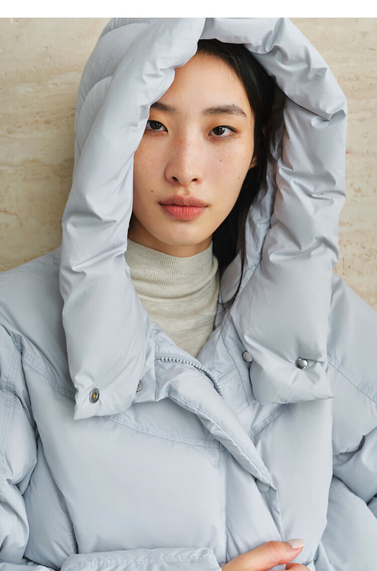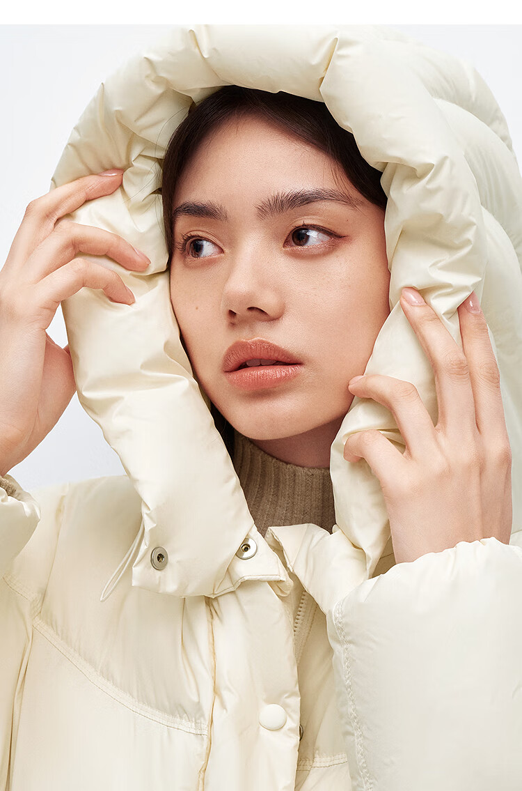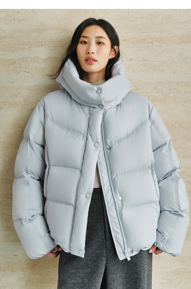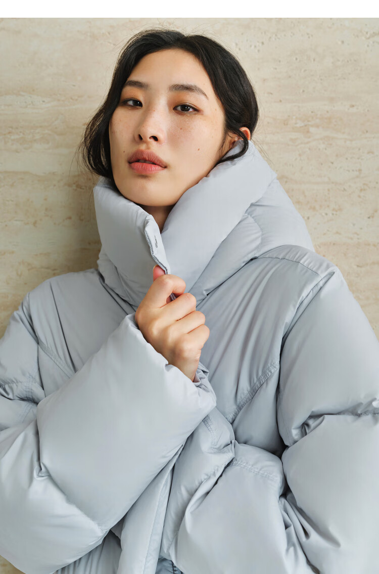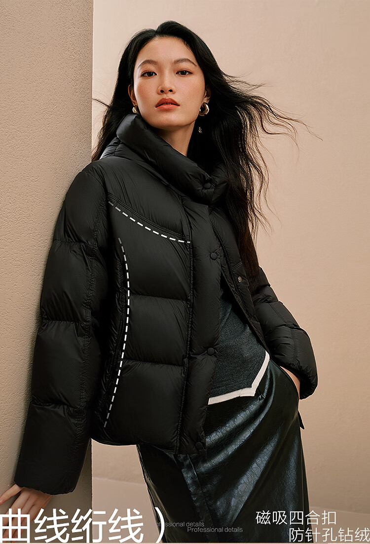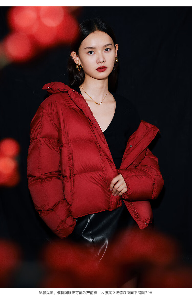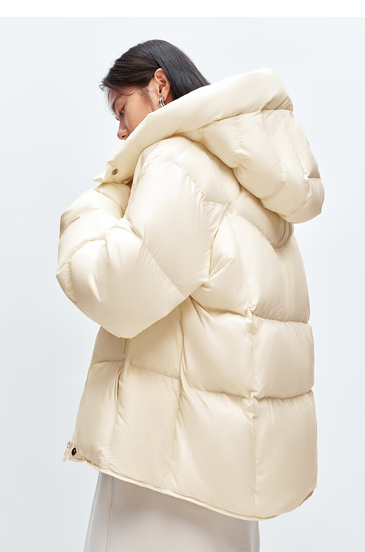 太平鸟【热气球】女装连帽泡芙花苞长羽绒服冬保暖外套 曜石黑【短款】 M