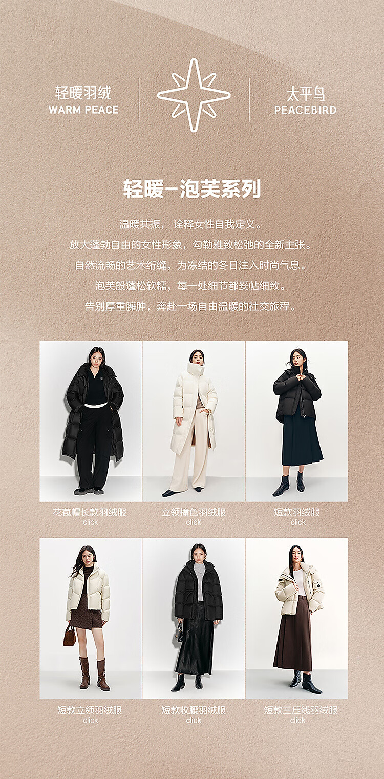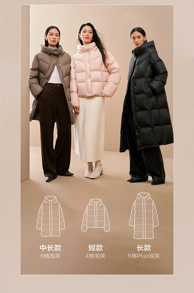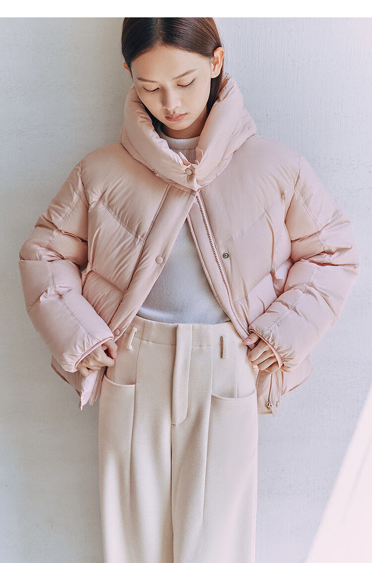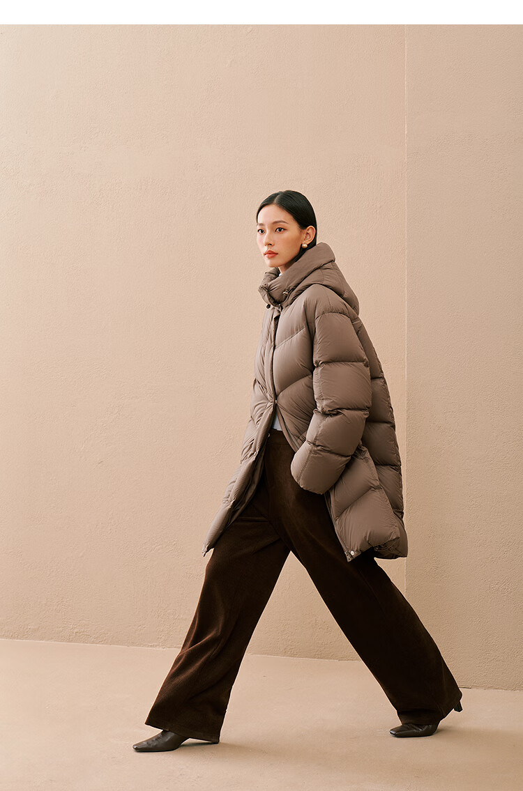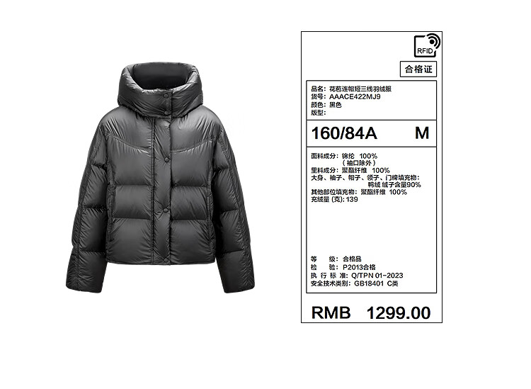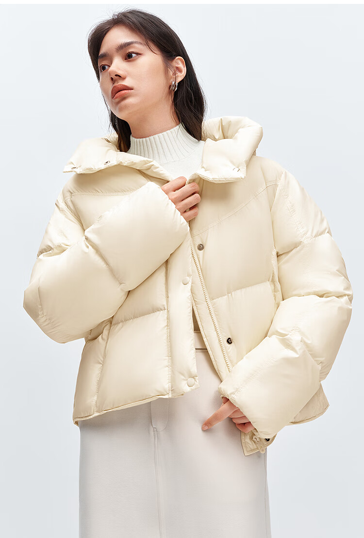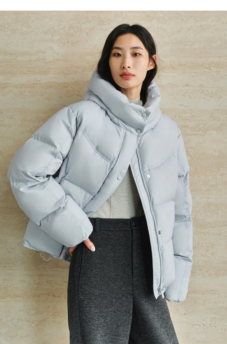太平鸟【热气球】女装连帽泡芙花苞长羽绒服冬保暖外套 曜石黑【短款】 M