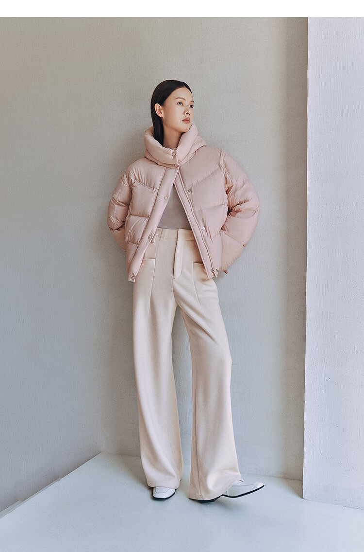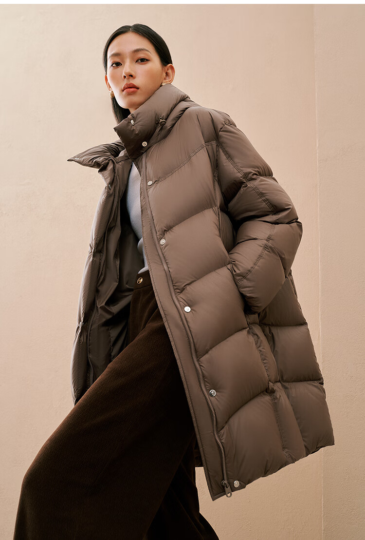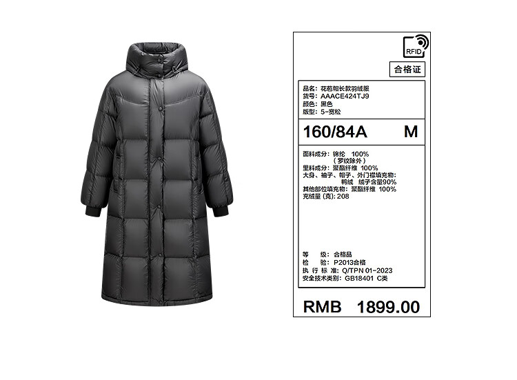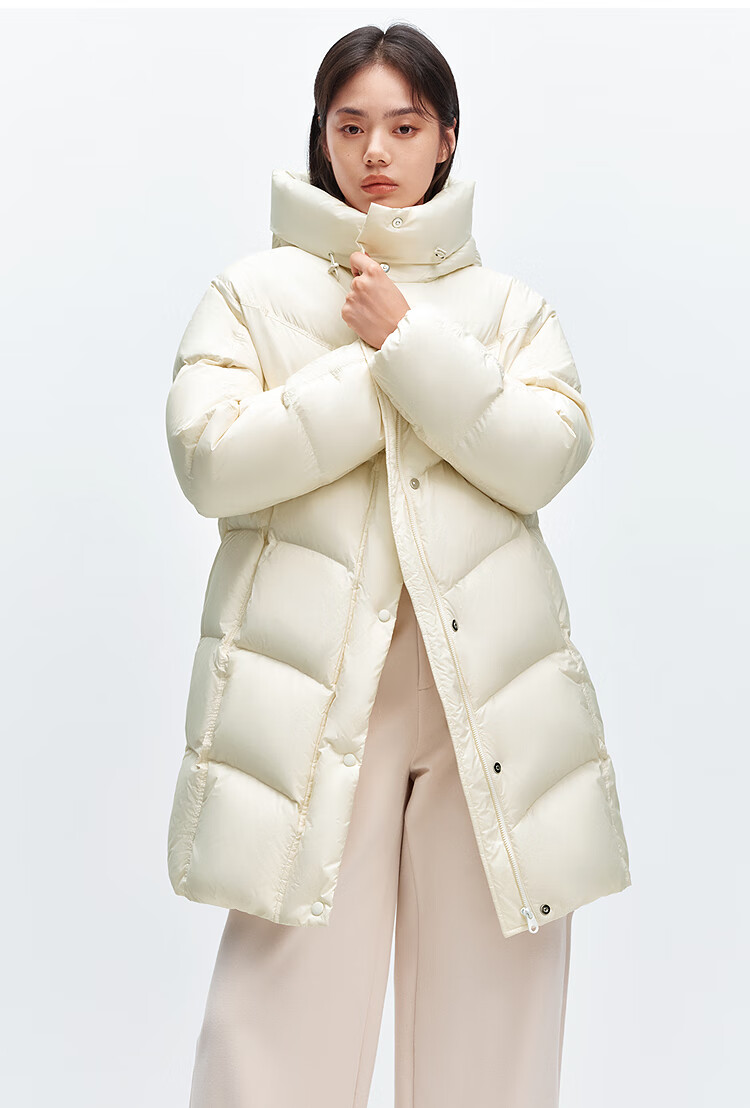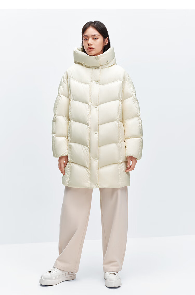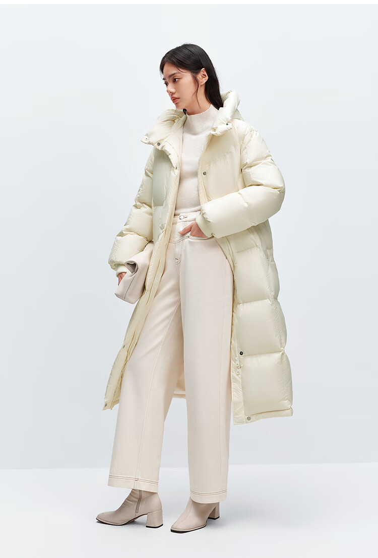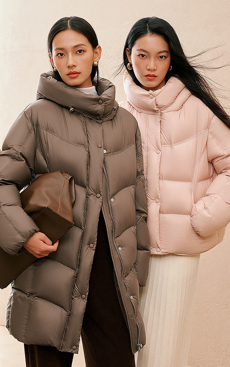 太平鸟【热气球】女装连帽泡芙花苞长羽绒服冬保暖外套 曜石黑【短款】 M