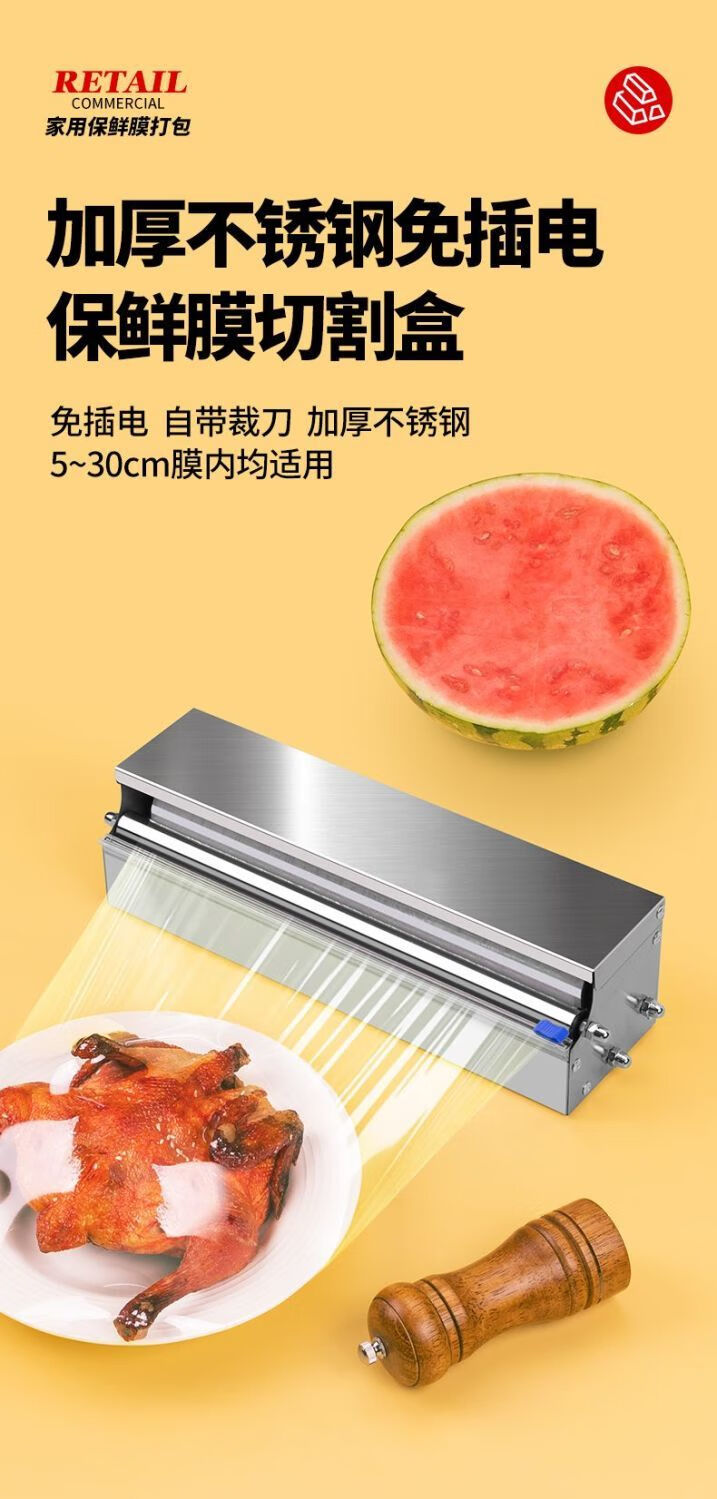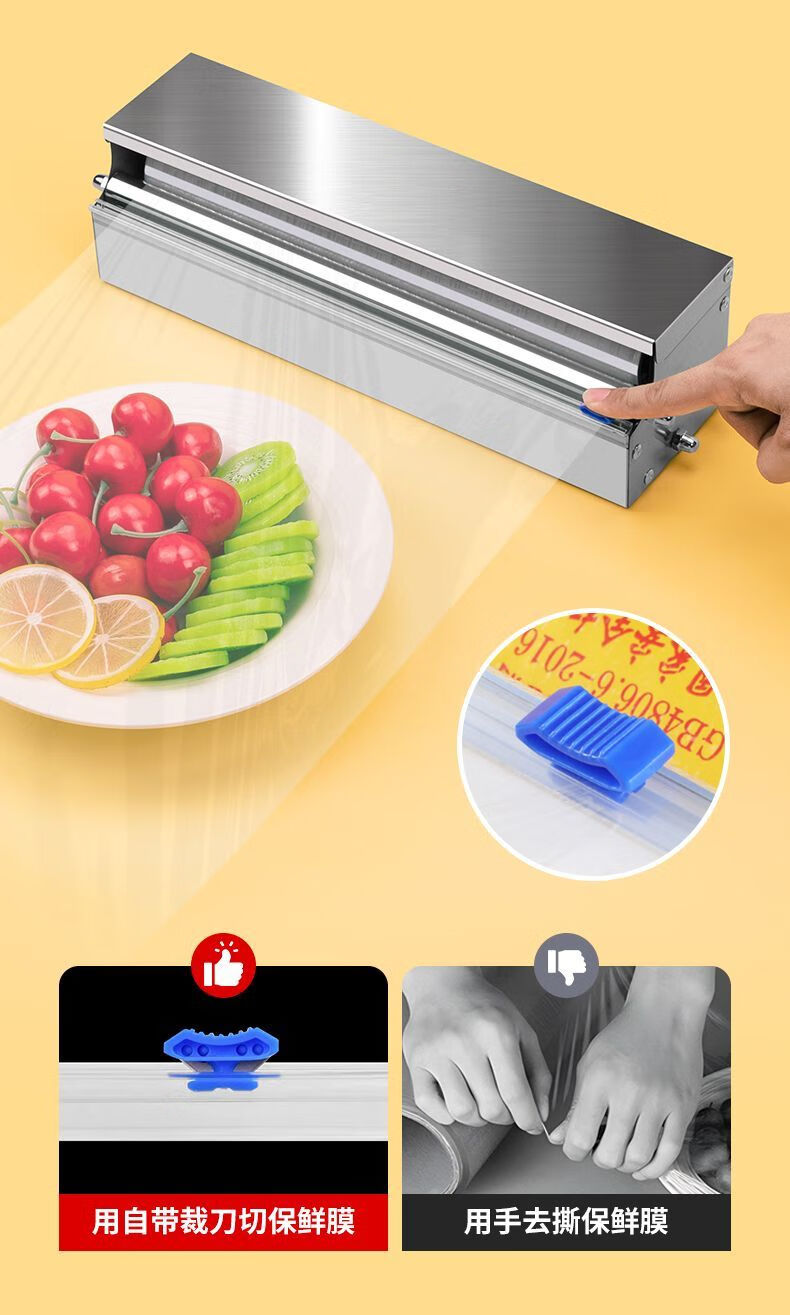 FANCYCHIC fruit cling film cutter stainless steel household point-break insurance film sliding knife packing rack kitchen commercial thickening and widening can cut within 30CM + 3 knives