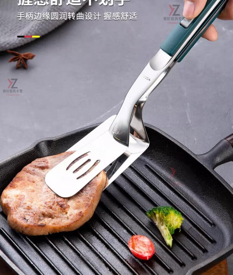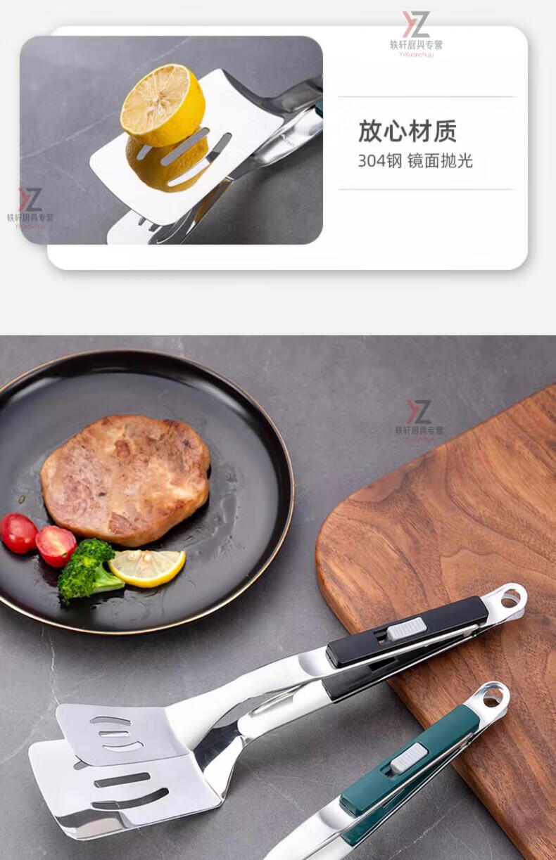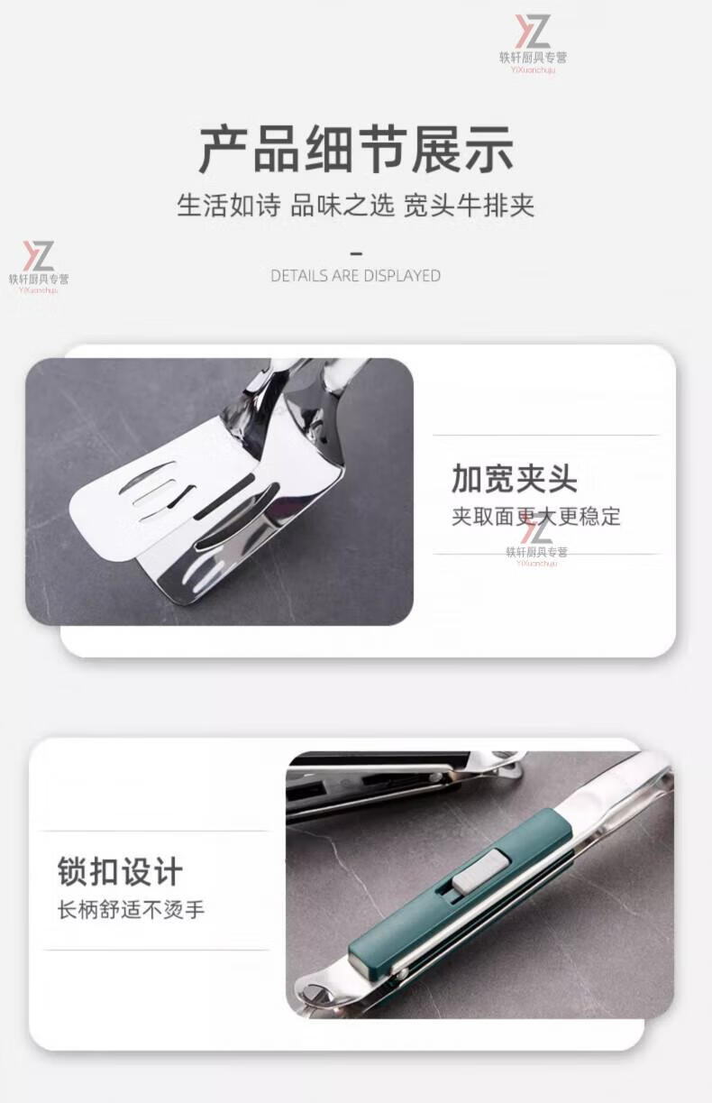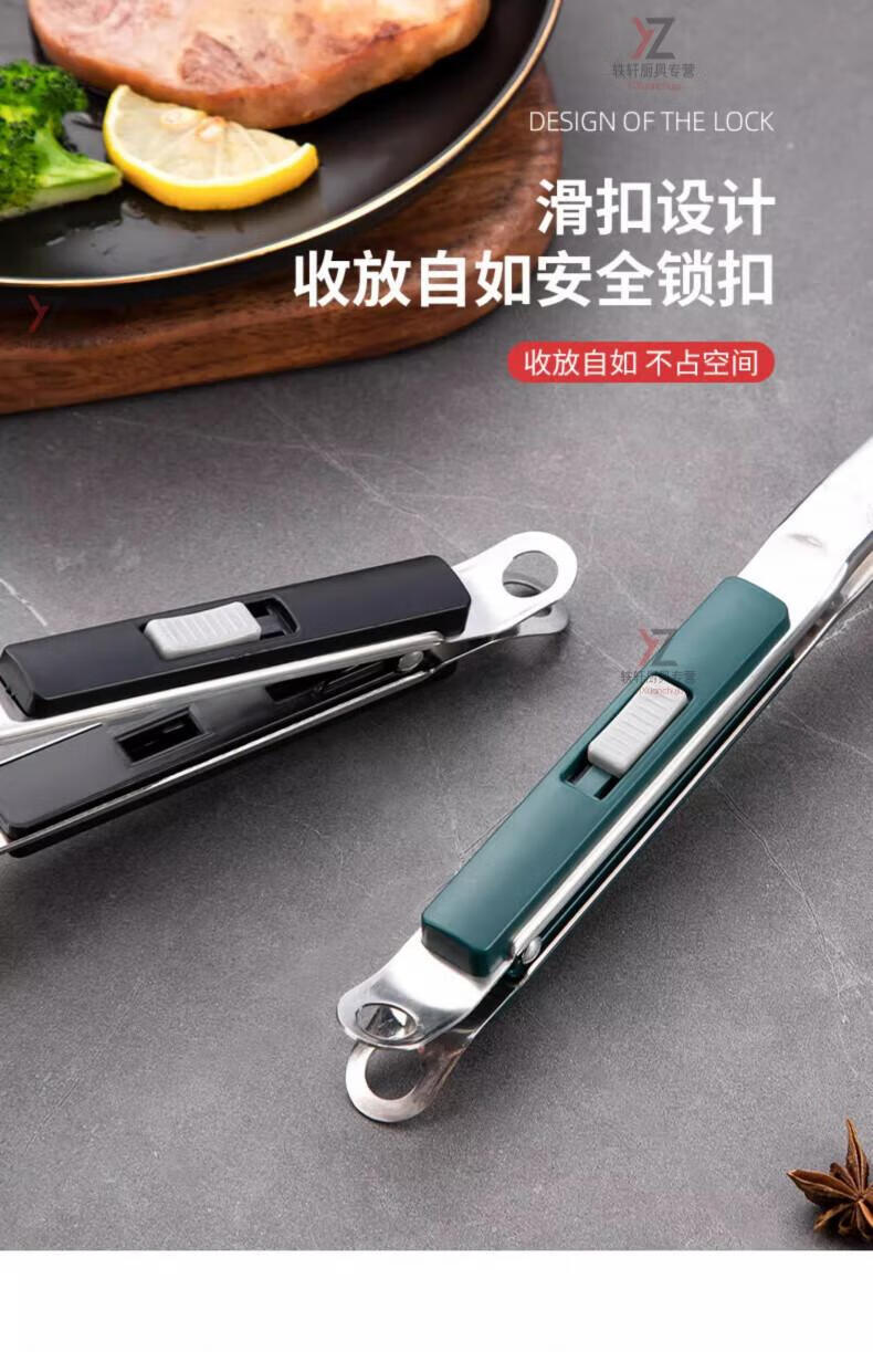 AILUKI Japanese 304 stainless steel steak special clip kitchen food clip thickened anti-scalding clip food grade grilled antibacterial 304 steel dark green - widened clamp surface_drain juice and oil