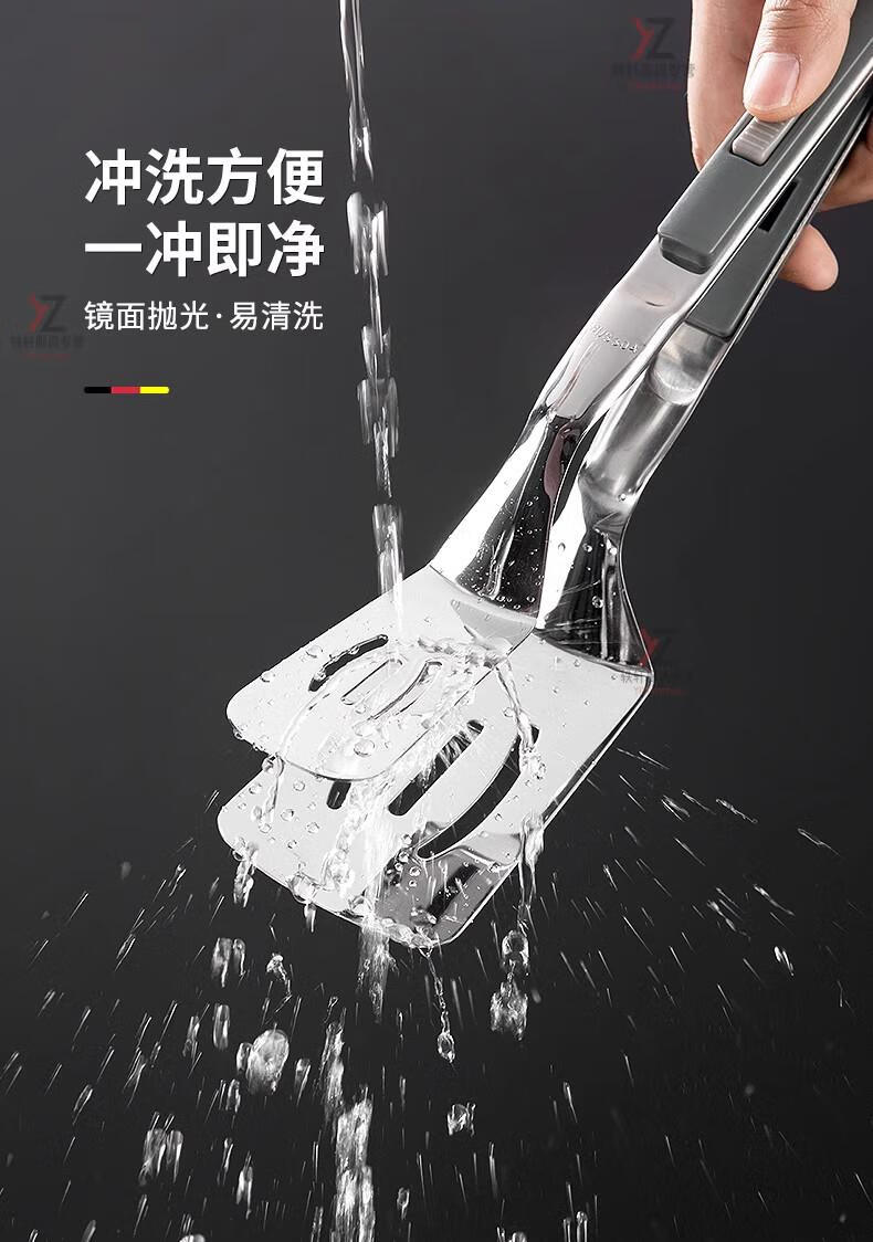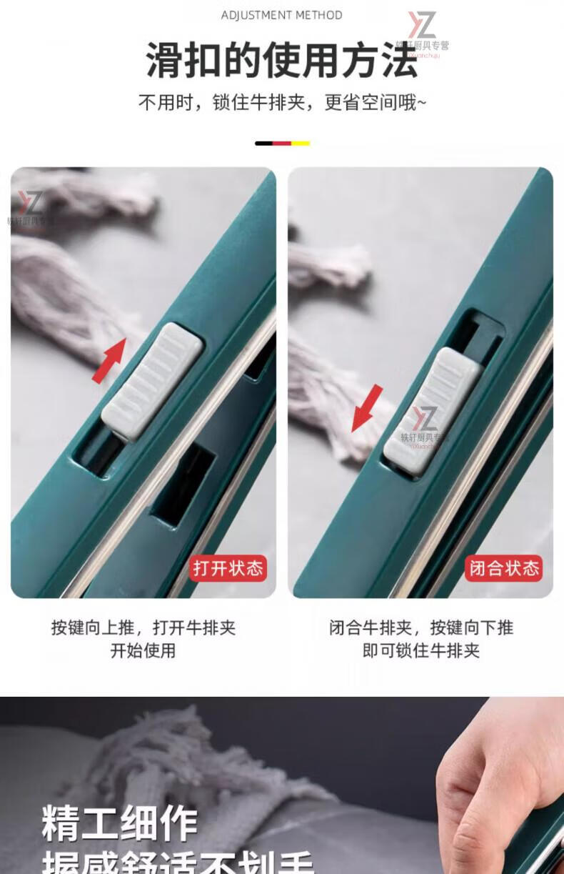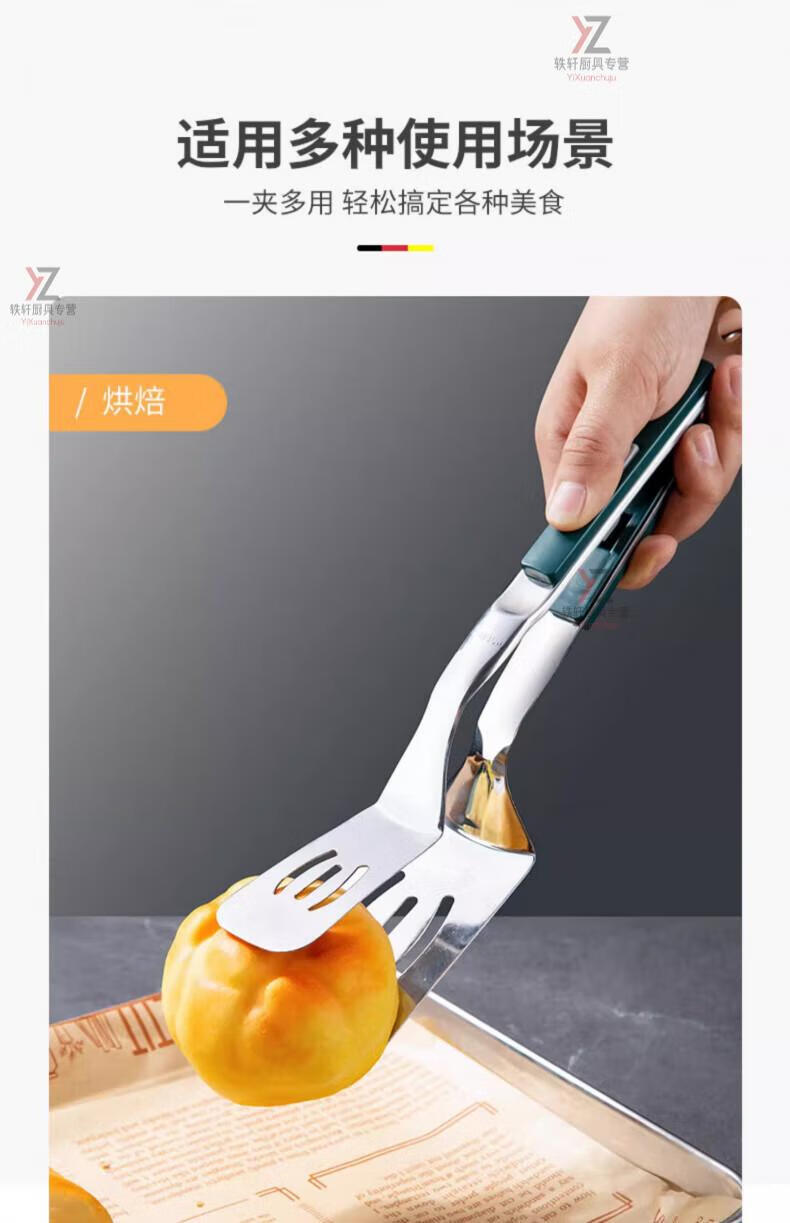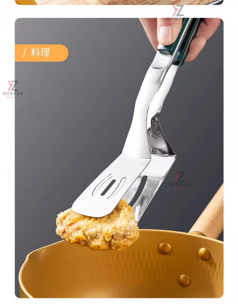 AILUKI Japanese 304 stainless steel steak special clip kitchen food clip thickened anti-scalding clip food grade grilled antibacterial 304 steel dark green - widened clamp surface_drain juice and oil
