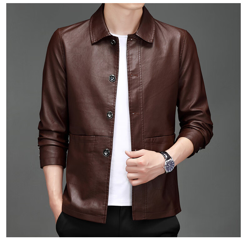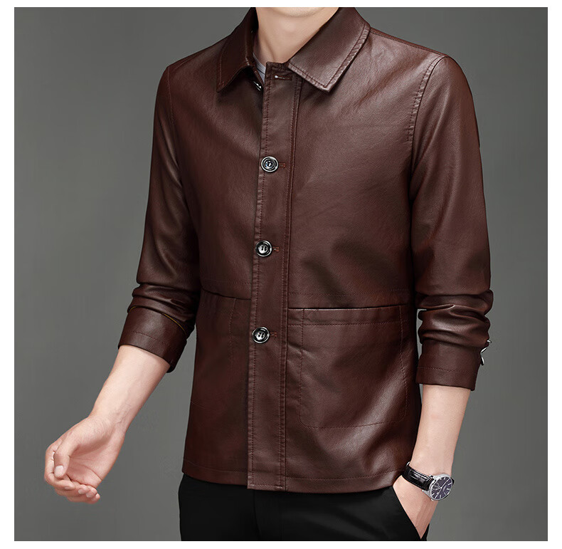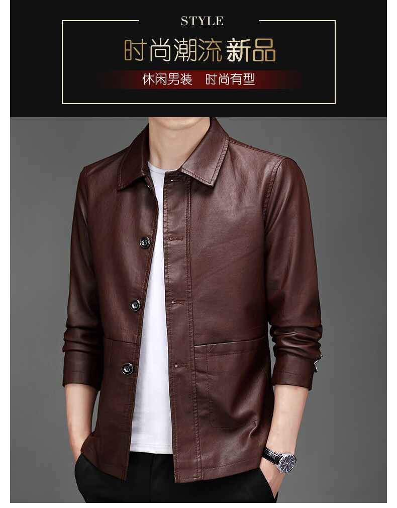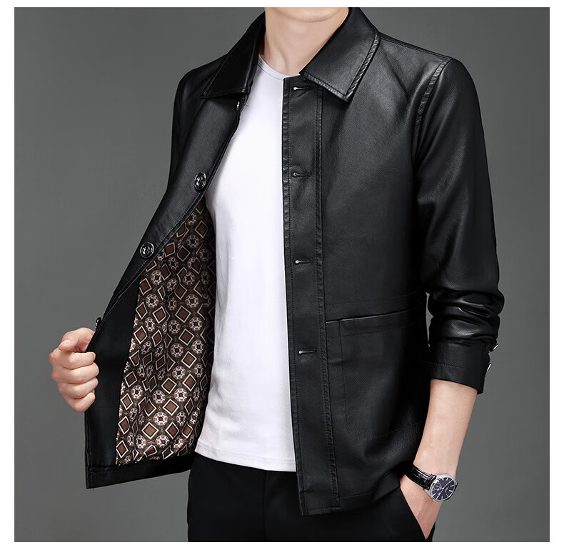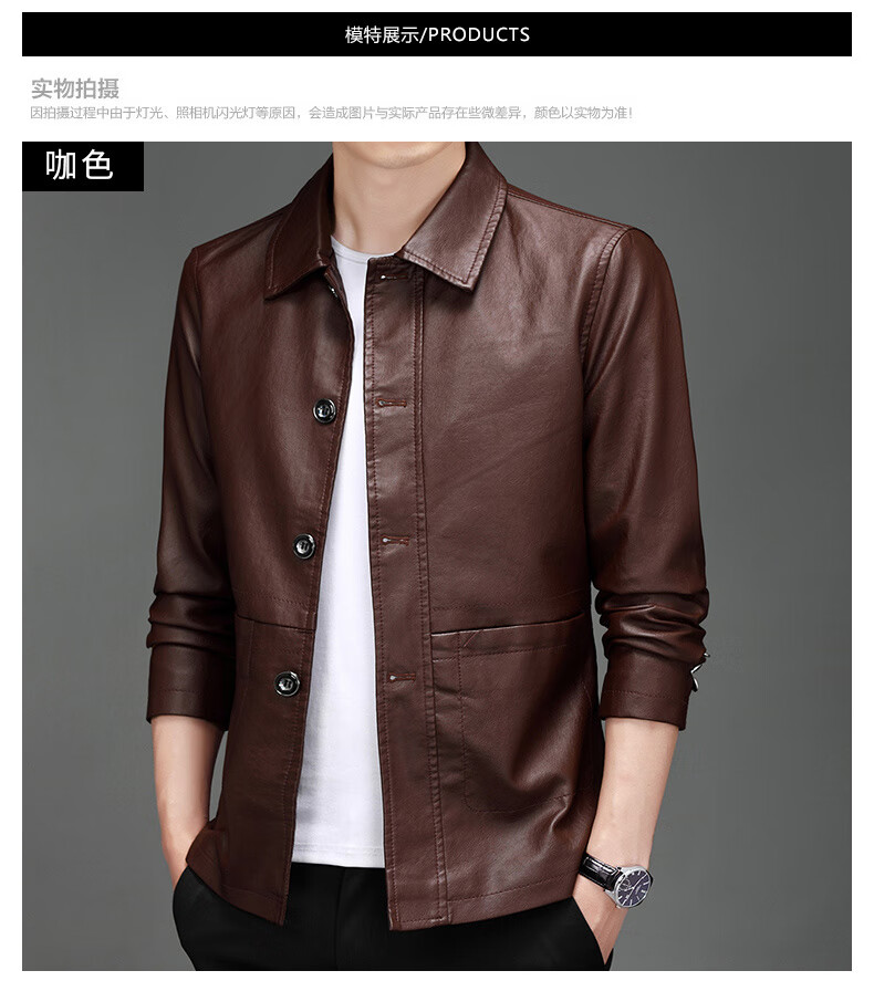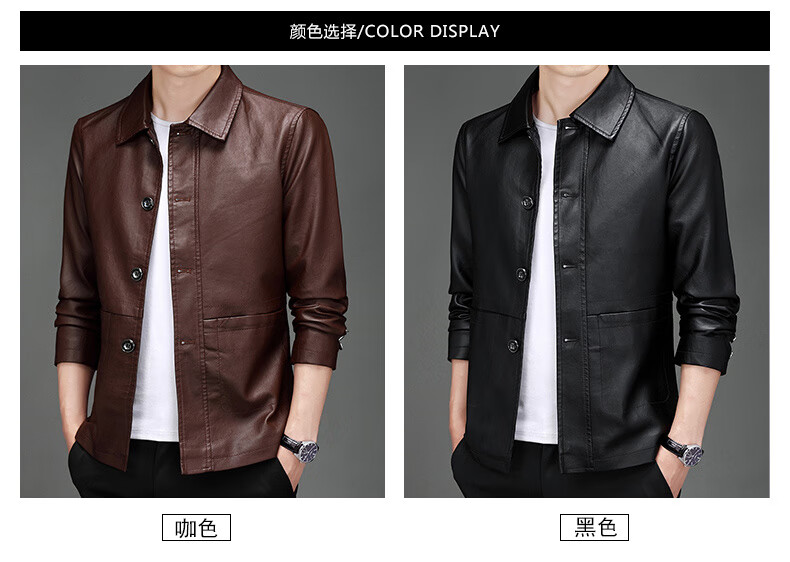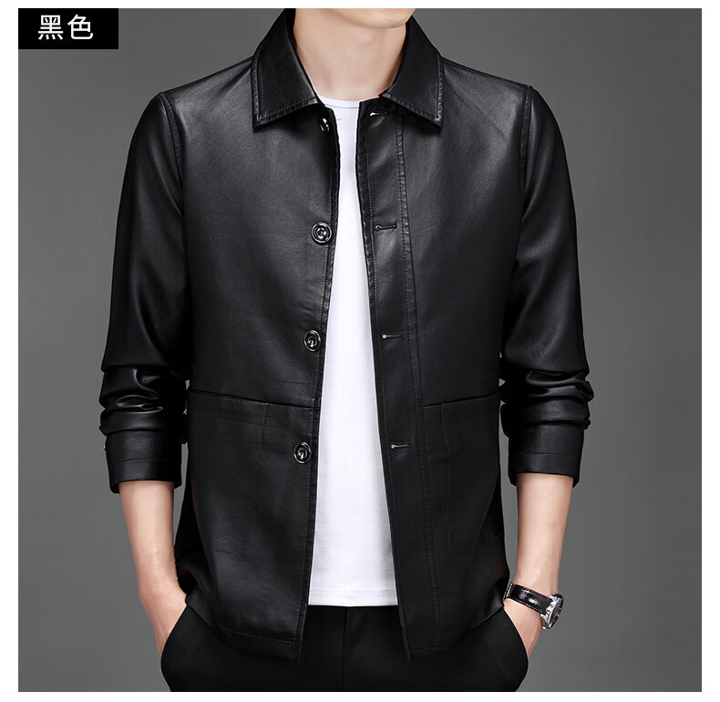 Hengyuanxiang men's leather jacket autumn and winter new style velvet thickened leather jacket Korean style trendy top warm lapel motorcycle jacket QCC-981 black velvet 2XL