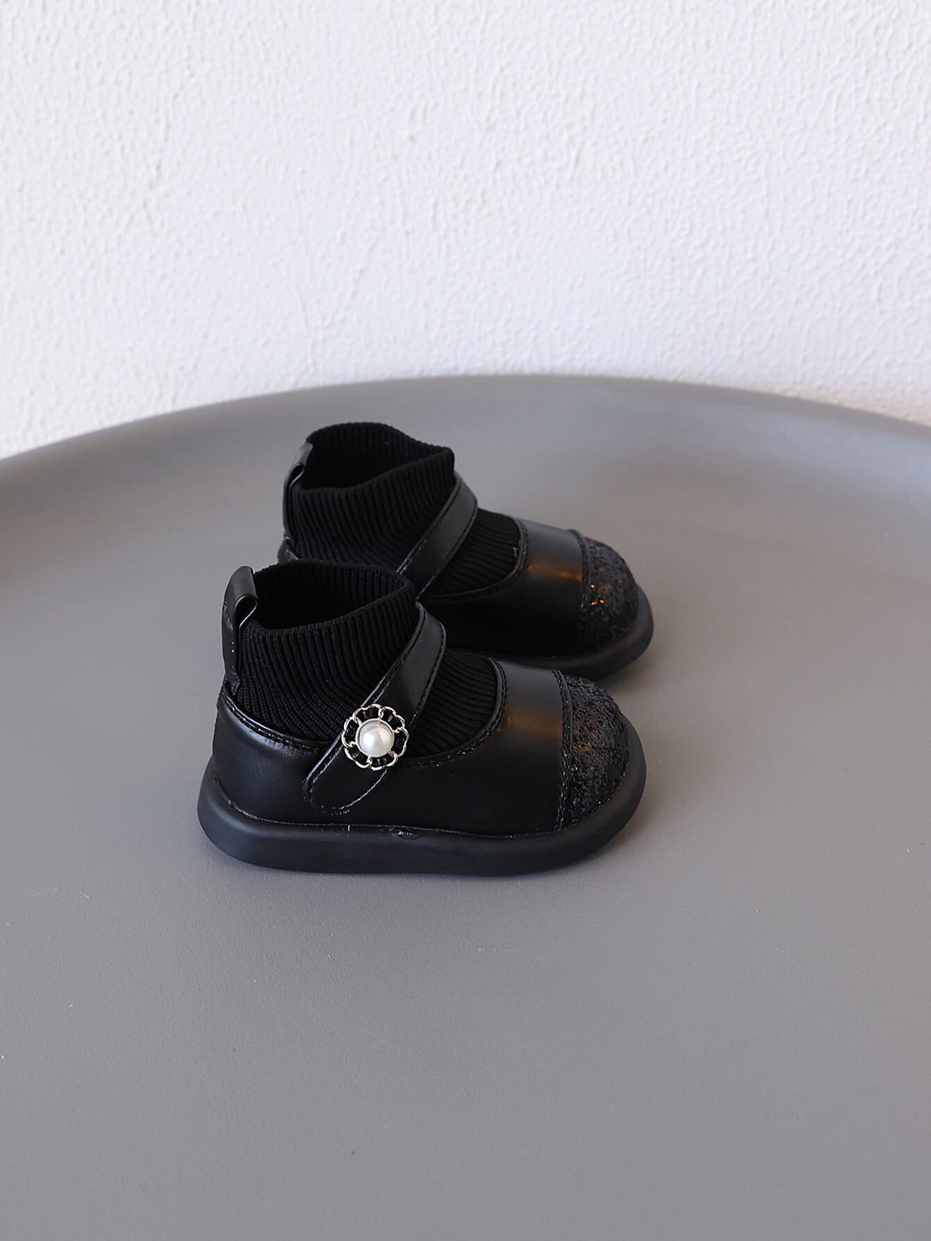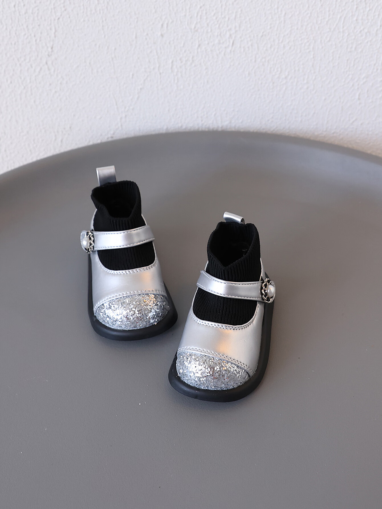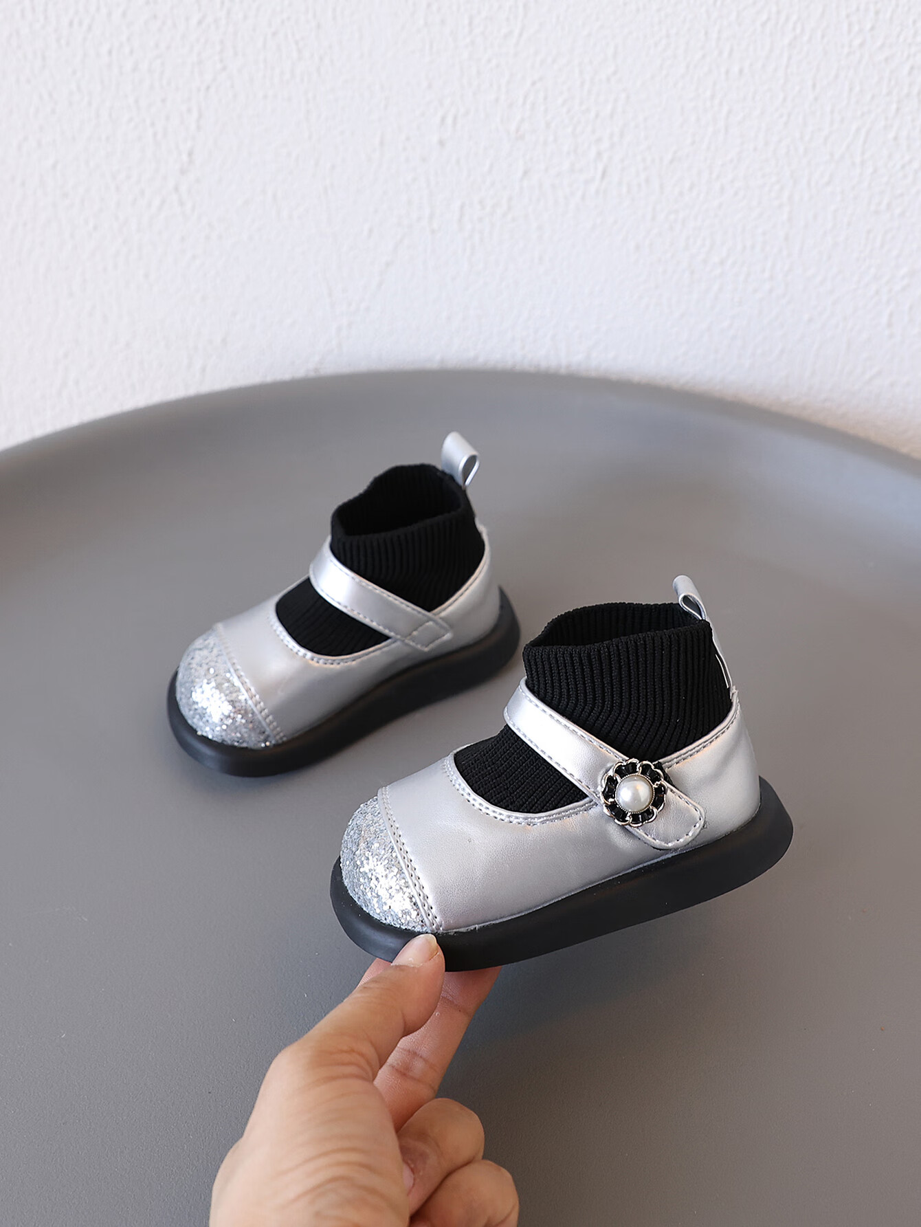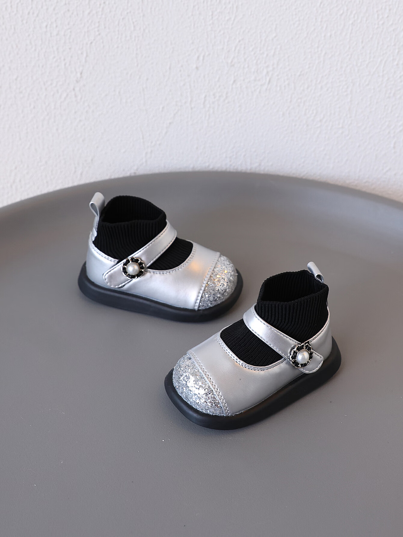 Autumn and winter fashionable children's shoes leather boots girls short boots princess baby non-slip toddler shoes girls sequined Martin boots black plus velvet 15 inner length 12cm