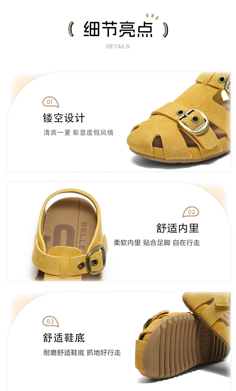 Belle Children's Shoes Roman Sandals 2025 Xiaxin Mall Same Style Comfortable Hollow Casual Toast Shoes 93920B65 Apricot 30