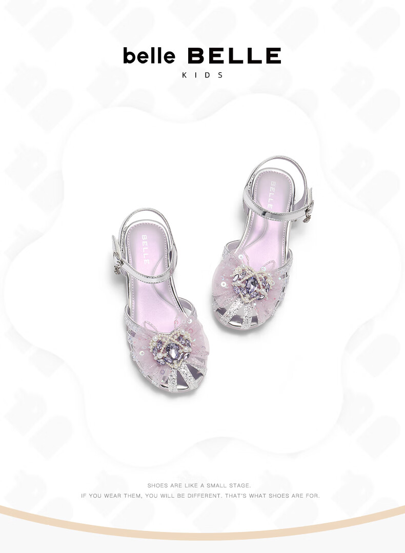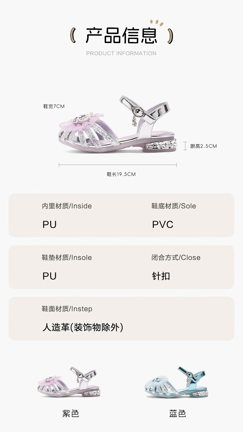 Belle Children's Shoes Symphony Princess Style Sandals Women's 2025 Xia Xin Mall Same Style Girls' Rhinestone Sandals A6203B65 Blue 32