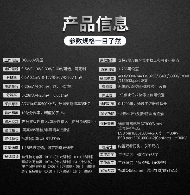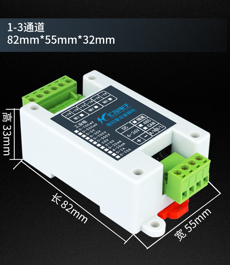 Yue Changsheng 3-channel RS485 analog acquisition module 0-5V/10V/30V/4-20mA voltage and current U 0-10V 3-channel isolation RS485