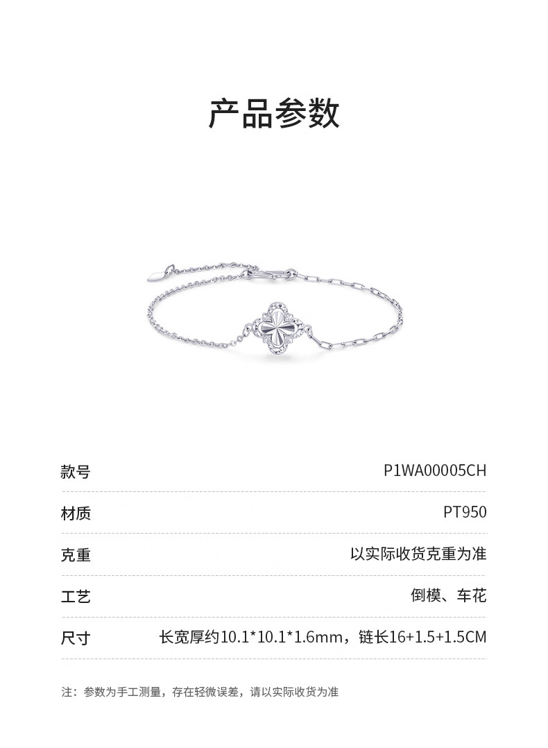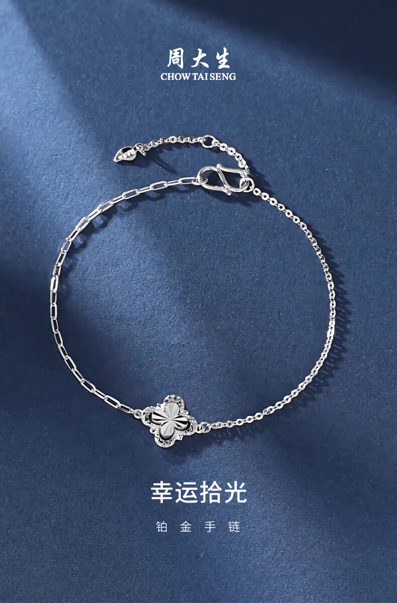 Chow Tai Sang platinum bracelet PT950 lucky four-leaf clover adjustable car flower bracelet birthday gift for girlfriend Platinum four-leaf clover bracelet (chain length about 16cm) 2.80g