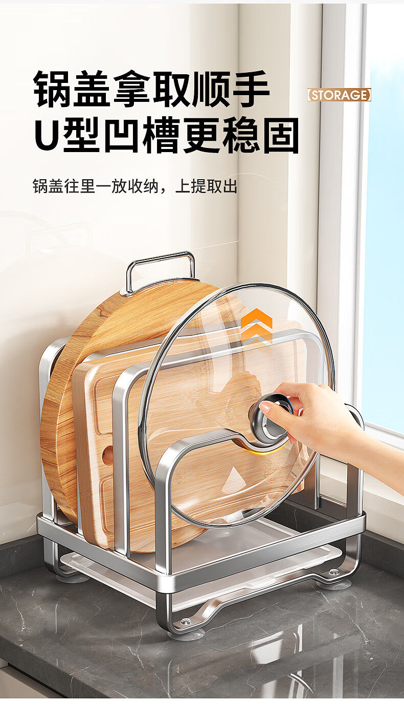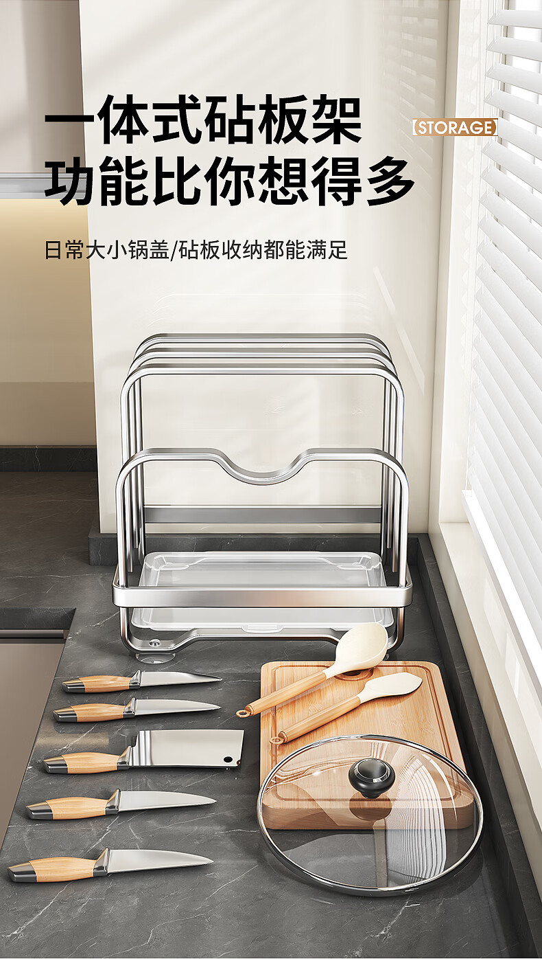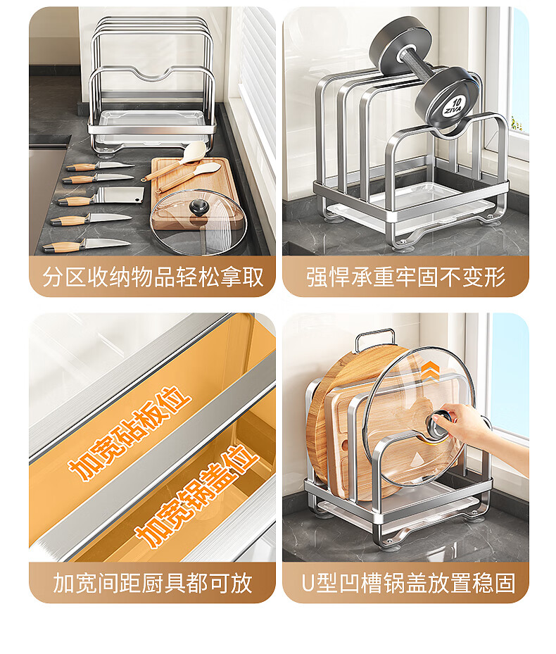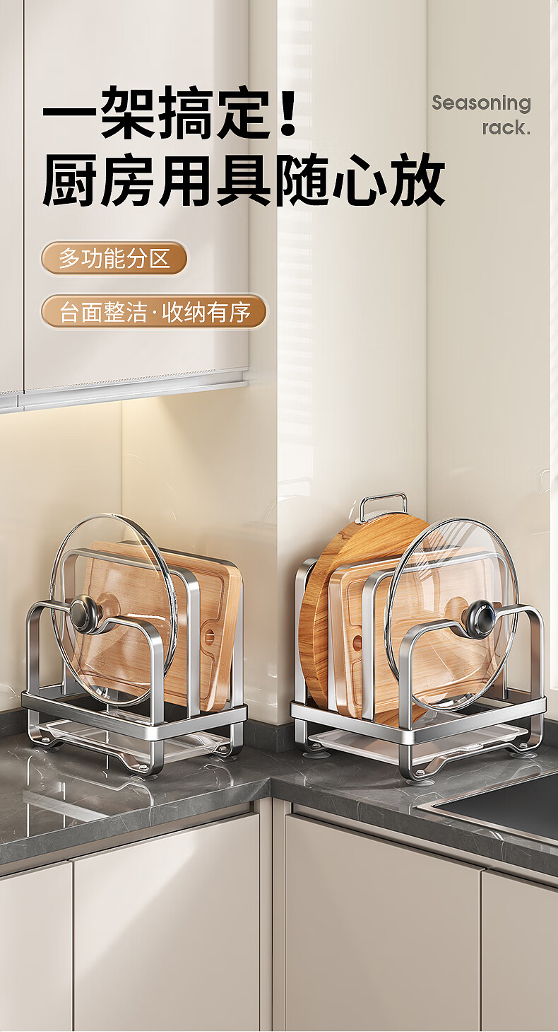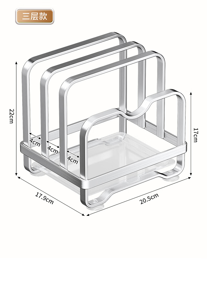 Sifang Food Kitchen Pot Lid Rack Countertop Kitchen Storage Rack Wall-mounted Dual-Purpose Vertical Spatula Rack Storage Chopping Board Placer Stainless Steel | Three-Layer Chopping Board Pot Lid Rack