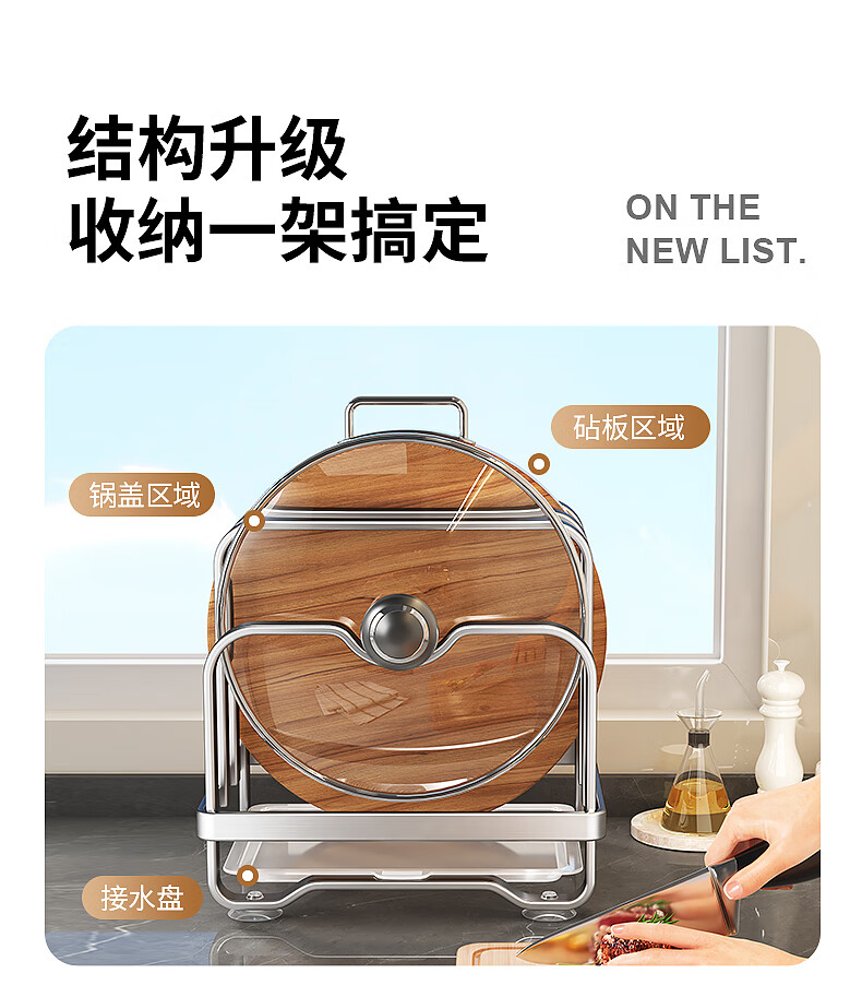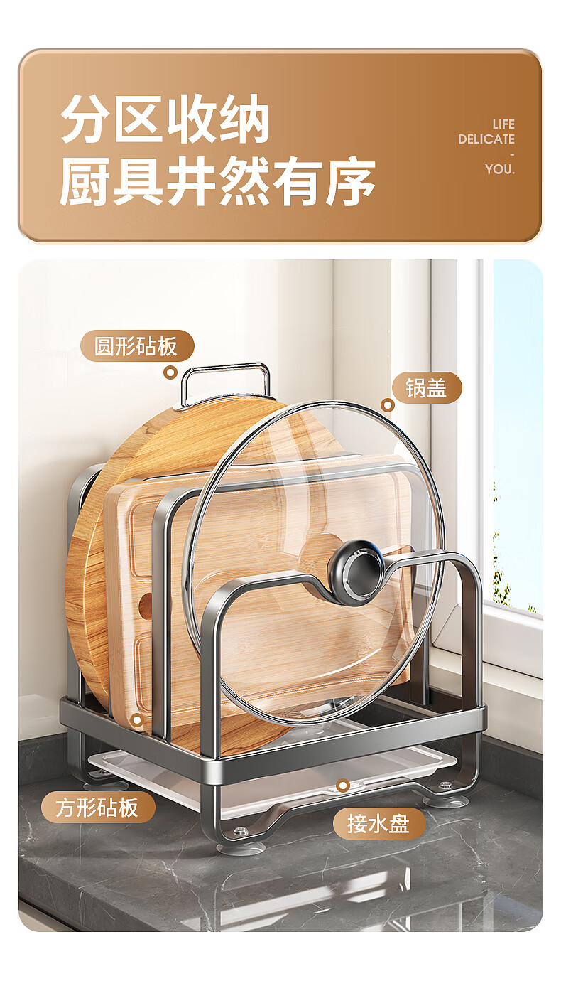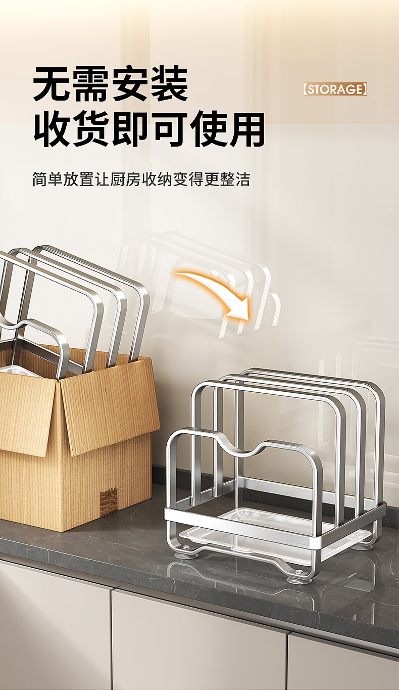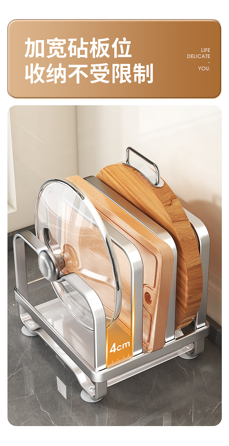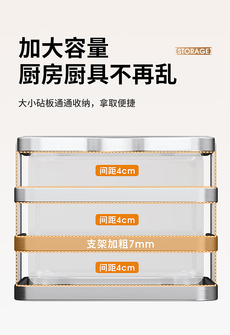 Sifang Food Kitchen Pot Lid Rack Countertop Kitchen Storage Rack Wall-mounted Dual-Purpose Vertical Spatula Rack Storage Chopping Board Placer Stainless Steel | Three-Layer Chopping Board Pot Lid Rack