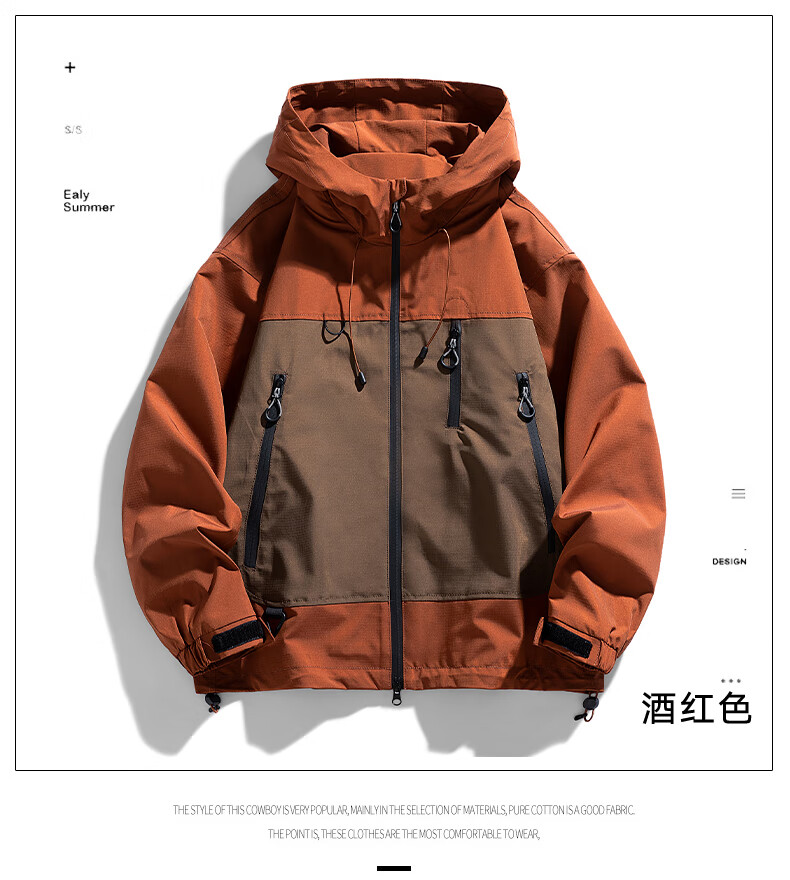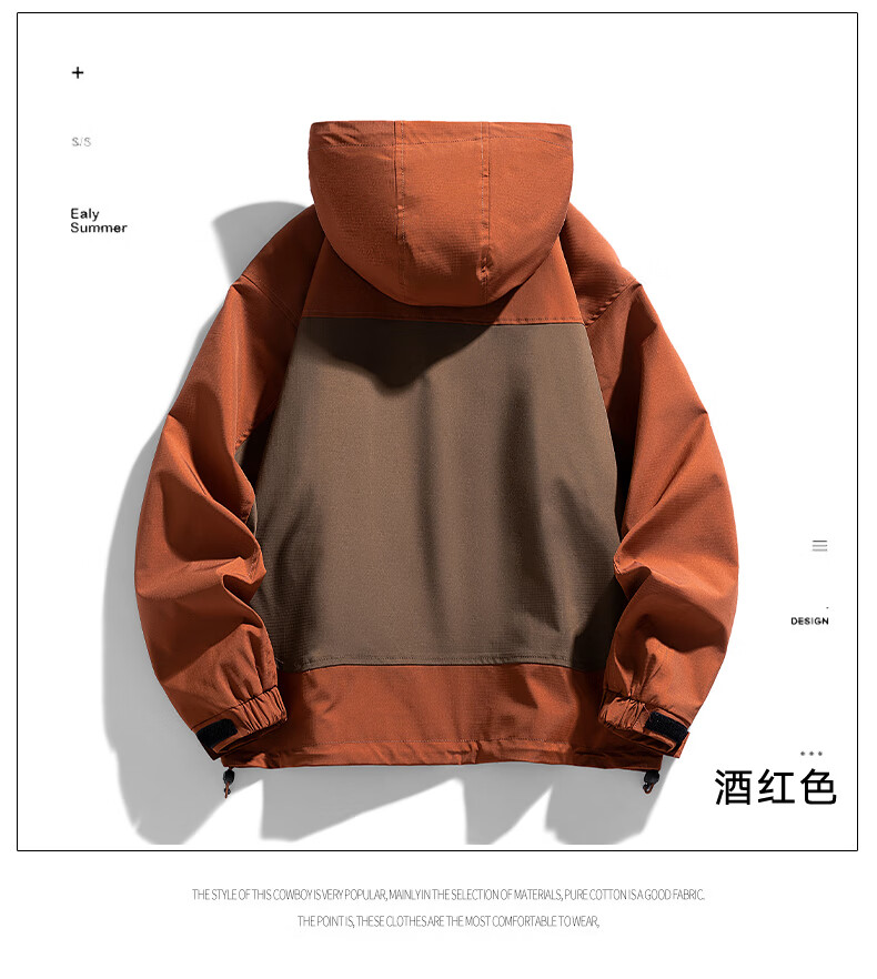 Baleno S&K Casual Jacket Men's 2025 New Autumn and Winter Velvet Hooded Jacket Men's Mountaineering Wear Outdoor Mountaineering Top Burgundy Regular L