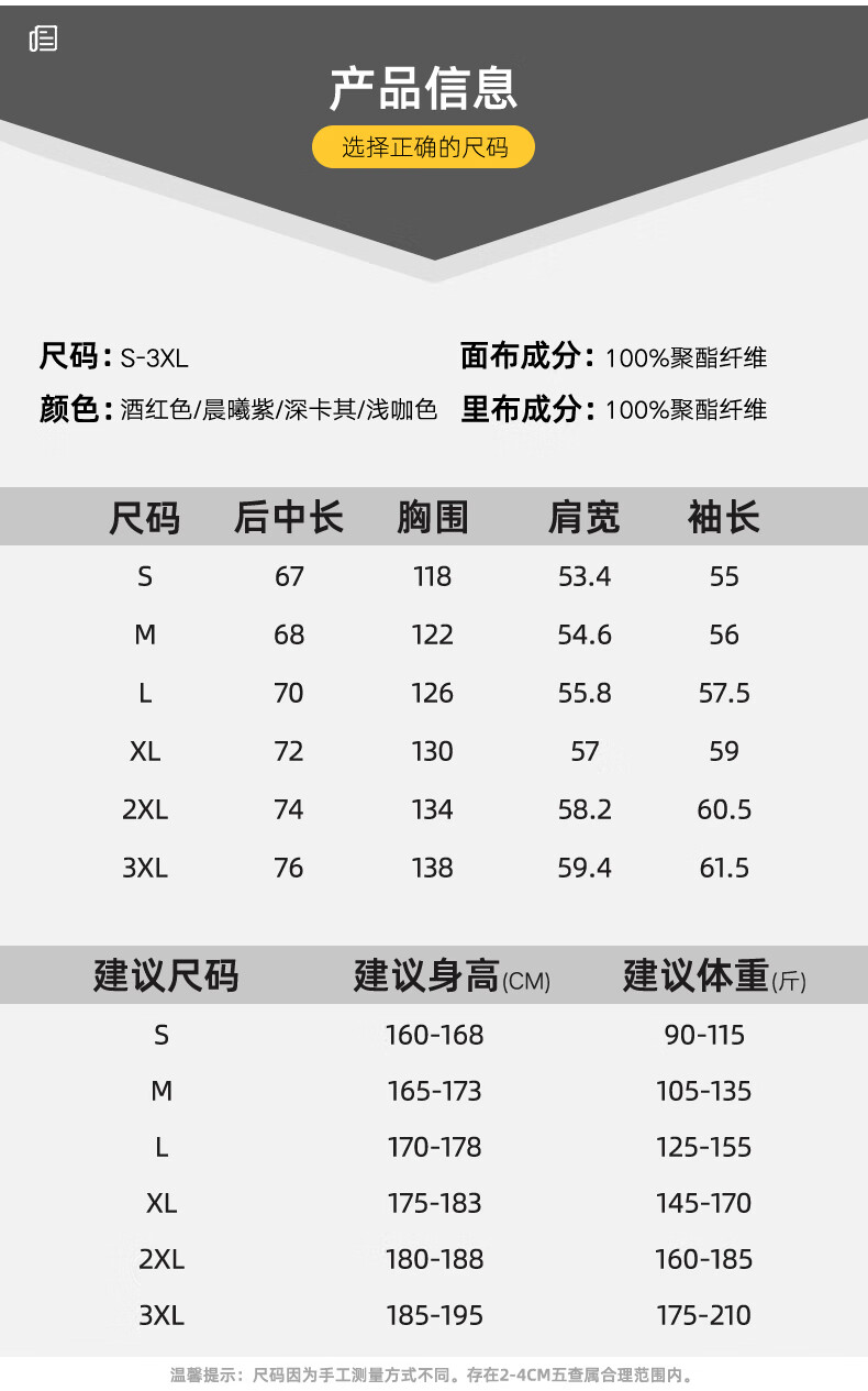 China (cm) 165 / 88-90 170 / 96-98 175 / 108-110 180 / 118-122 185 / 126-130