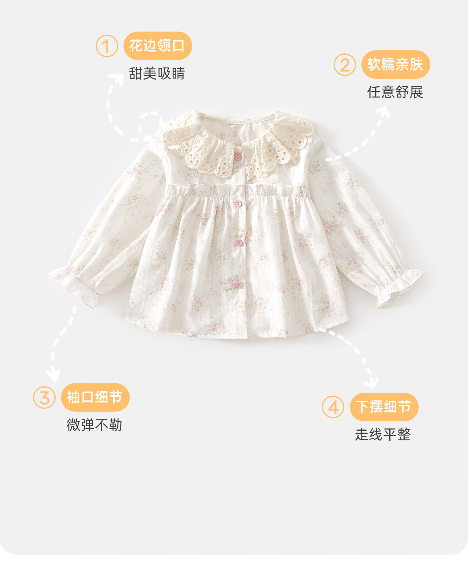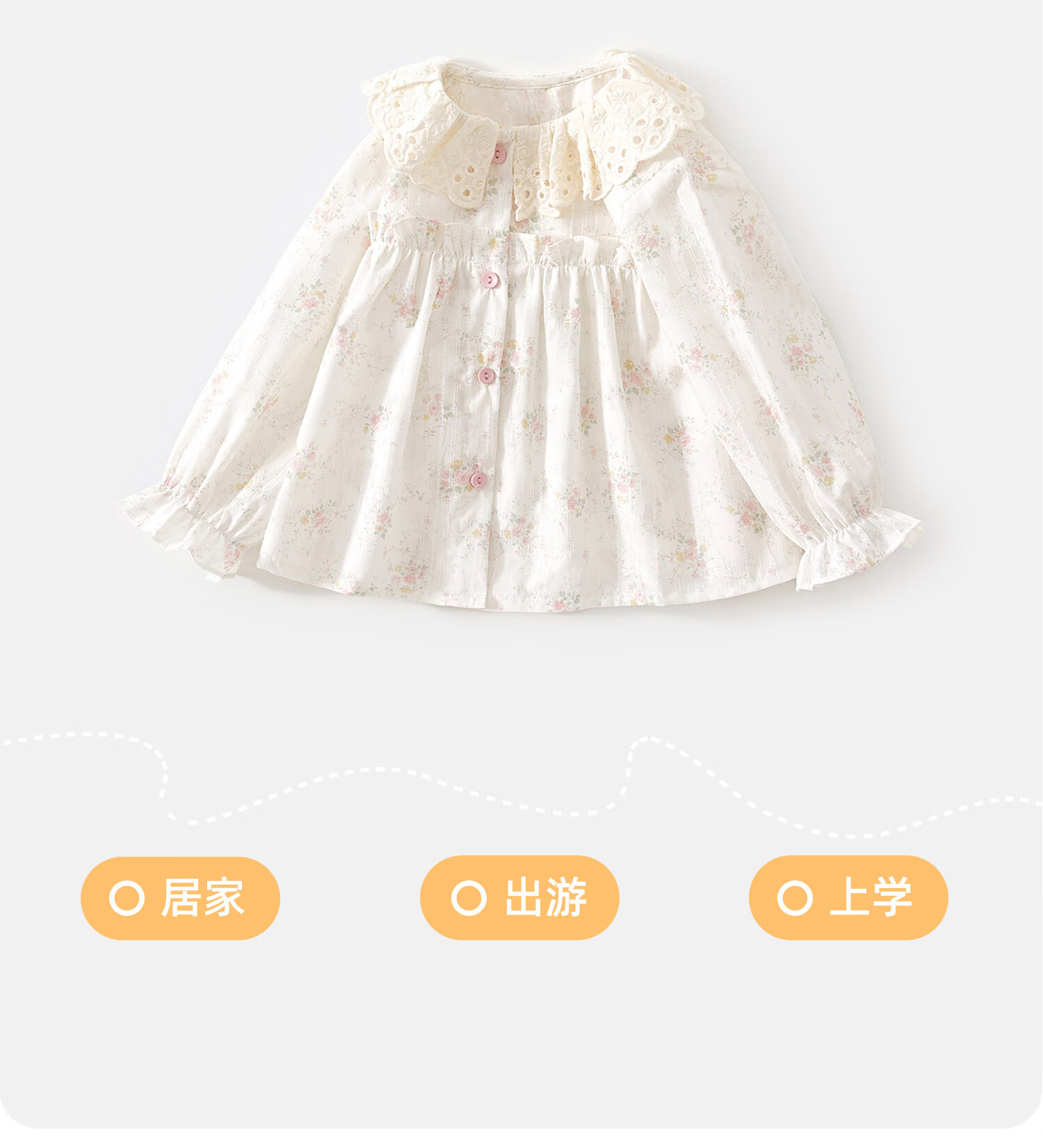Banxidi Girls' Shirts Spring 2026 New Style Baby Cotton Tops Children's Doll Shirts Spring and Autumn Children's Shirts Beige 110
