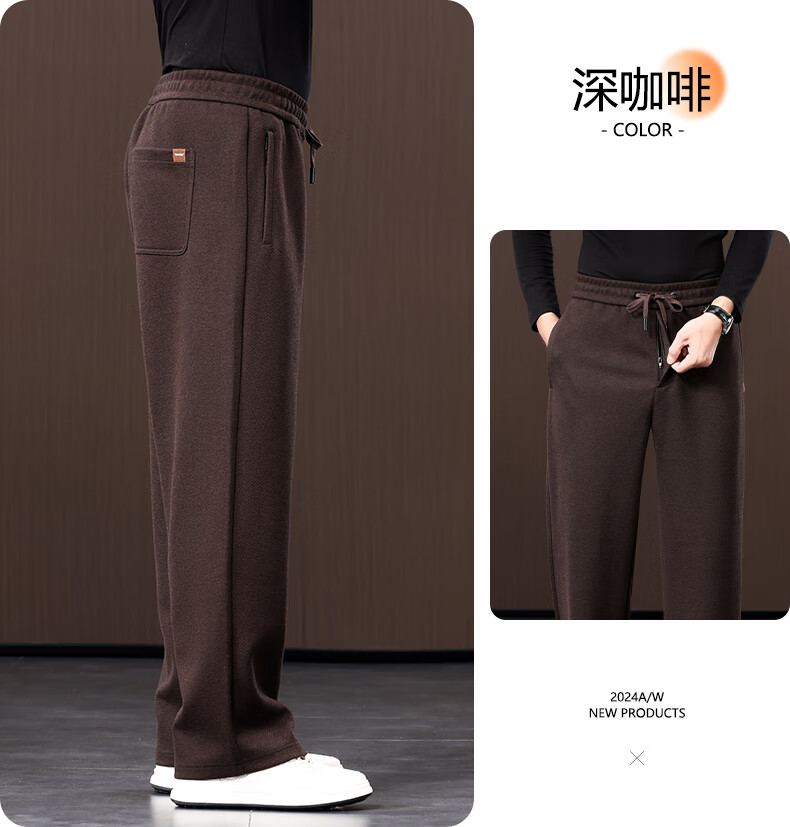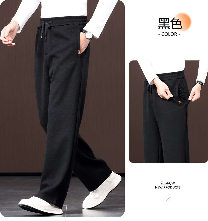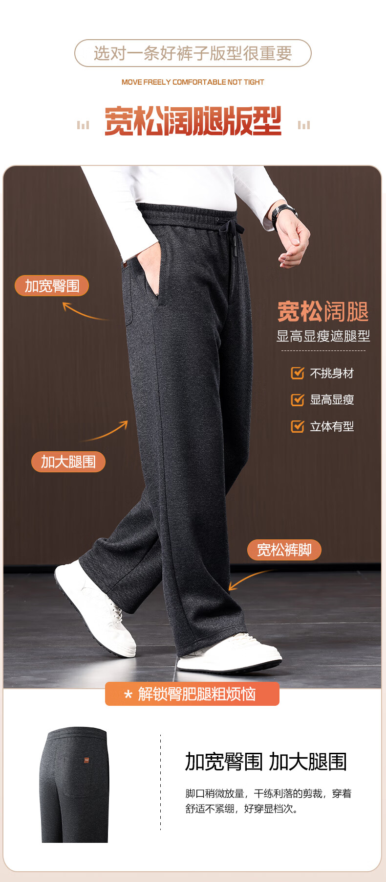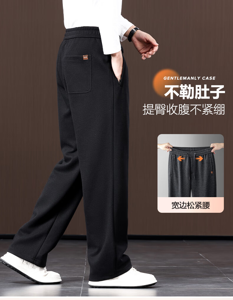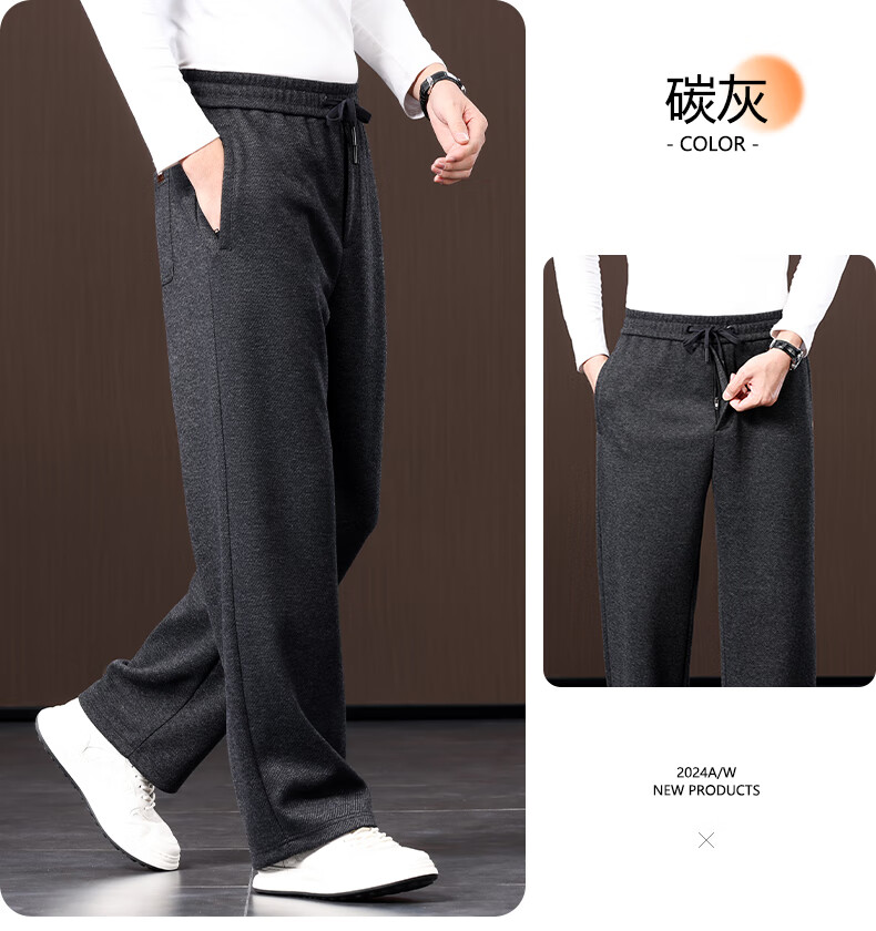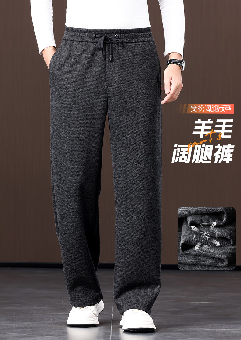 Pierre Cardin high-end wool casual pants men's loose wide-leg sweatpants middle-aged dad woolen pants straight spring and autumn style dark gray M
