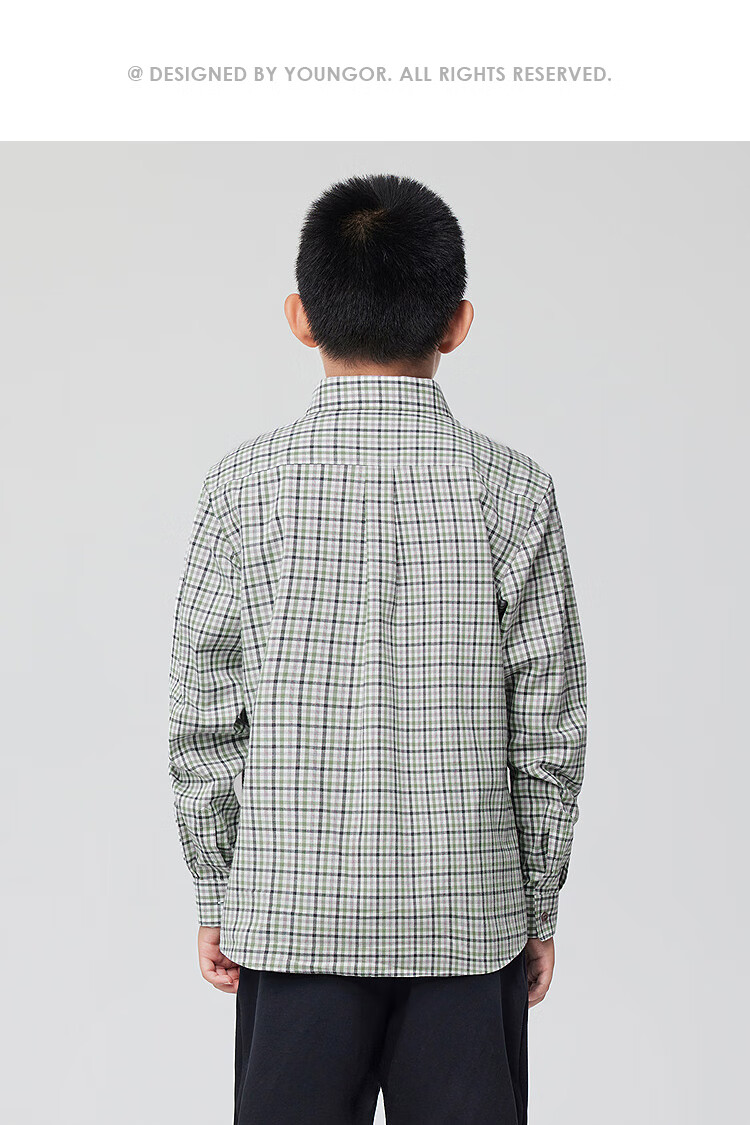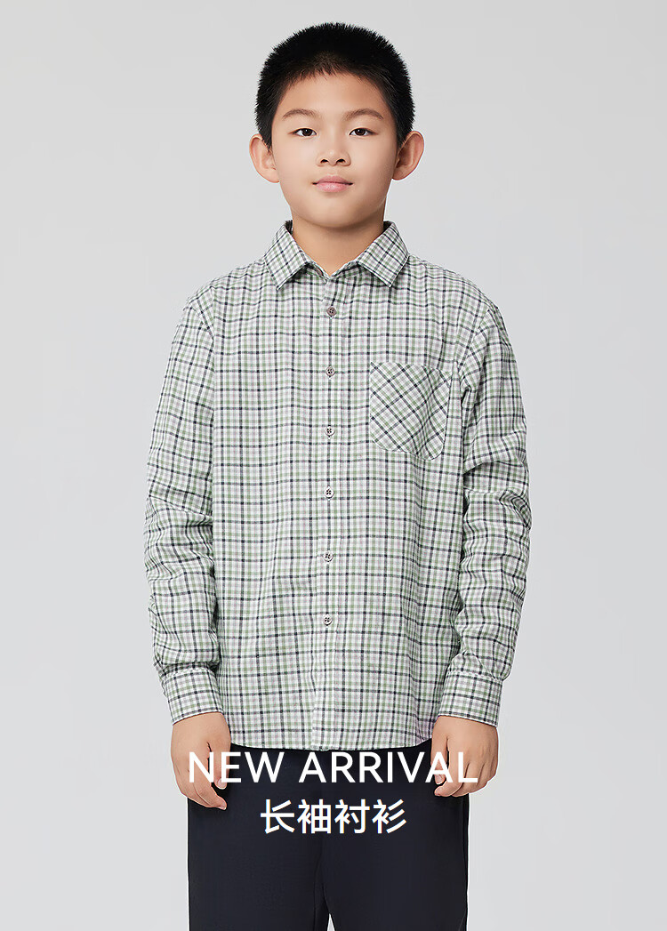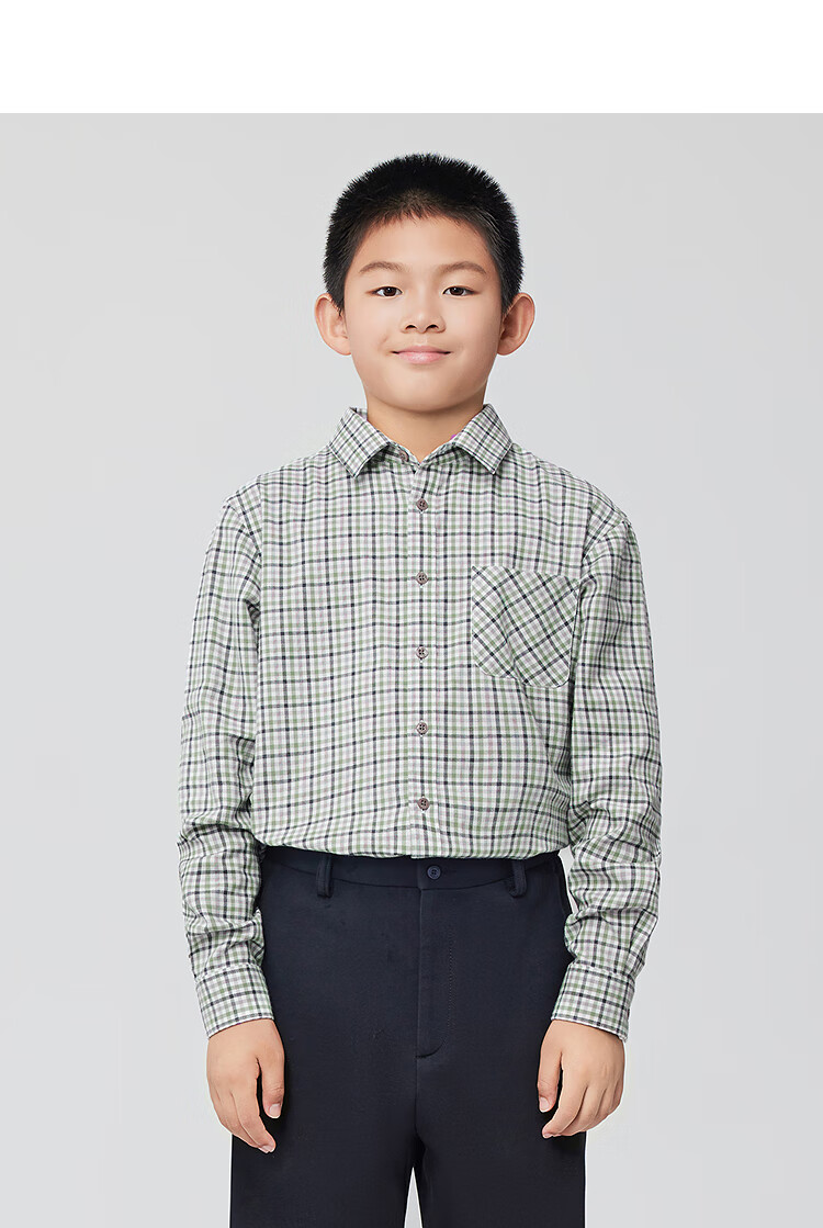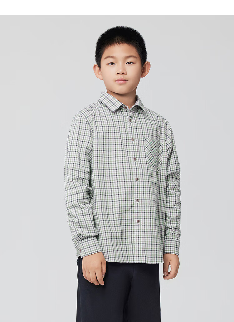 Youngor shirt junior autumn and winter cotton plaid long-sleeved shirt soft and skin-friendly green KLRM115675QFA 140 140/72