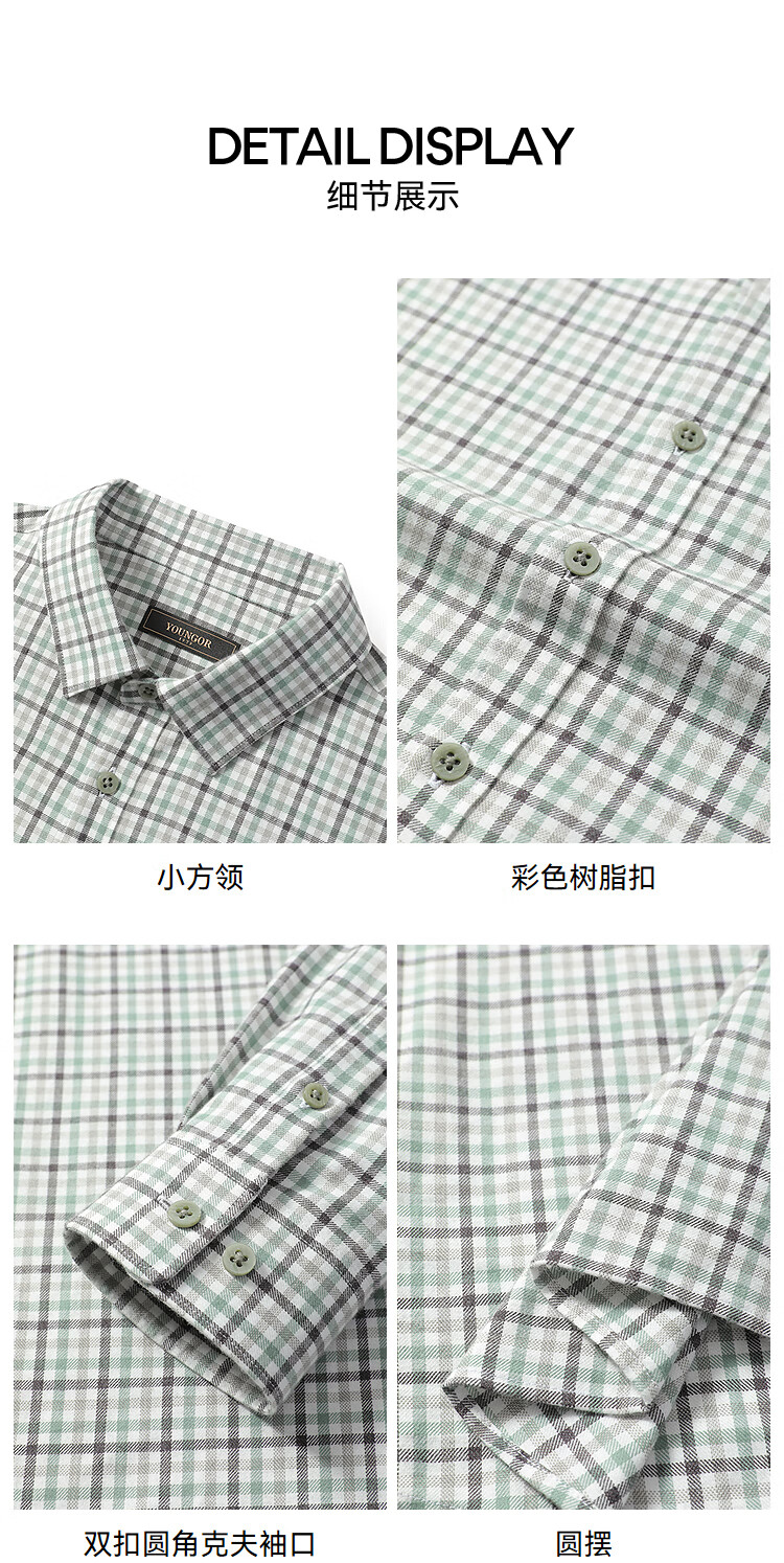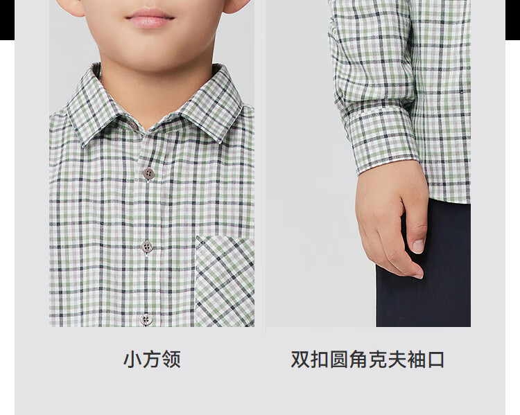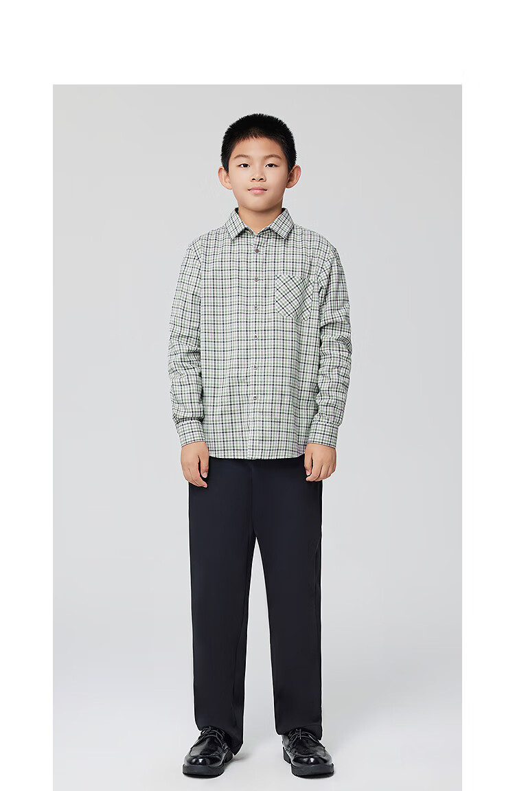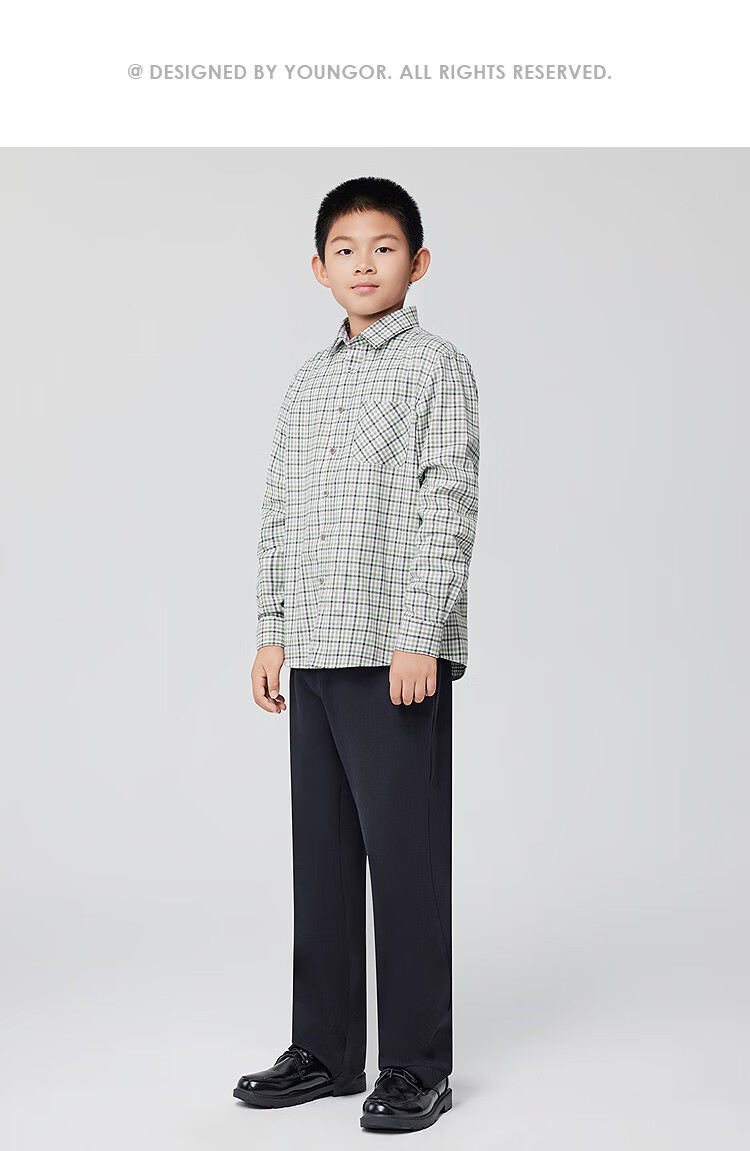 Youngor shirt junior autumn and winter cotton plaid long-sleeved shirt soft and skin-friendly green KLRM115675QFA 140 140/72