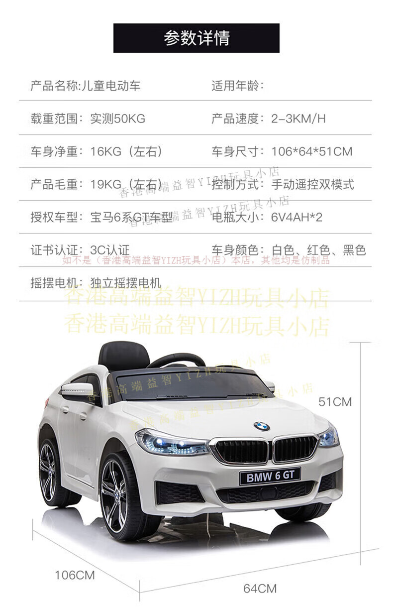 HTI BMW children's electric car four-wheel car baby remote control car toy car can sit on child baby battery white