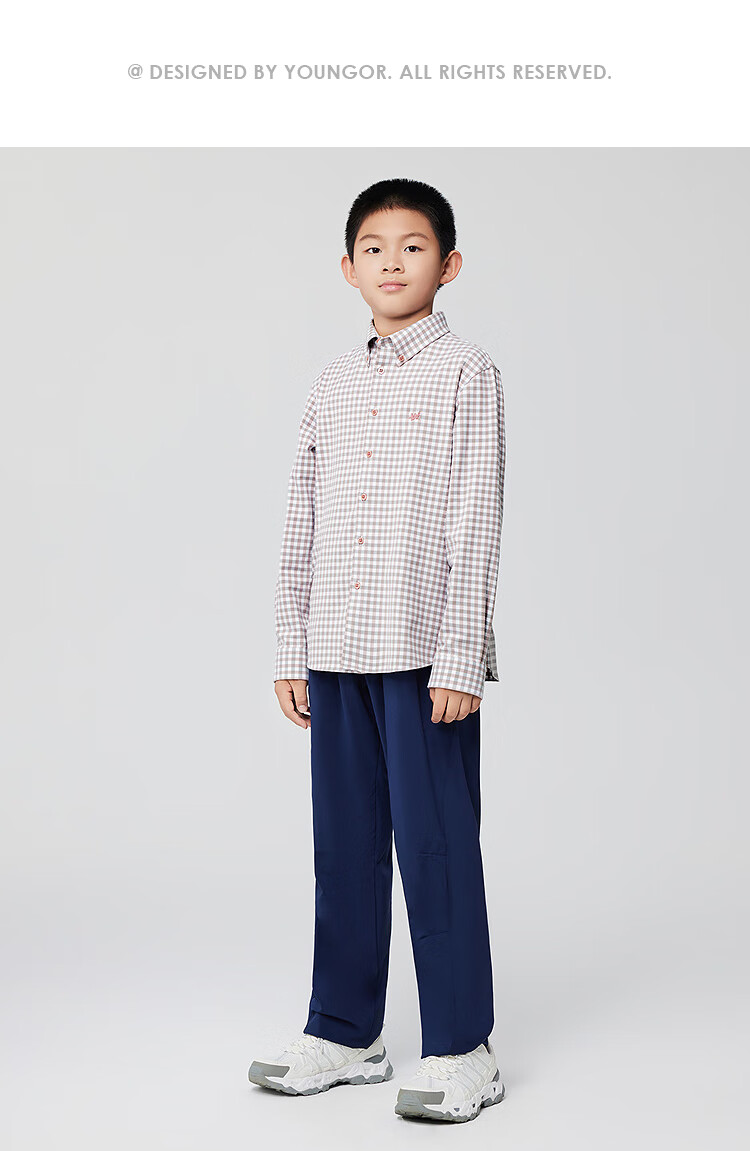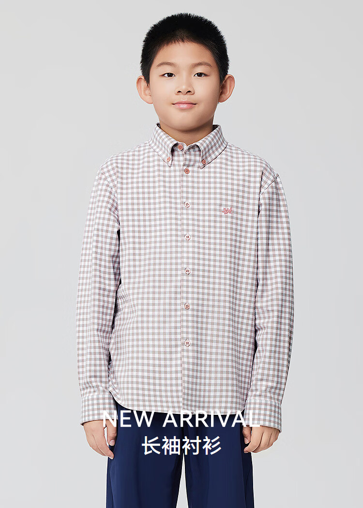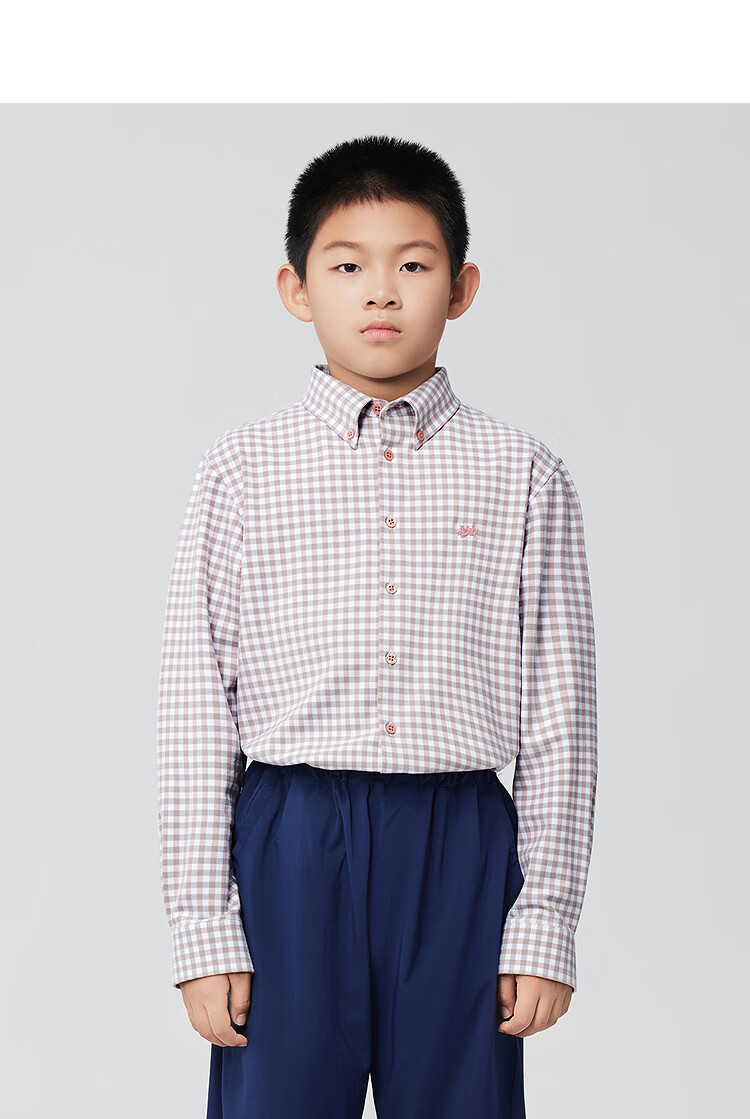 YOUNGOR long-sleeved shirt boys cotton blended chest embroidered little dragon horse suede shirt soft and comfortable 2025 shopping mall same style pink KLRM115670OKA 150 150/76