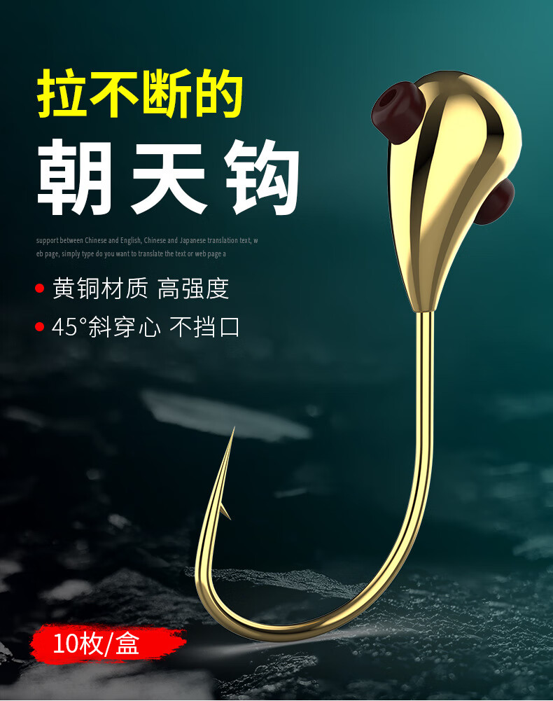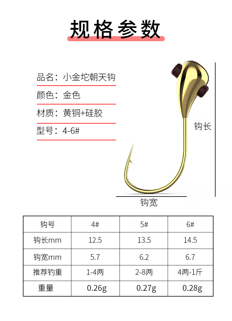 Small golden Tuo sky-facing hook in bulk, diagonal through-core copper head, gold sea evening lead head hook, wild fishing, traditional crucian carp fishing hook No. 5, small golden Tuo sky-facing hook with thorns, 30 pieces