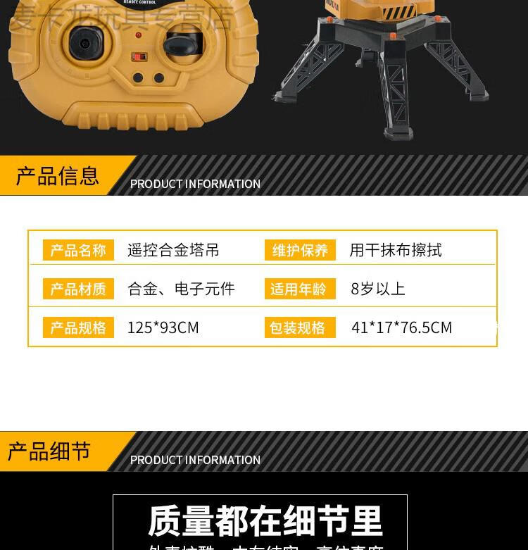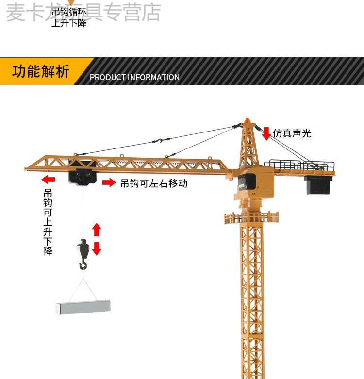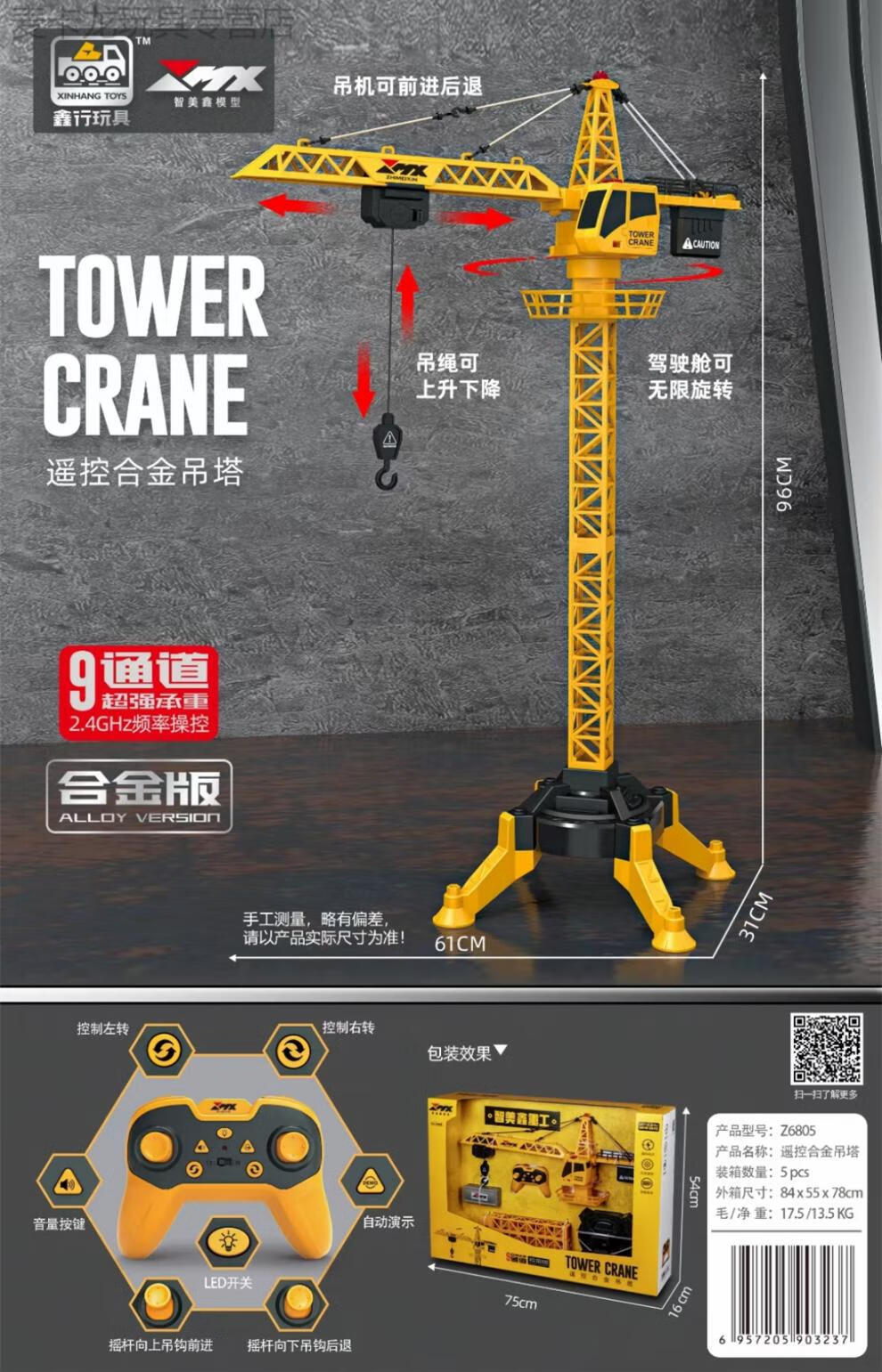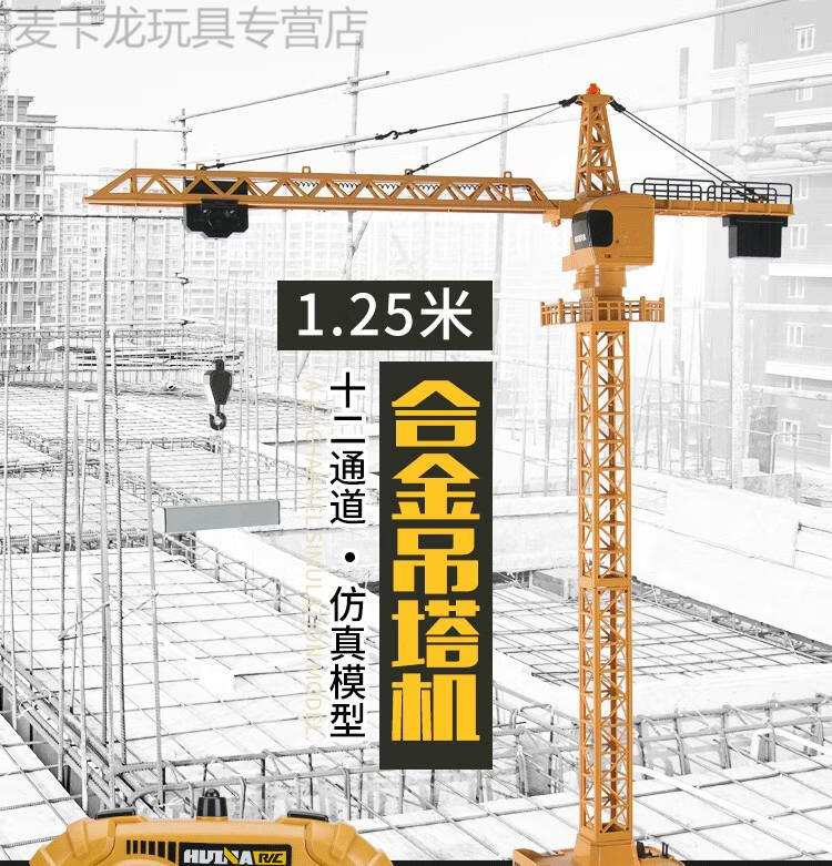 Large crane model 100kg extra large remote control alloy tower crane children wireless crane crane engineering vehicle 1.28 meters high 9 channel tower crane one battery life