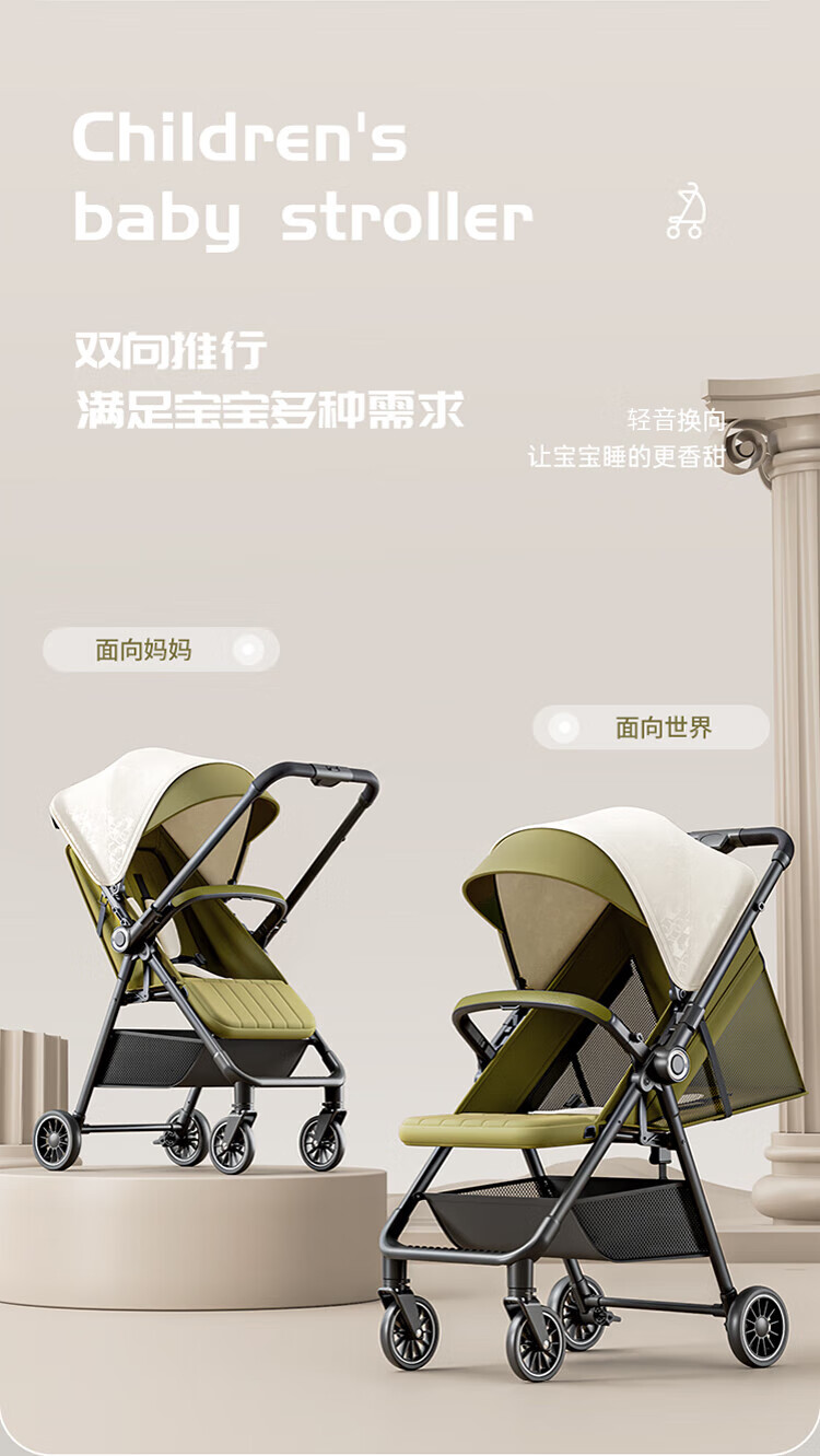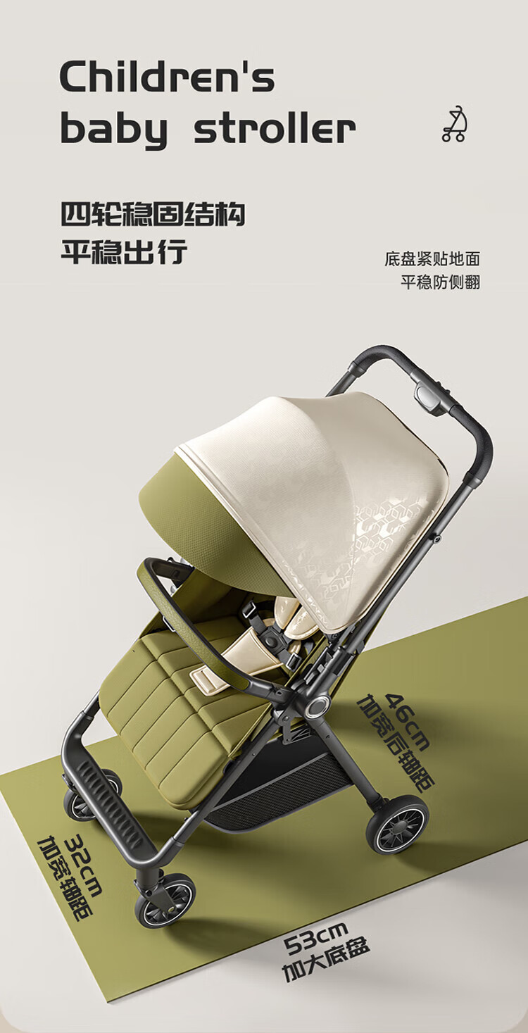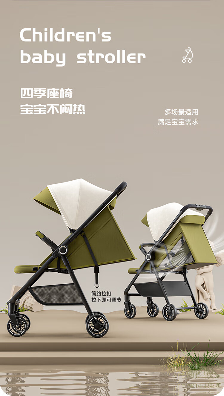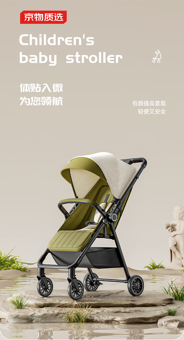 Jingwu baby stroller can sit and lie down for 0-6 years old, 3-pocket stroller, foldable, shock-absorbing baby stroller, lightweight, olive green, one-click closing + two-way push + mosquito net + gift bag. If you don’t know how to choose, just choose Jingwu Selection