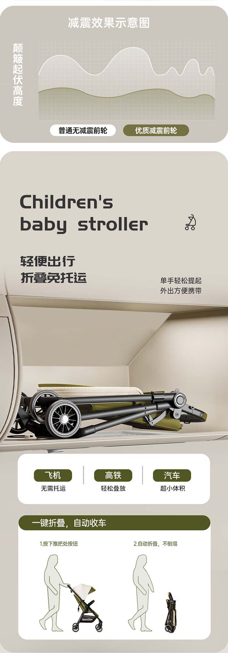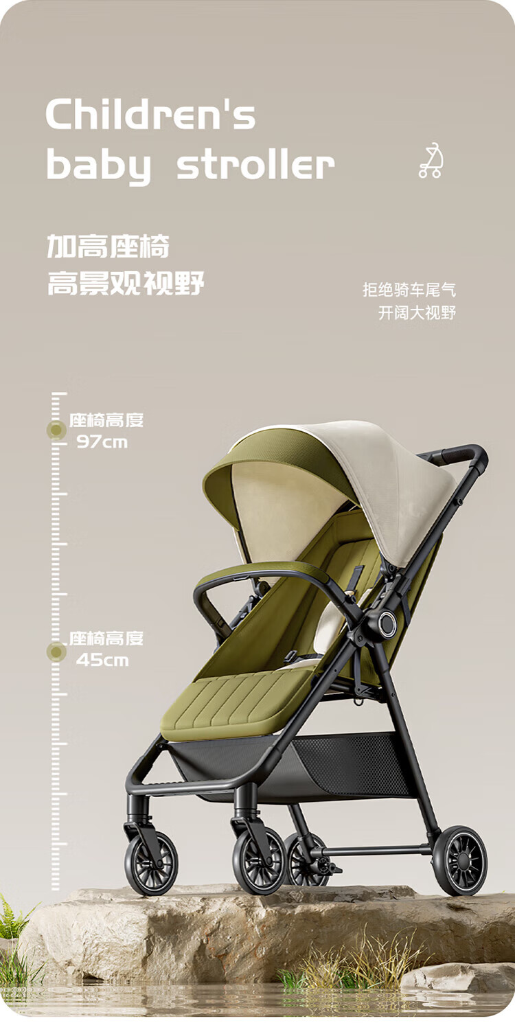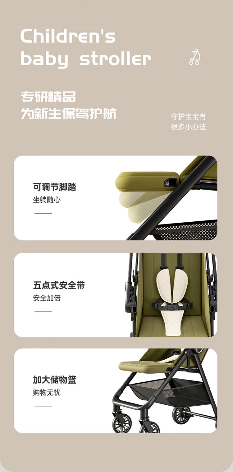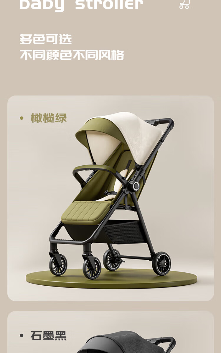 Jingwu baby stroller can sit and lie down for 0-6 years old, 3-pocket stroller, foldable, shock-absorbing baby stroller, lightweight, olive green, one-click closing + two-way push + mosquito net + gift bag. If you don’t know how to choose, just choose Jingwu Selection