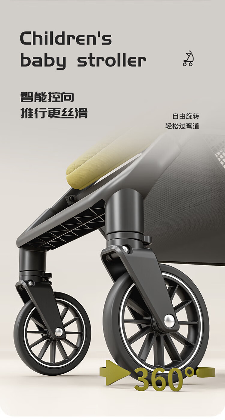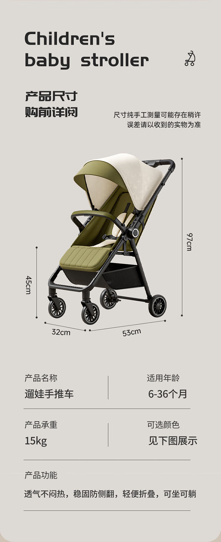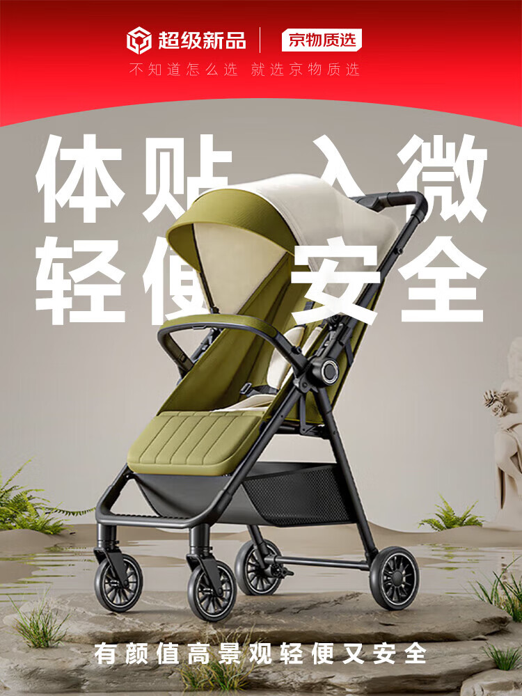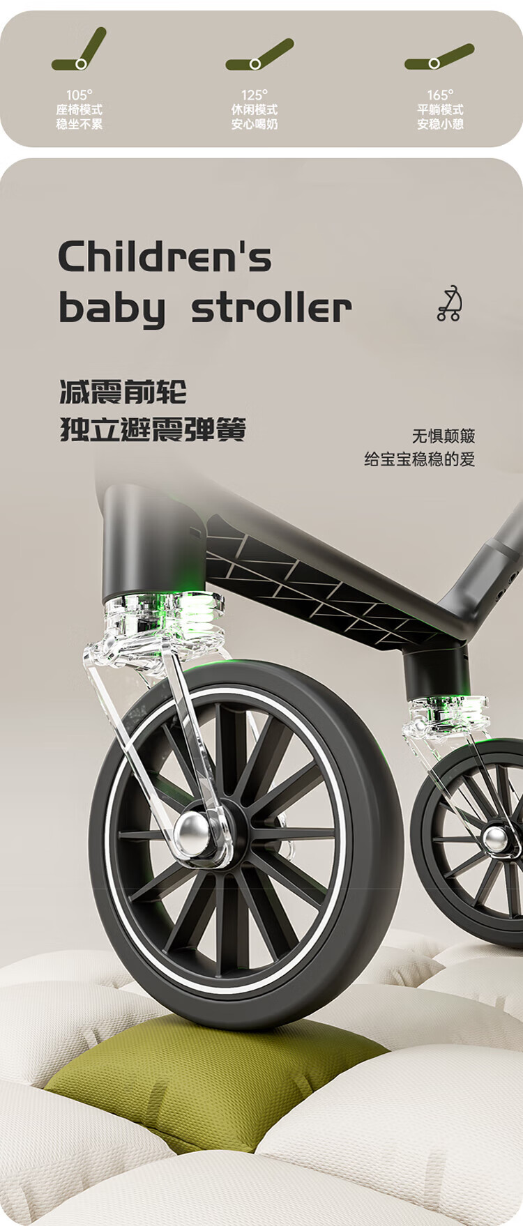 Jingwu baby stroller can sit and lie down for 0-6 years old, 3-pocket stroller, foldable, shock-absorbing baby stroller, lightweight, olive green, one-click closing + two-way push + mosquito net + gift bag. If you don’t know how to choose, just choose Jingwu Selection