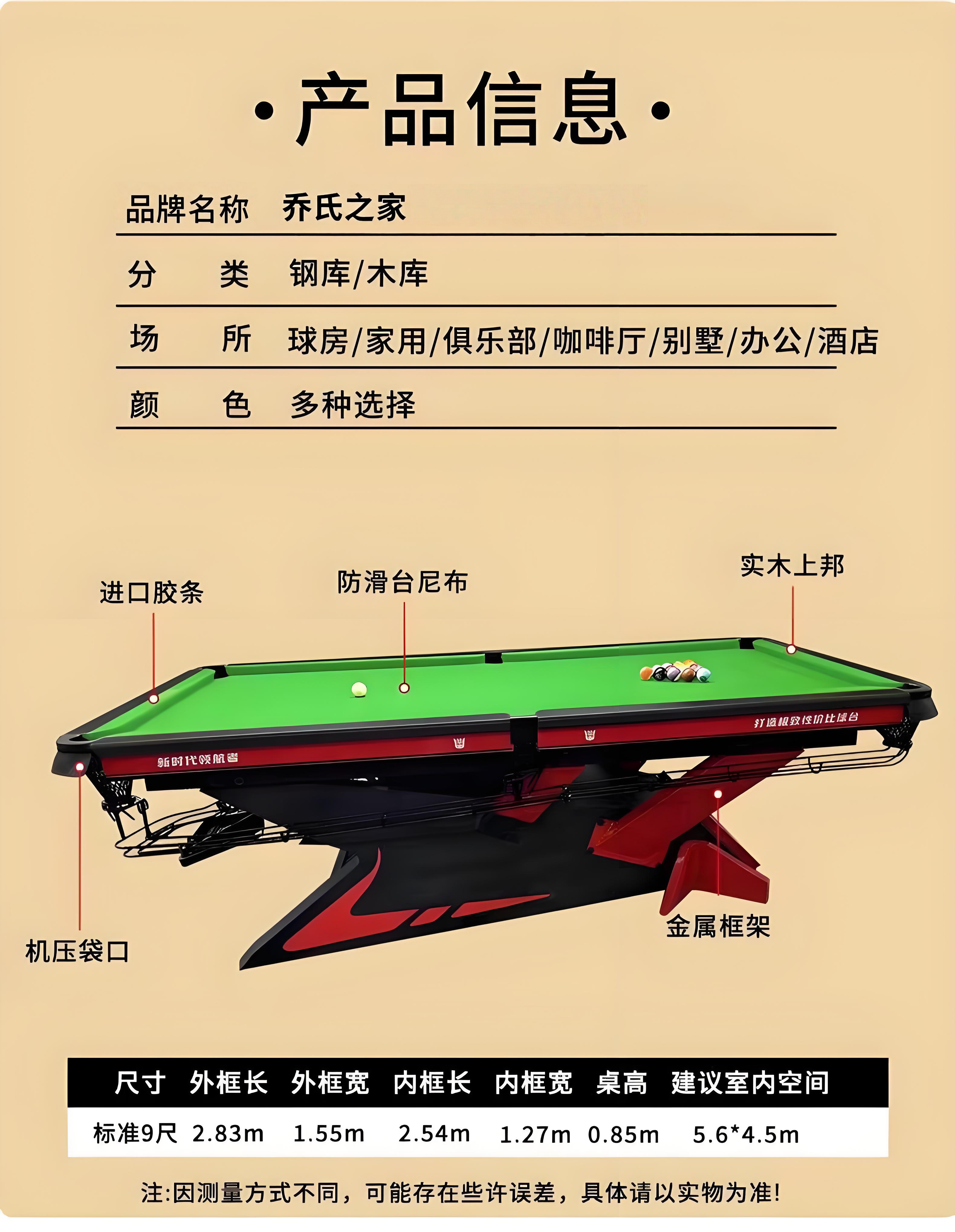 Joe's House Venomous Fang billiard table standard Chinese style black eight-ball table for adult commercial home ball room competition special pool table 9 feet Venomous Fang 1.2 steel warehouse professional model recommended for high requirements on the table