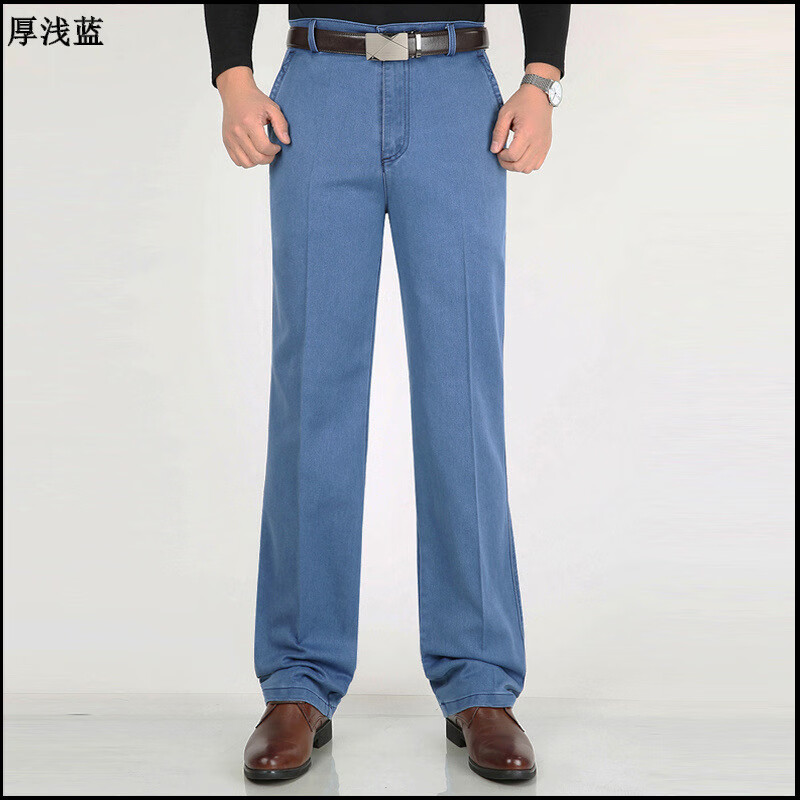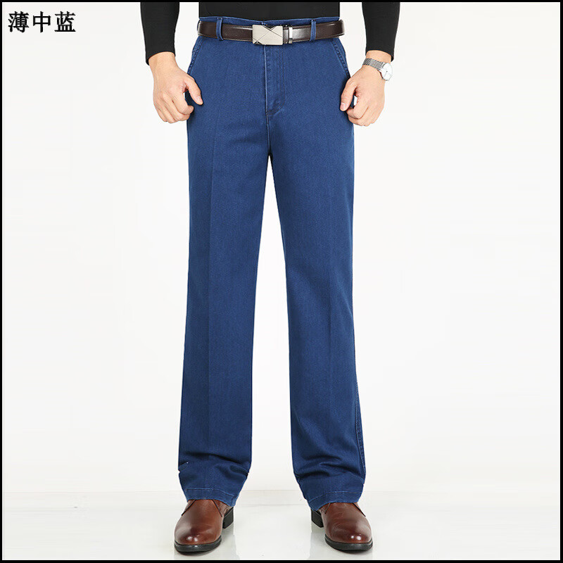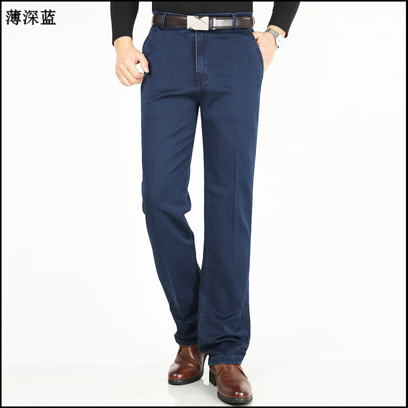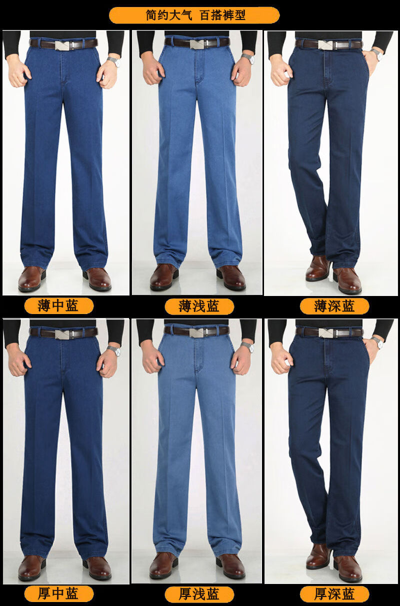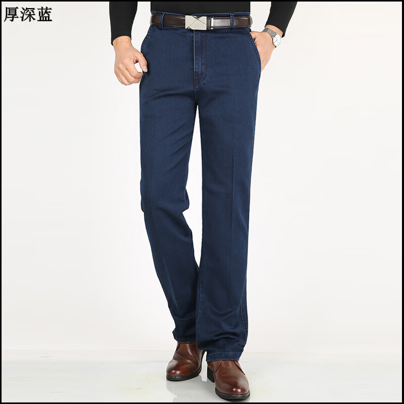 中老年弹力男士牛仔裤春秋季厚款中年人高腰宽松深档男士休闲长裤 深蓝-【秋冬厚款】 36 码【2尺9腰围】